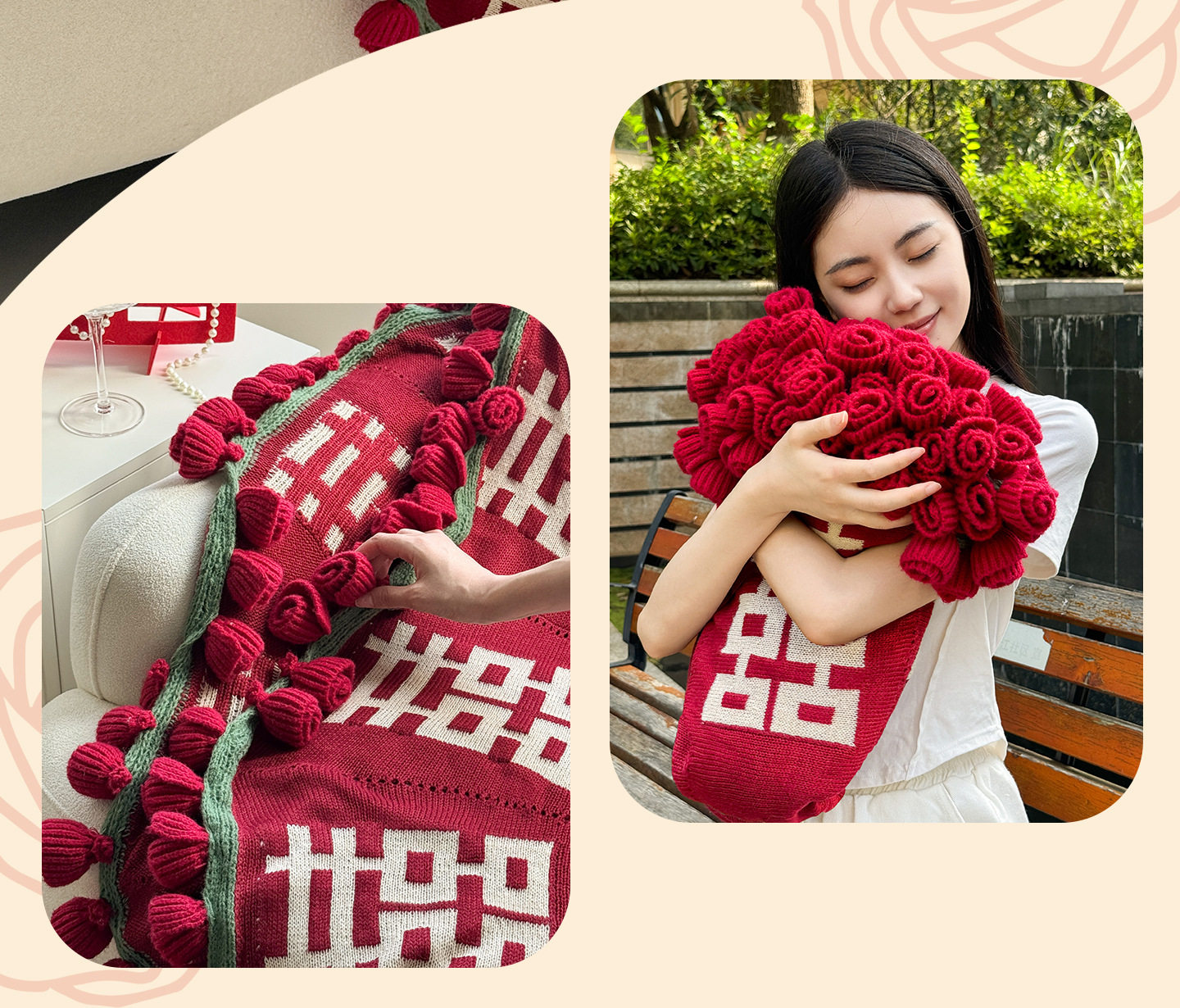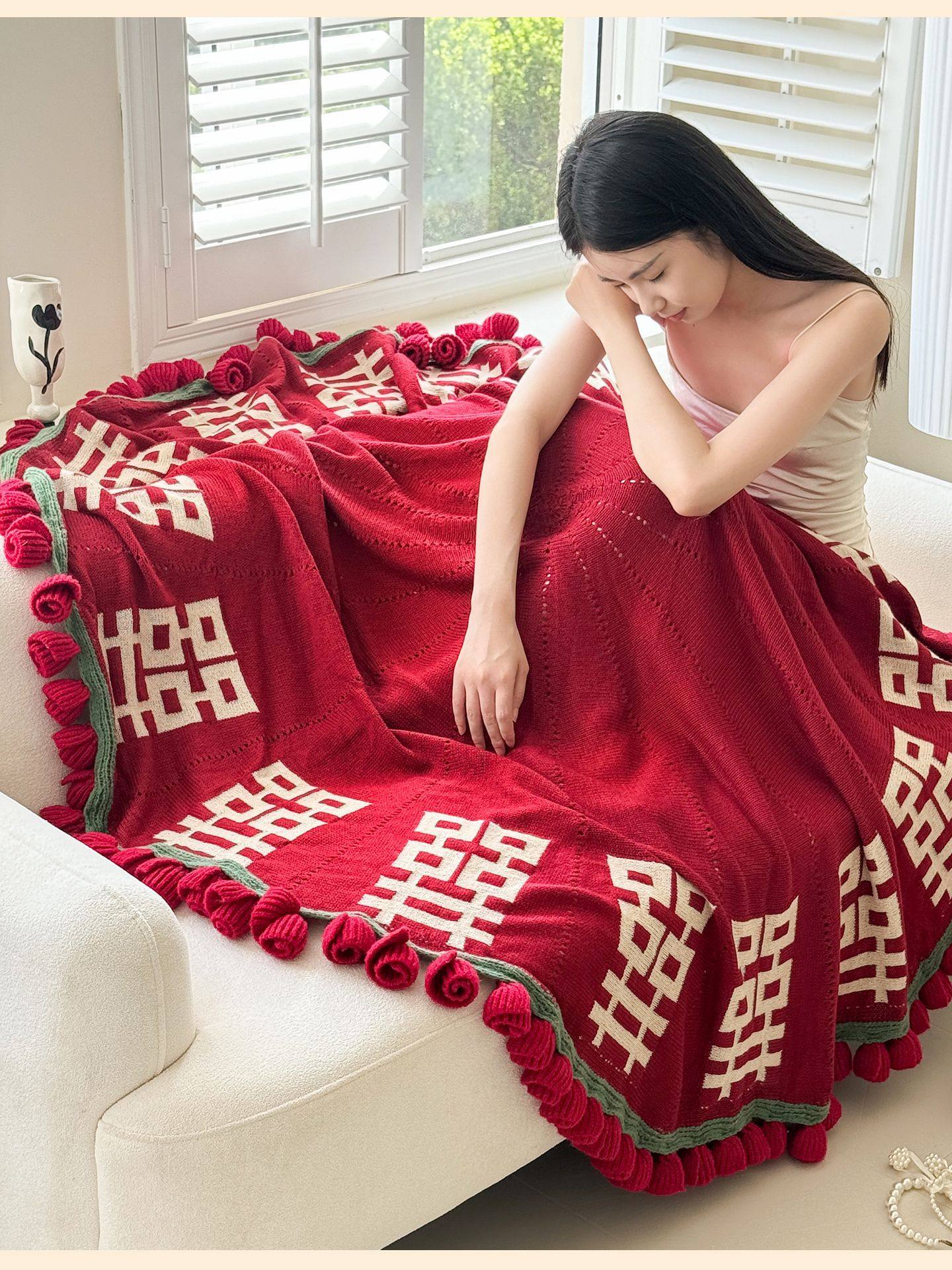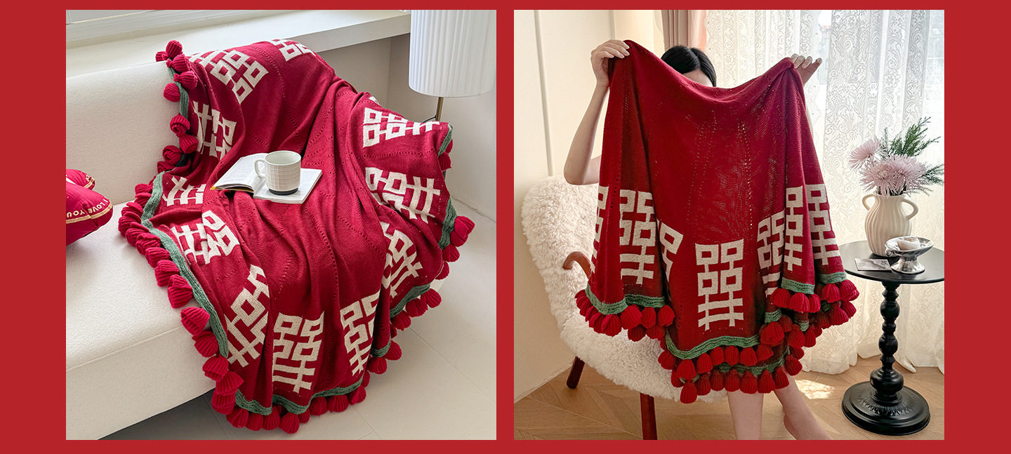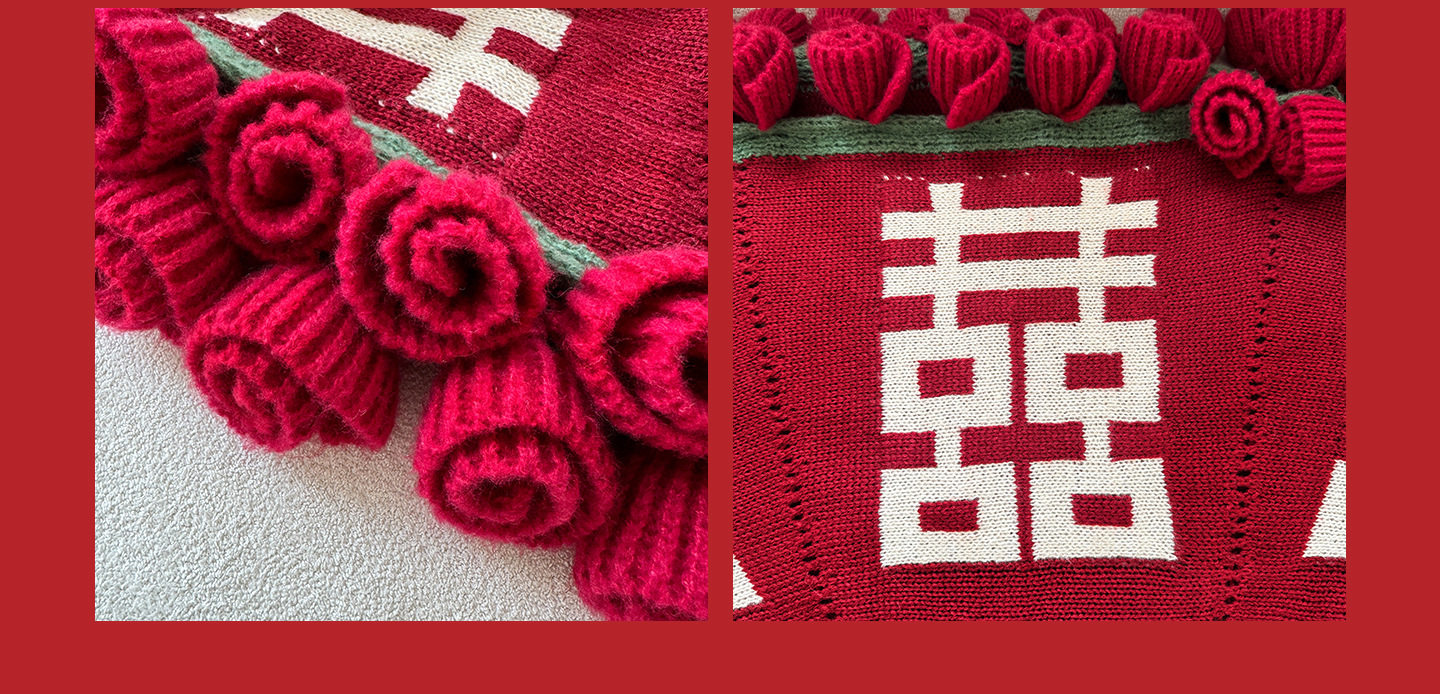| Color | Flower blanket with red double happiness characters |