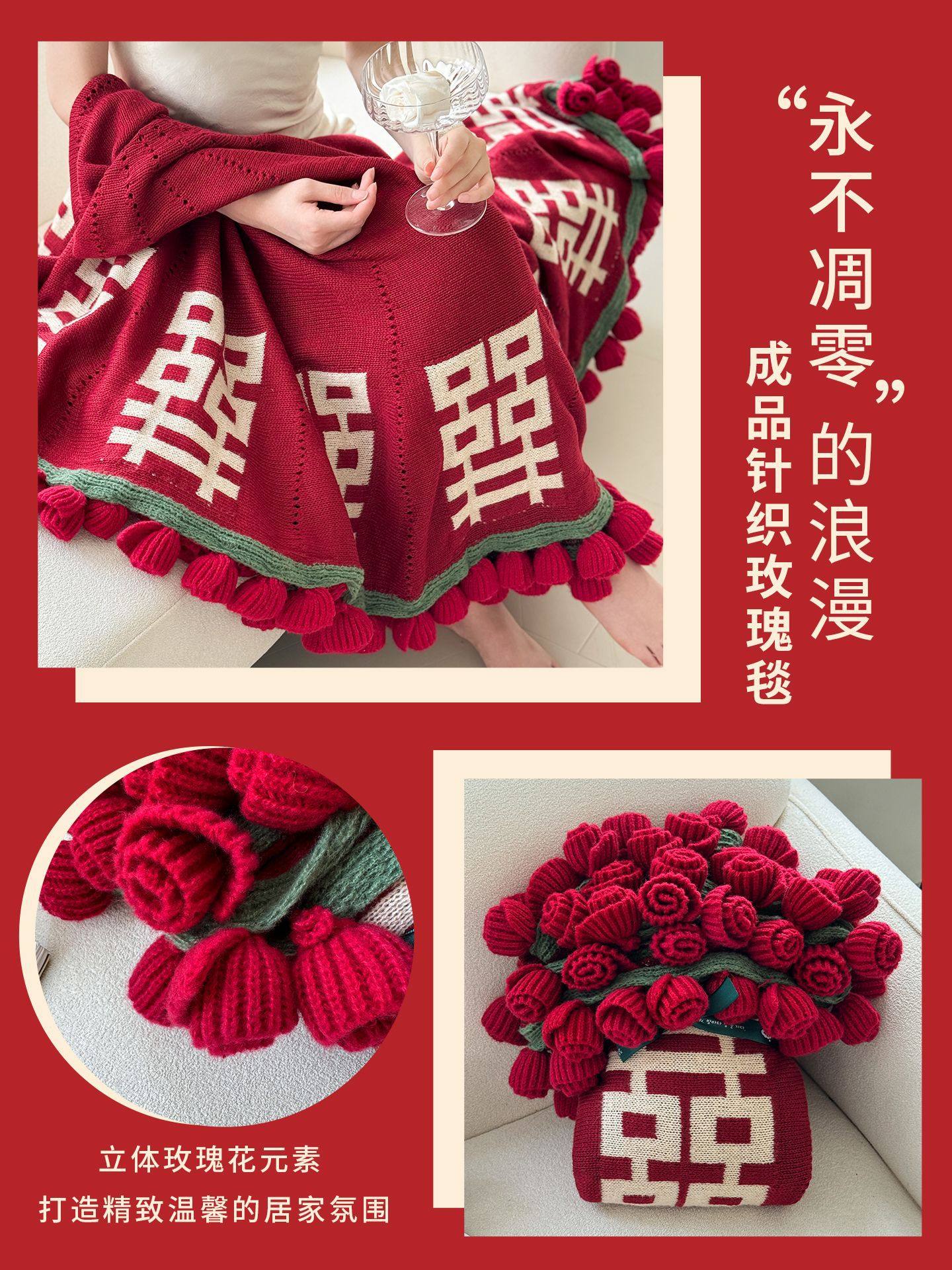 New Style Rose Bouquet Knitted Blanket Wedding Engagement Gift Blanket Shawl Blanket Casual Design Blanket