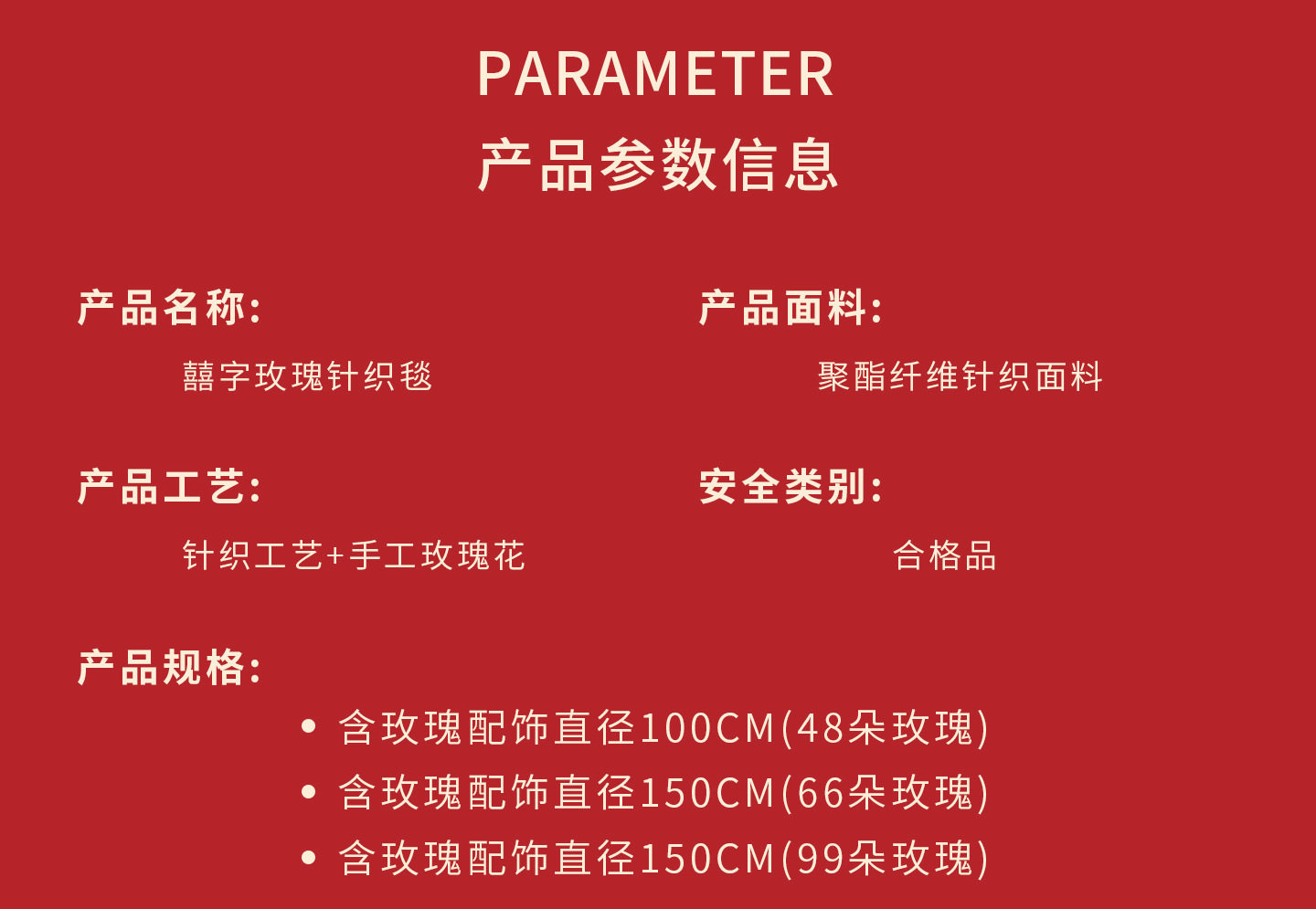 | Size specifications | 100x100cm 48 roses,150x150cm 66 roses,150x150cm 99 roses |
