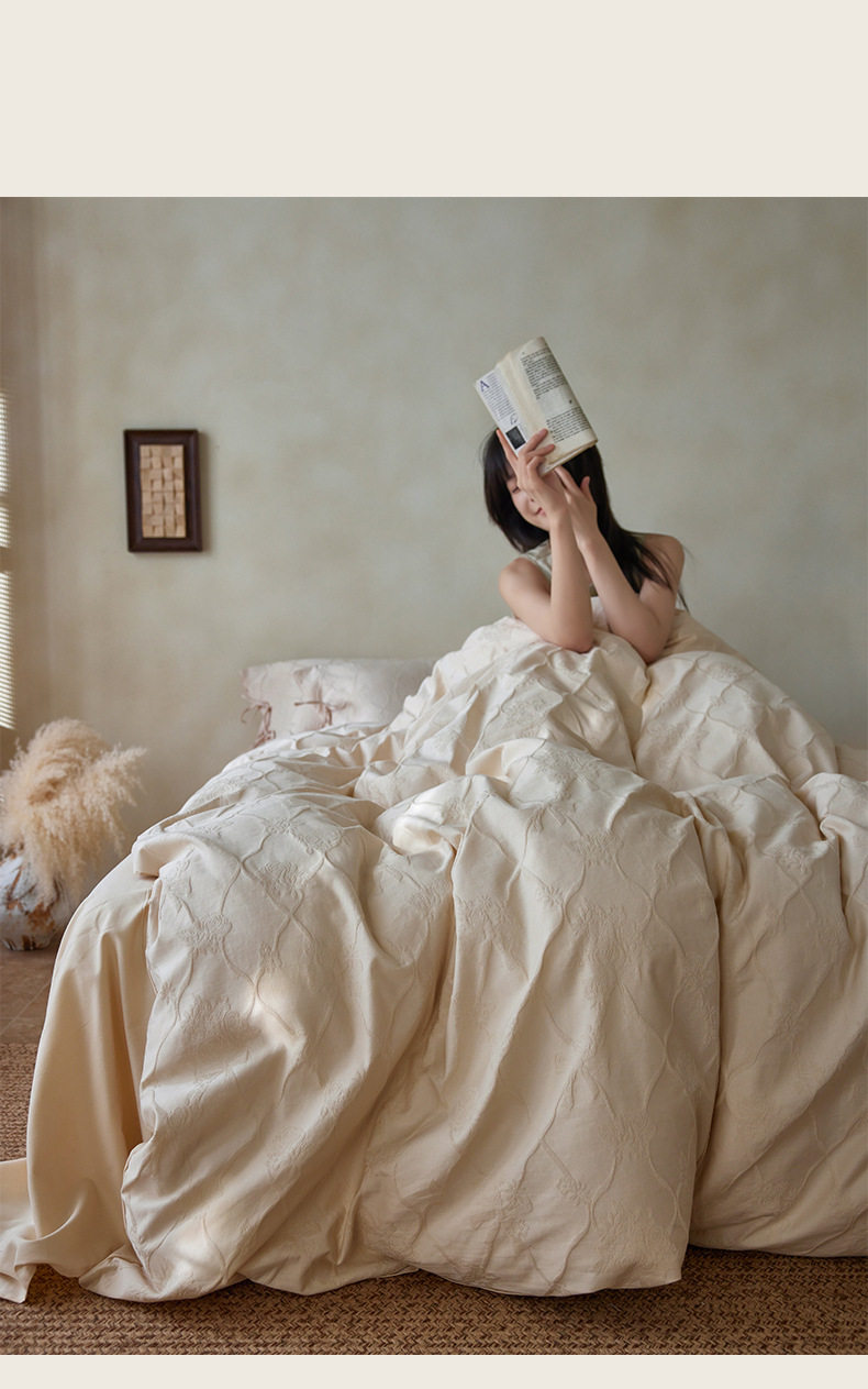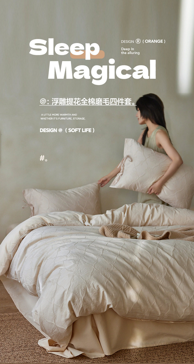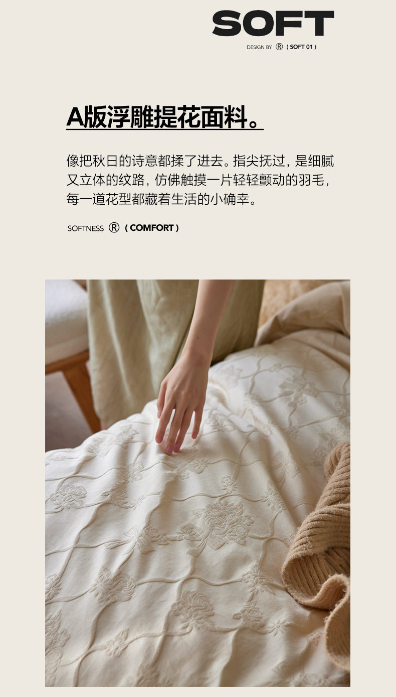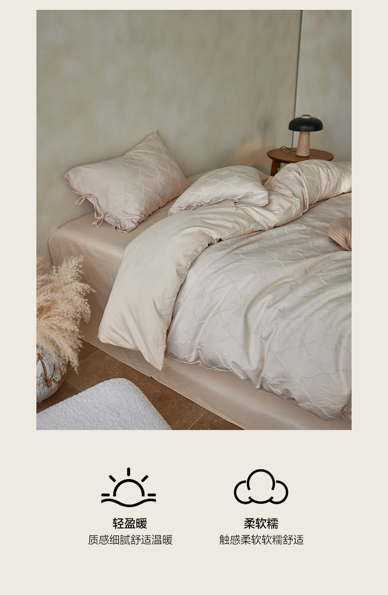 Autumn and Winter Warm and Skin-Friendly Mother and Baby Embossed Jacquard 100S Long-Staple Cotton Brushed Four-Piece Set, Pure Cotton High-End Bedding