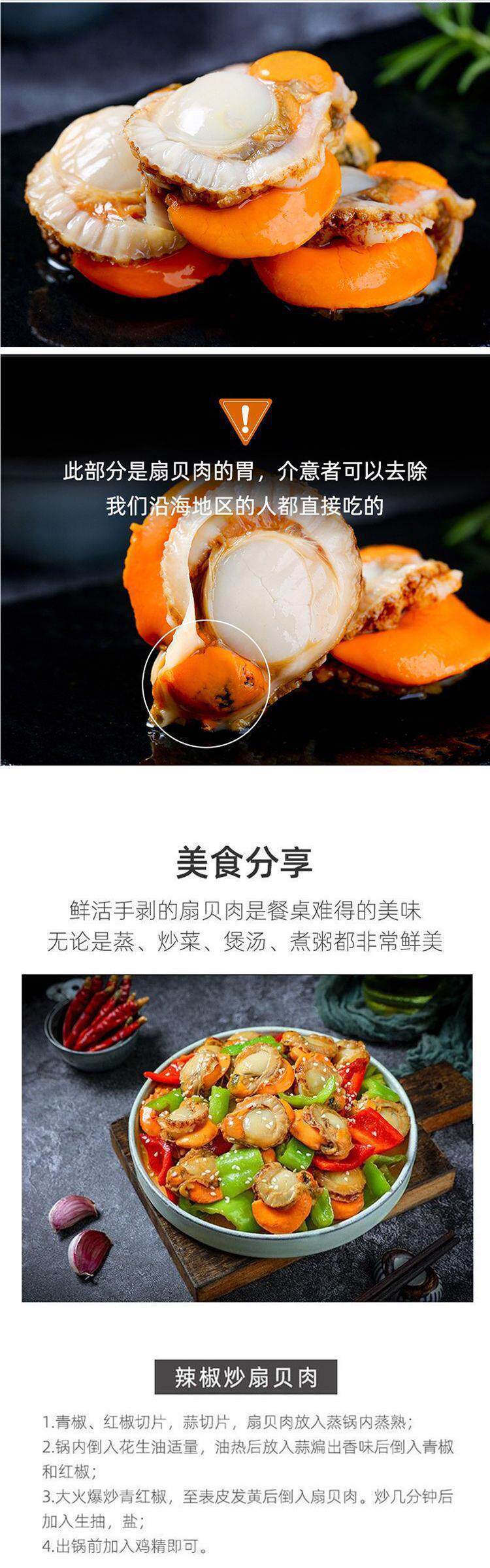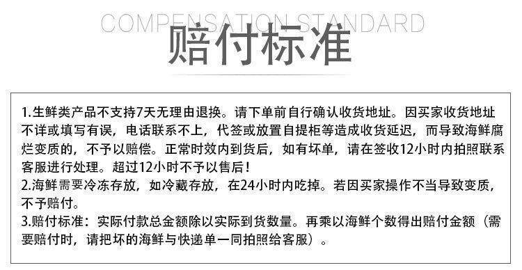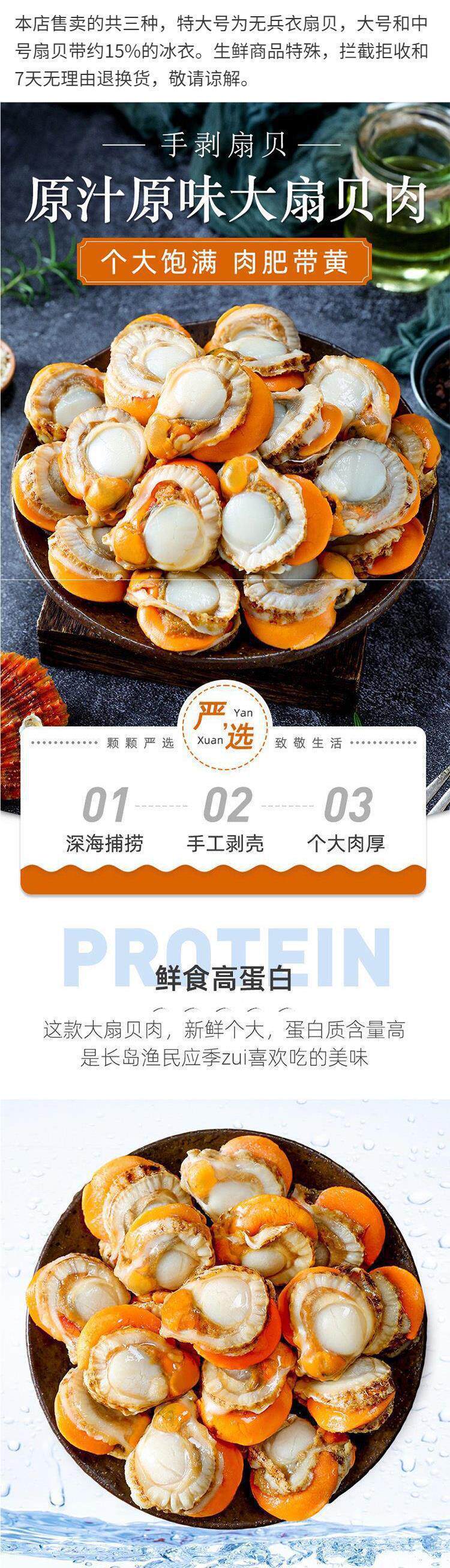 | Packaging specifications | Medium beicheng red shell 0.5kg pack,Large scallop meat 0.5kg pack,Medium beicheng red shell 1.5kg pack,Large scallop meat 1.5kg pack,Medium beicheng red shell 2.5kg pack,Scallop meat 1.5kg pack [extra large size without ice coating],Large scallop meat 2.5kg pack,Scallop meat 2.5kg pack [extra large size without ice coating] |