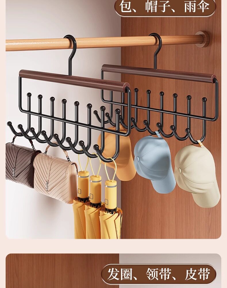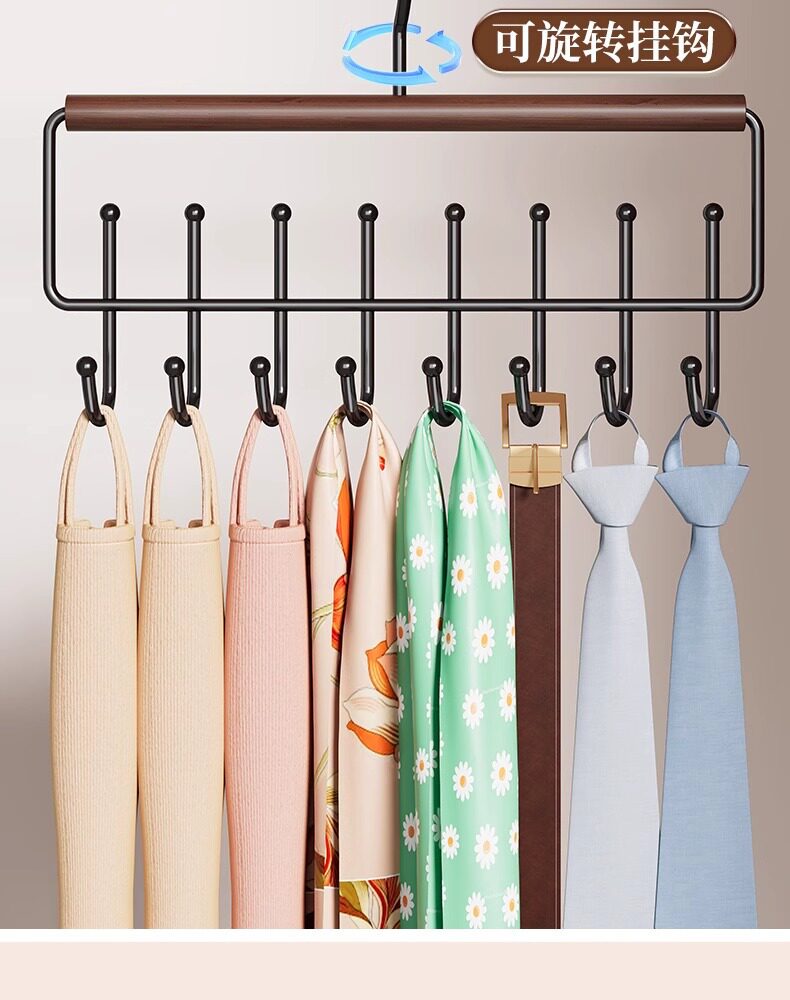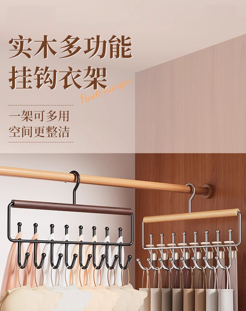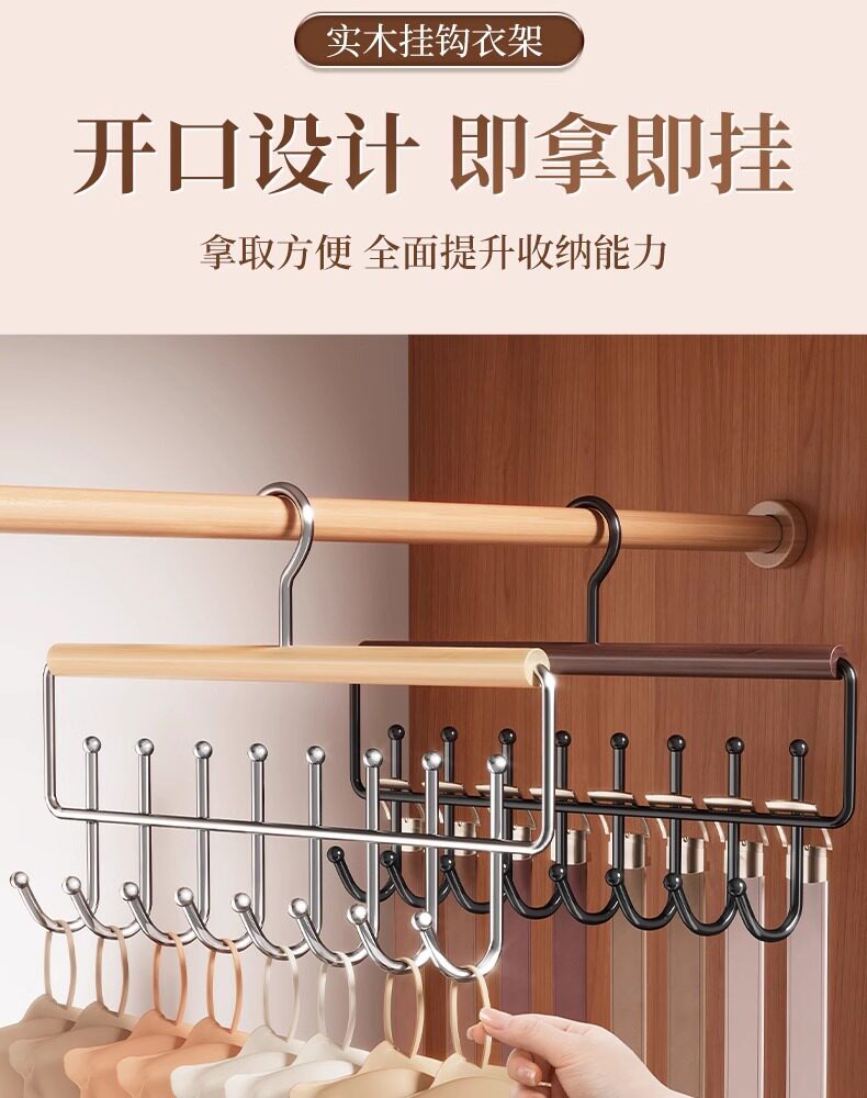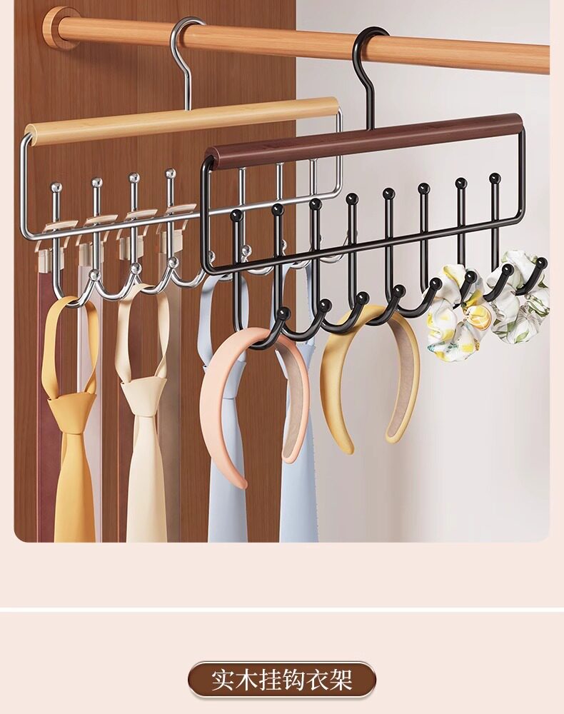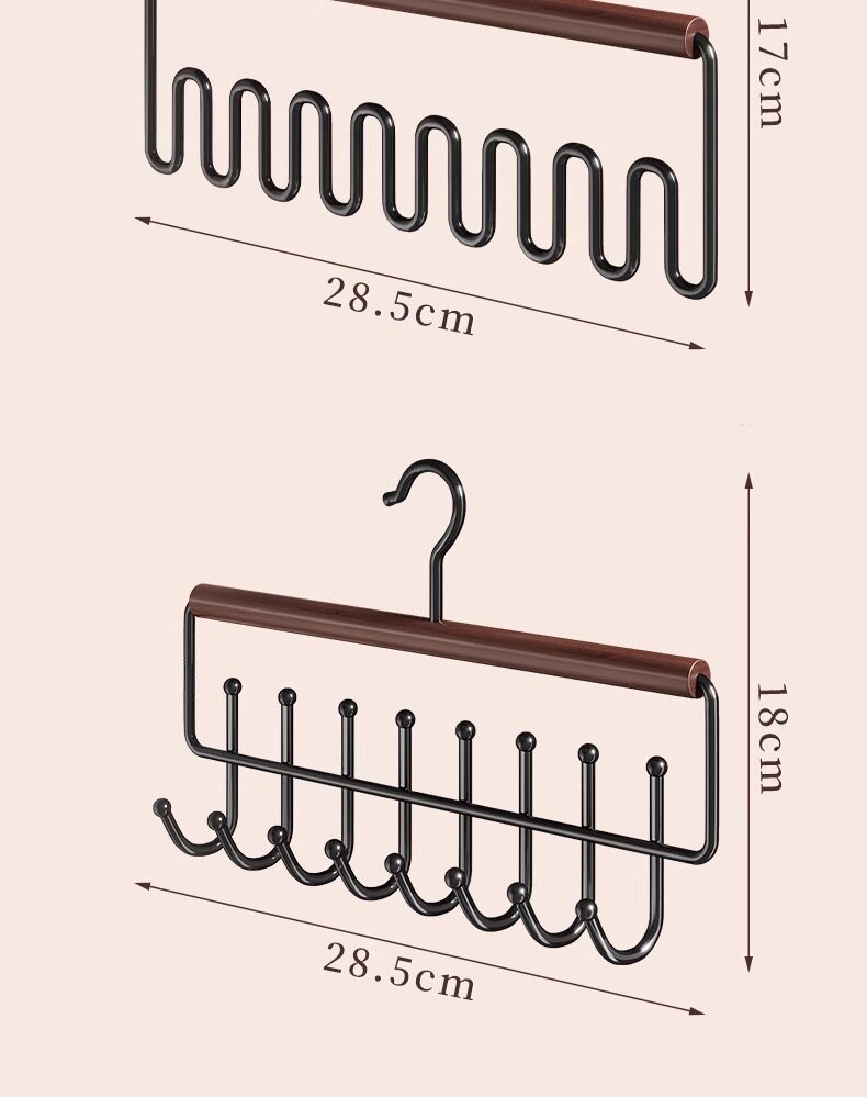 Wavy Solid Wood Hanger with Hooks for Home Use, Suitable for Hanging Clothes, Belts, Underwear, Scarves, and Belts, Multifunctional Storage Solution