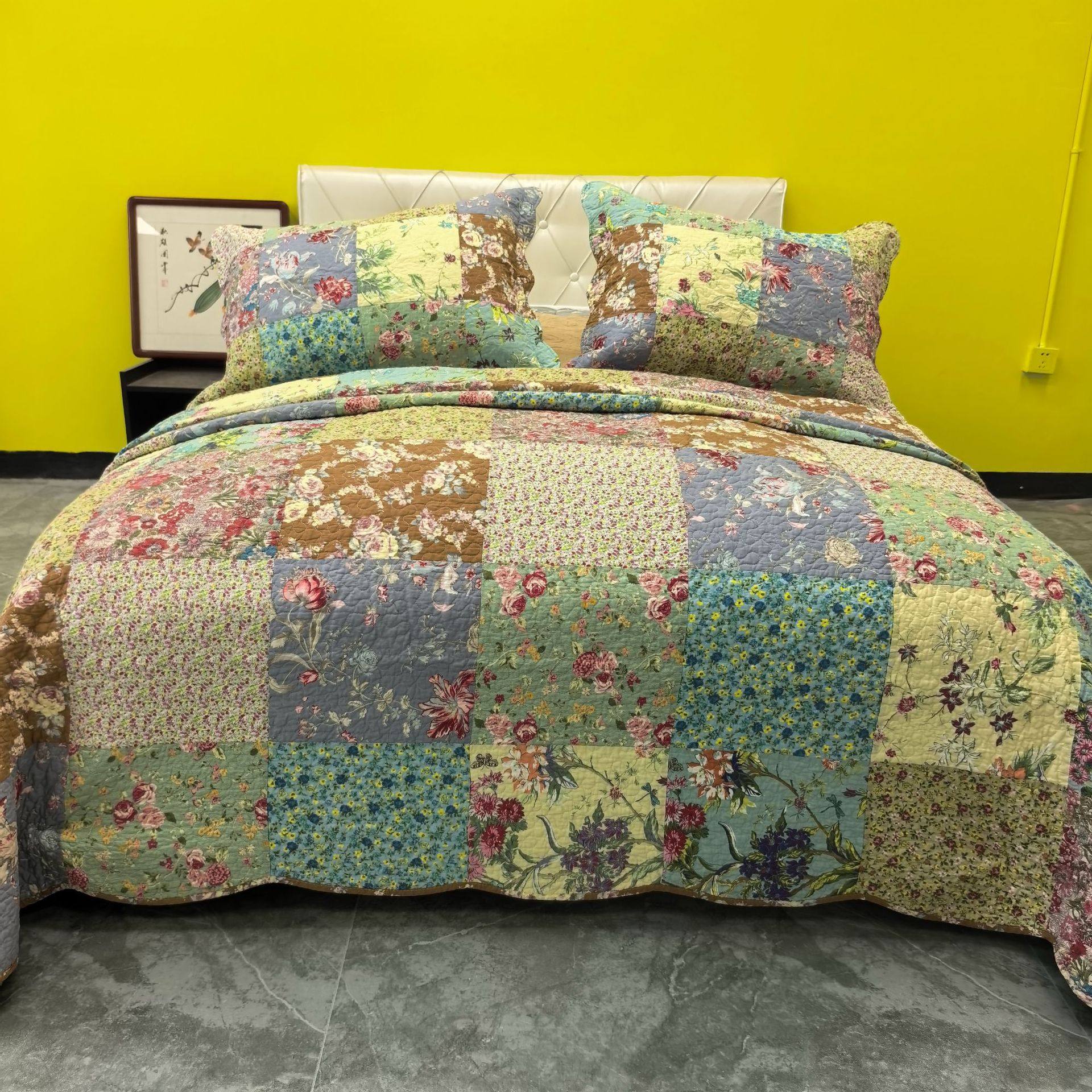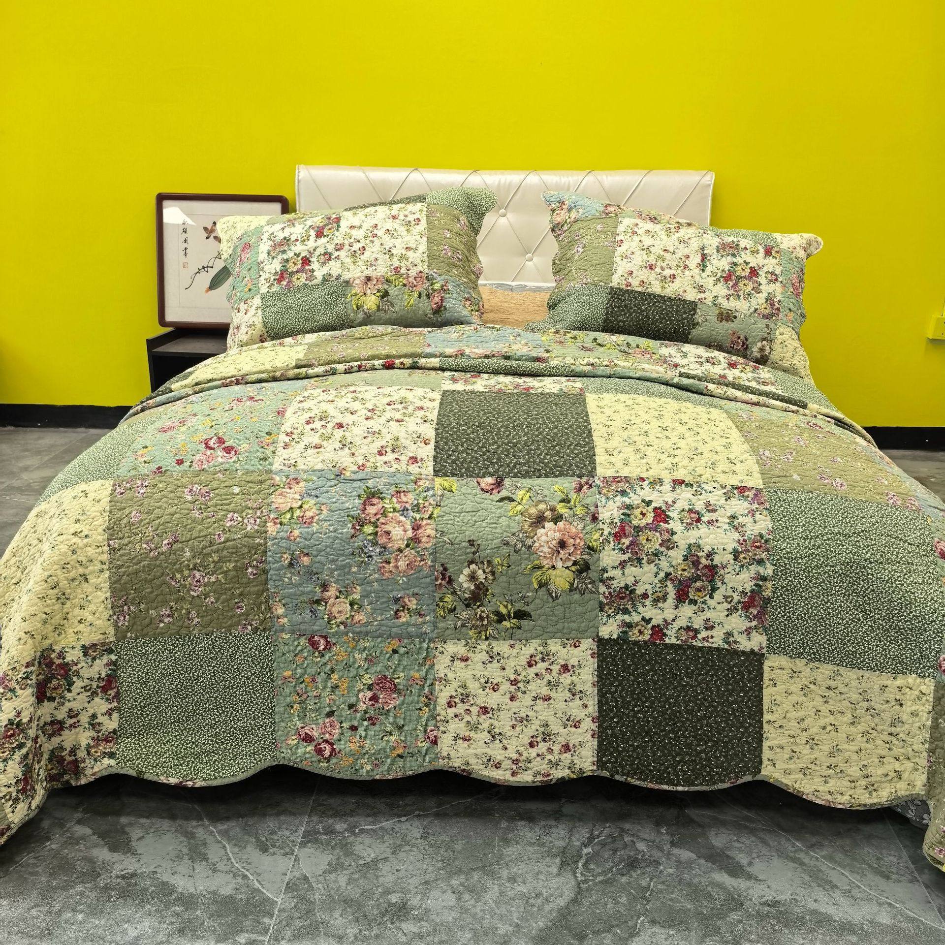 Foreign Trade Export European and American Quilted Quilt Pure Cotton Bed Cover European Style Handmade Patchwork Quilted Thickeneded Bed Bed Sheets Bed Cover Three-Piece Set