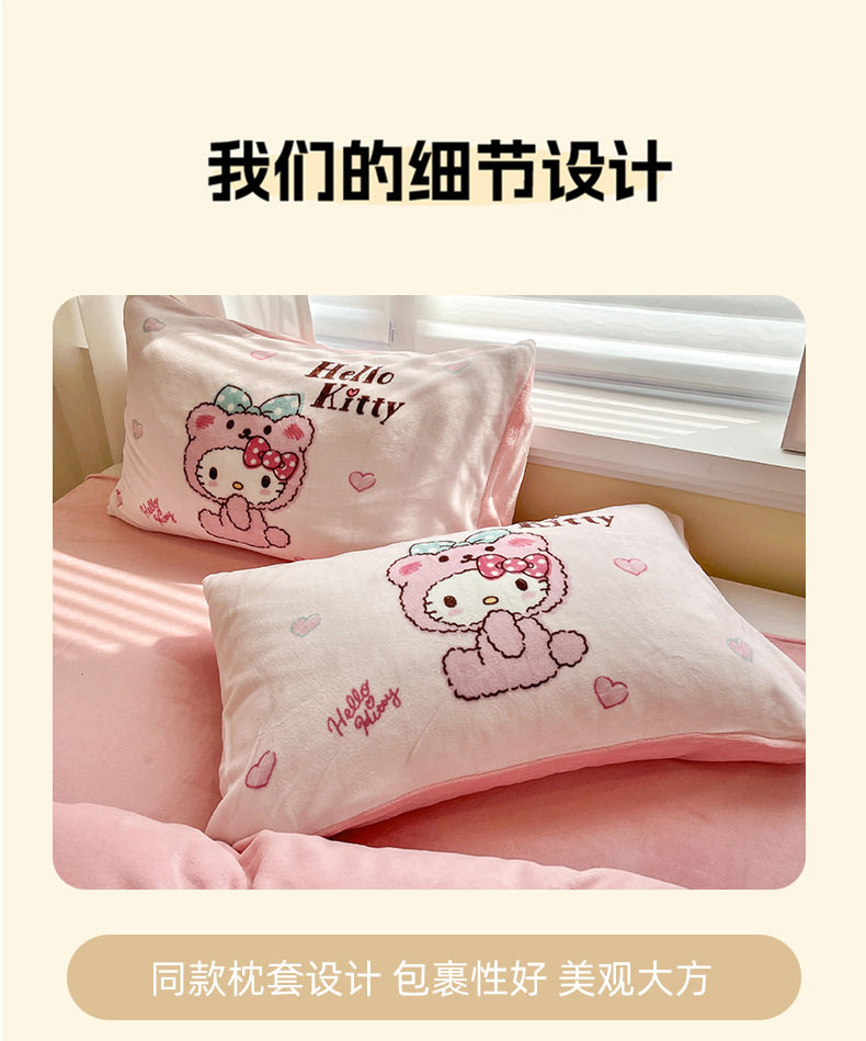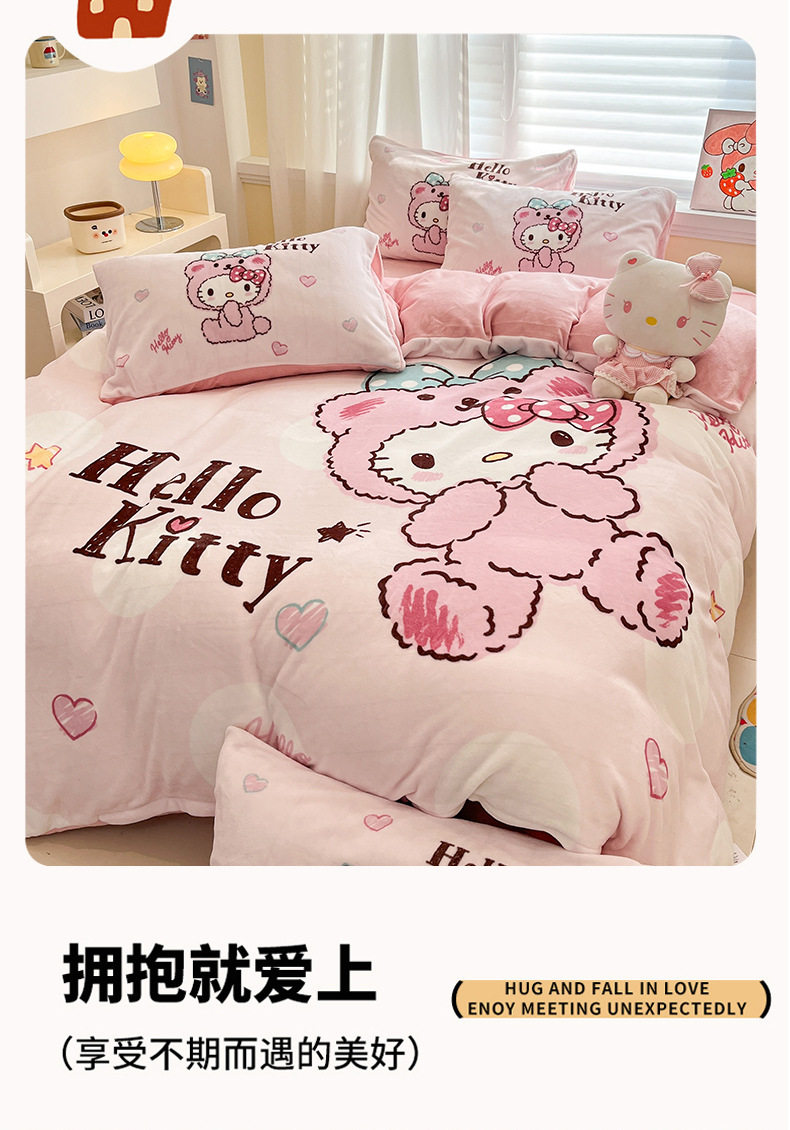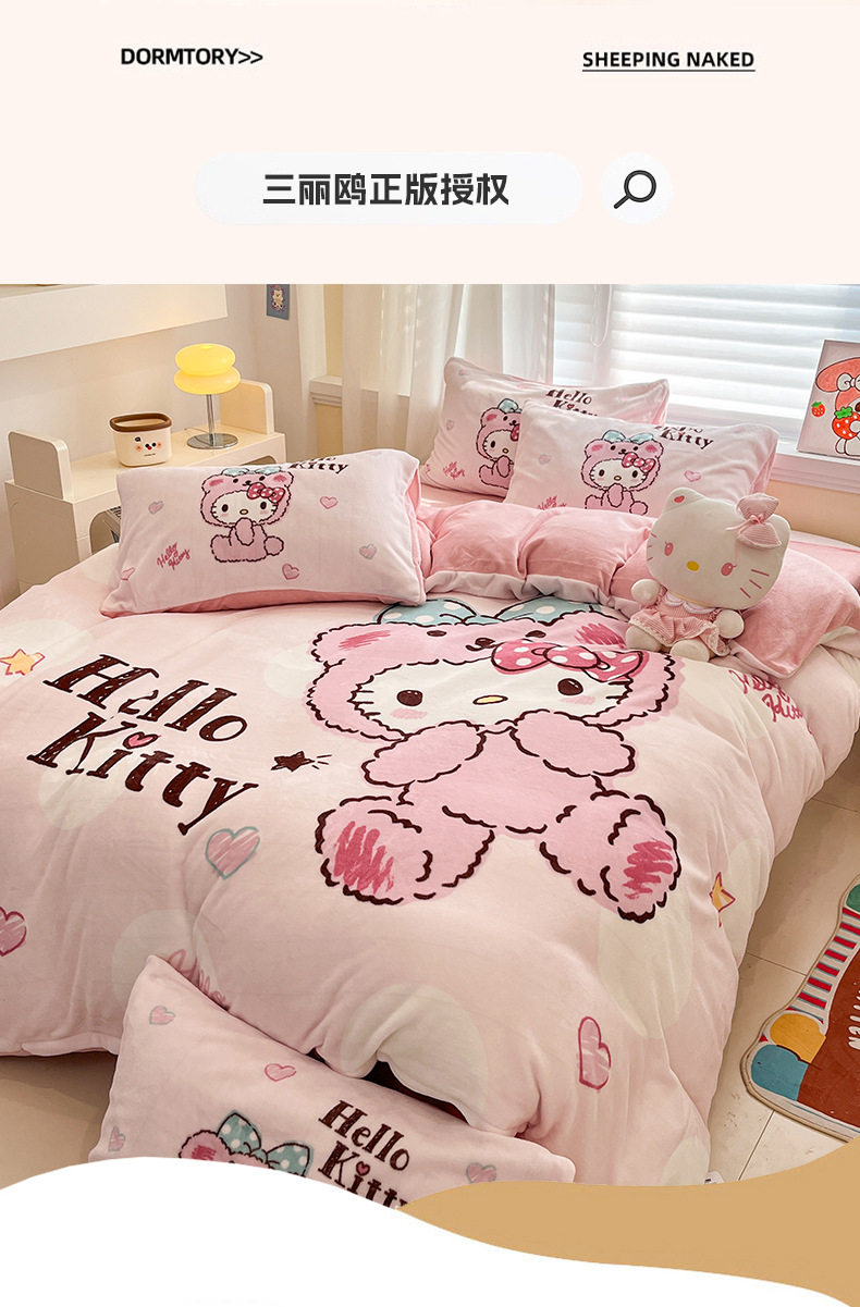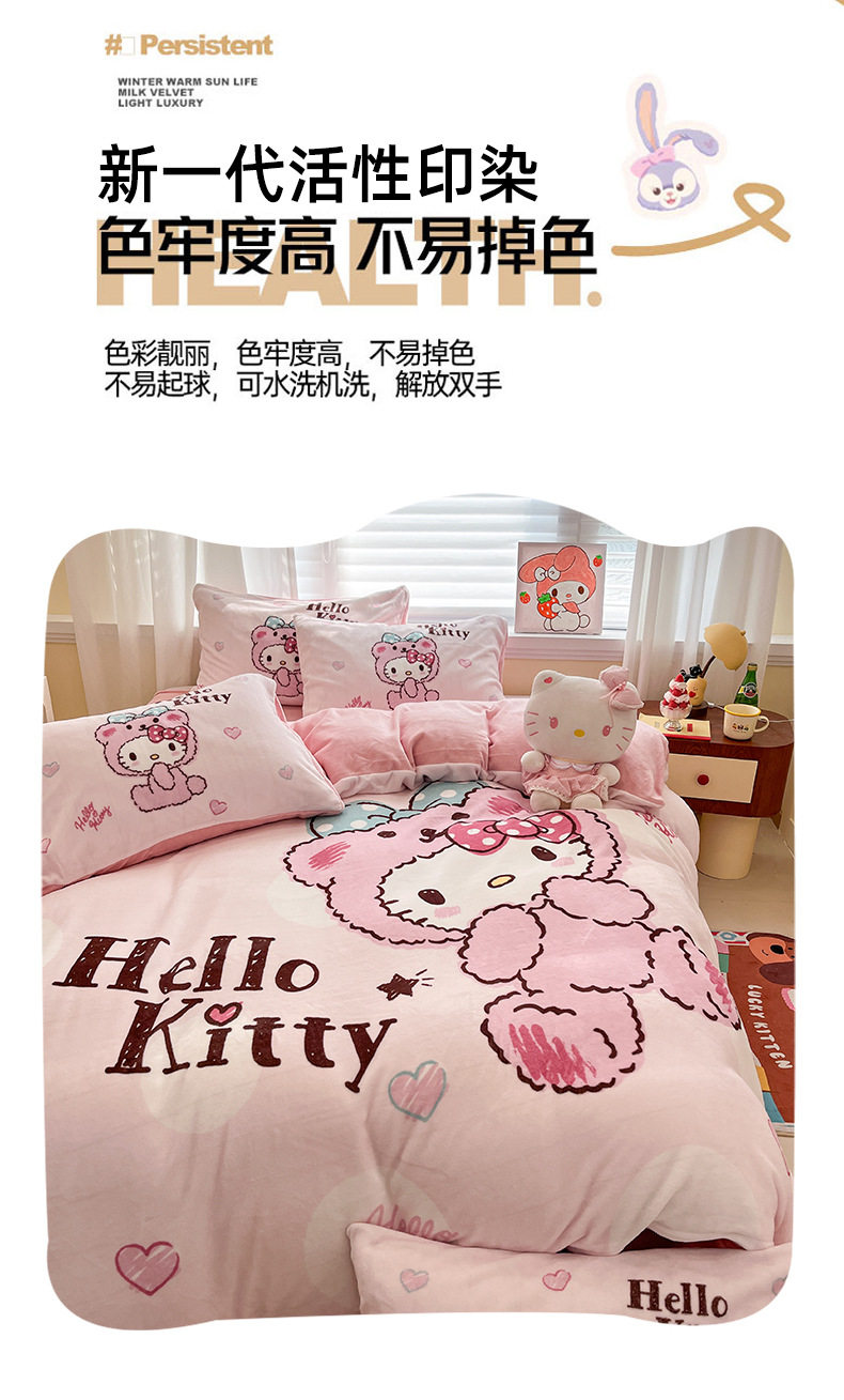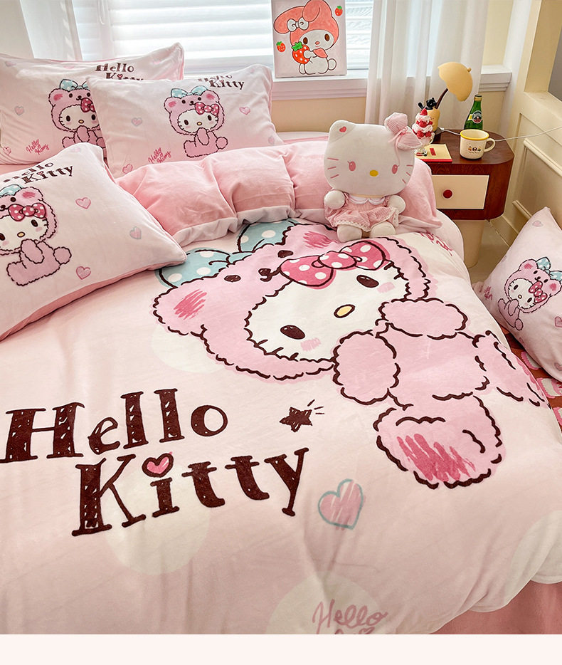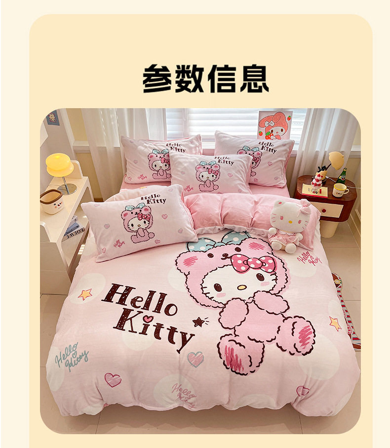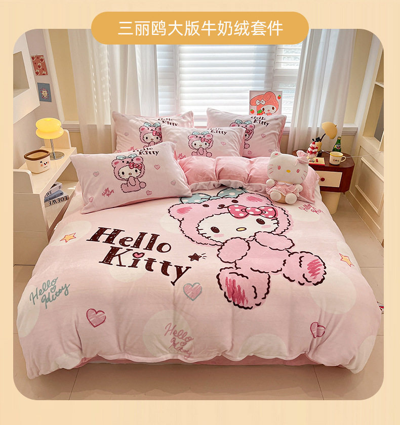 Sanrio Cartoon Winter Milk Velvet Bed Four-Piece Set Warm Fleece-Lined Bed Bed Sheets Quilt Cover Kidsren's Dormitory Three-Piece Set