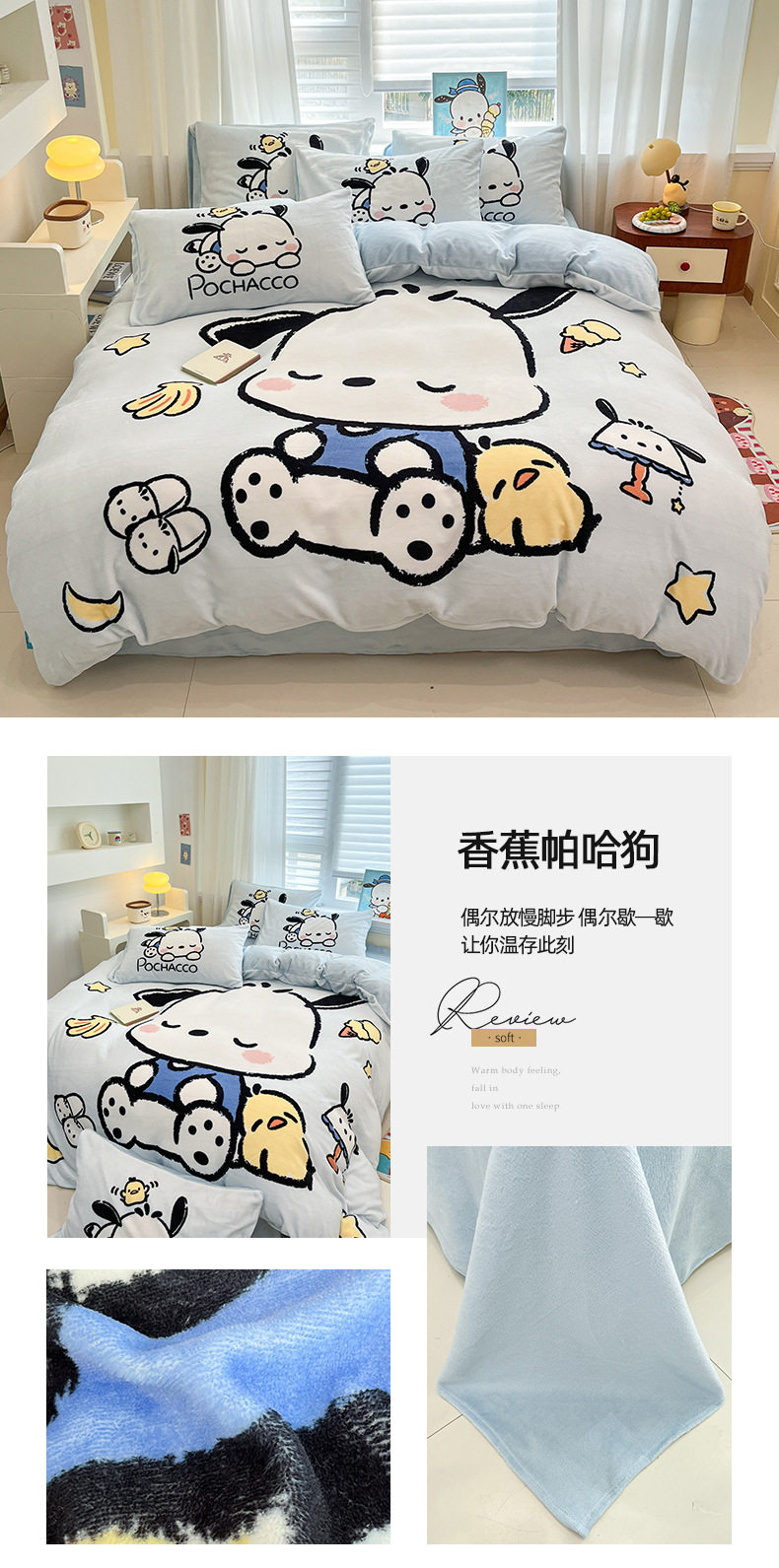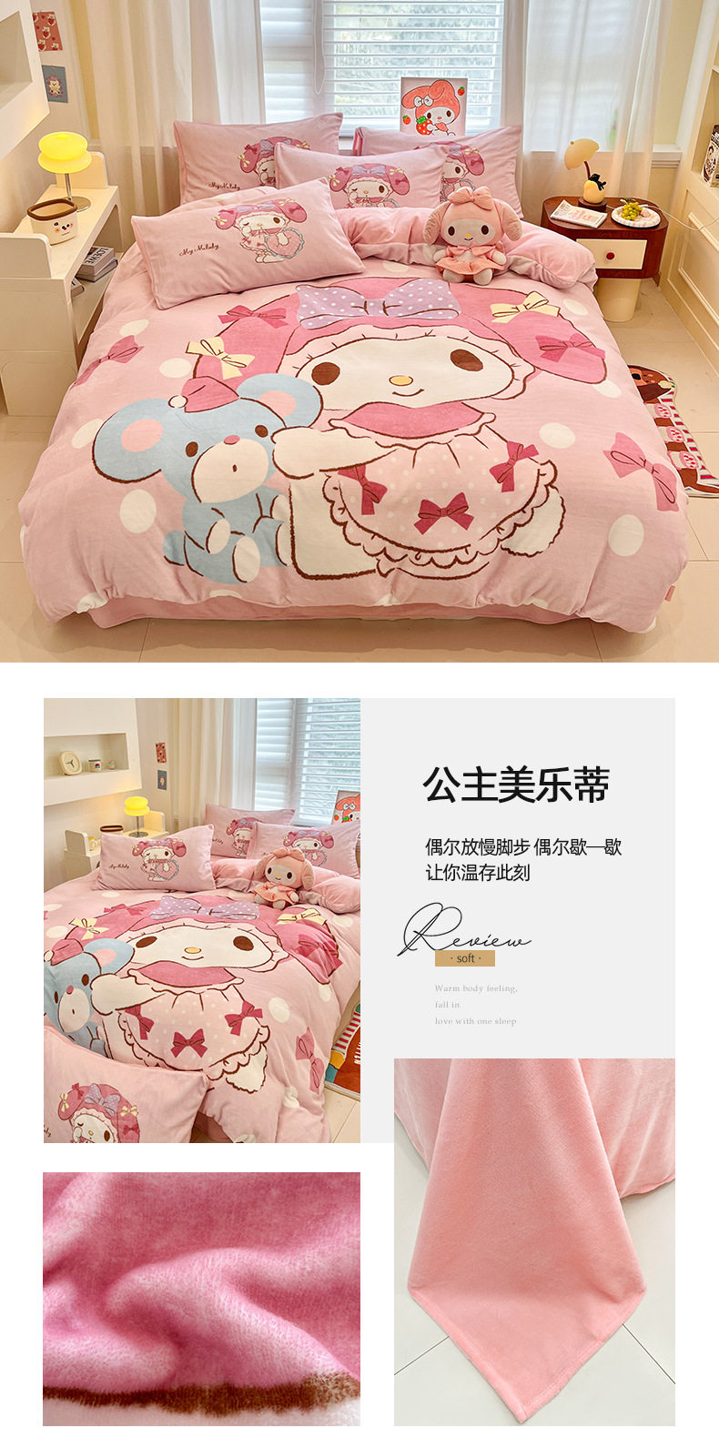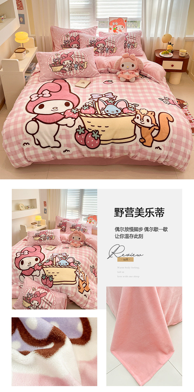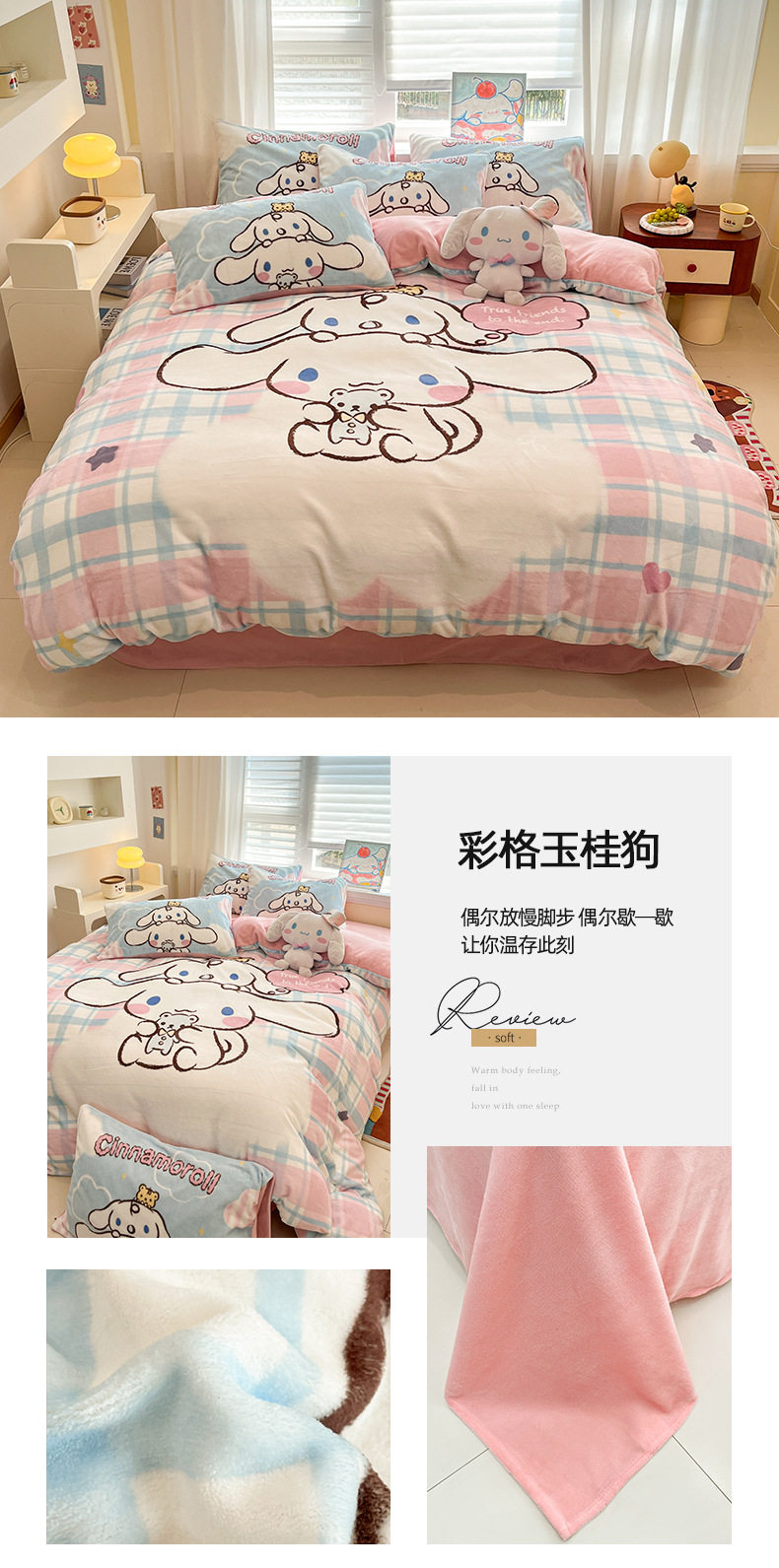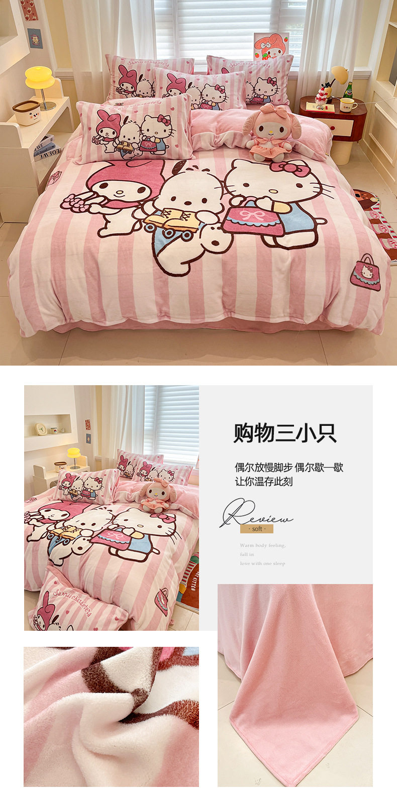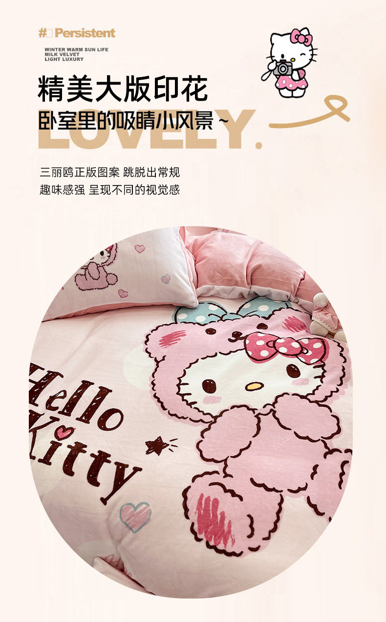 Sanrio Cartoon Winter Milk Velvet Bed Four-Piece Set Warm Fleece-Lined Bed Bed Sheets Quilt Cover Kidsren's Dormitory Three-Piece Set
