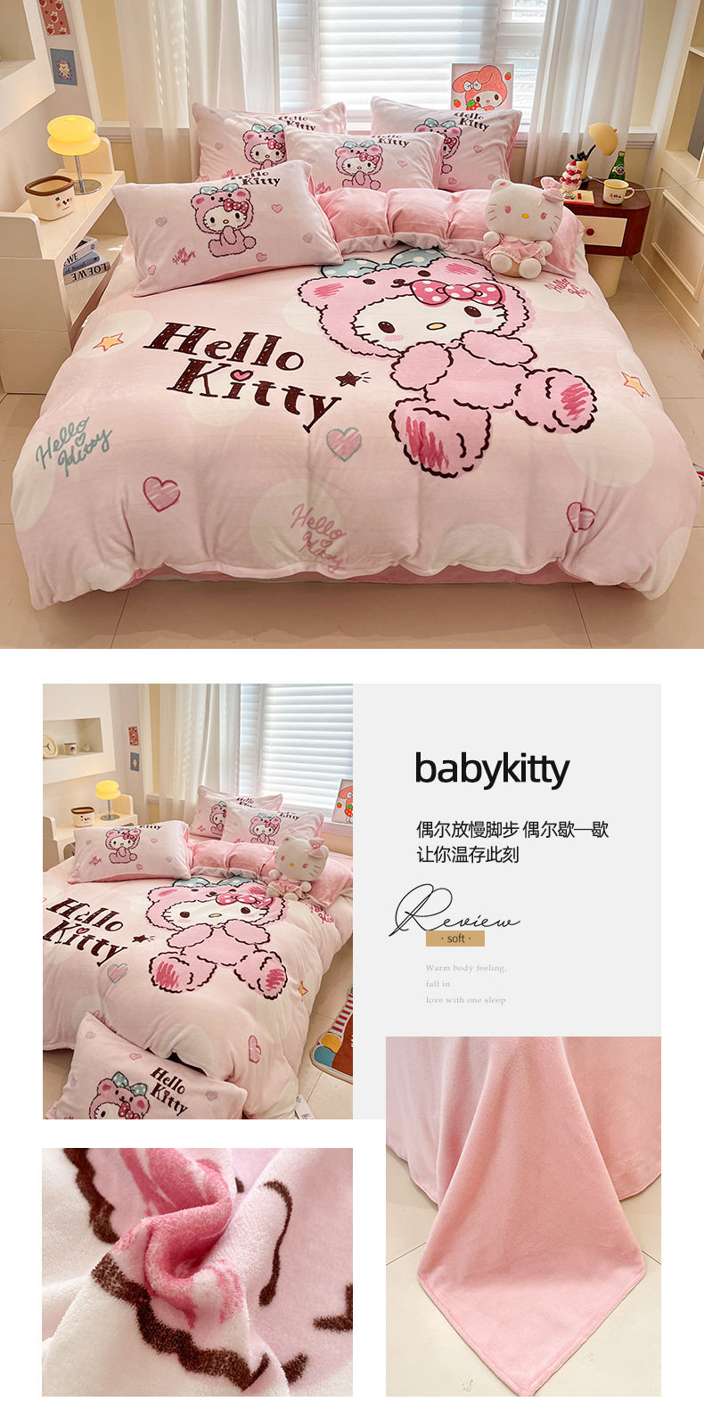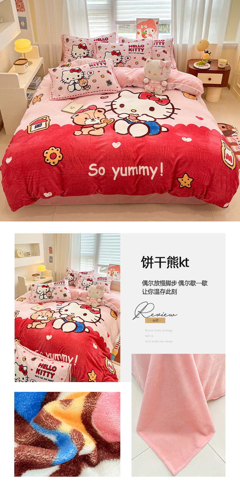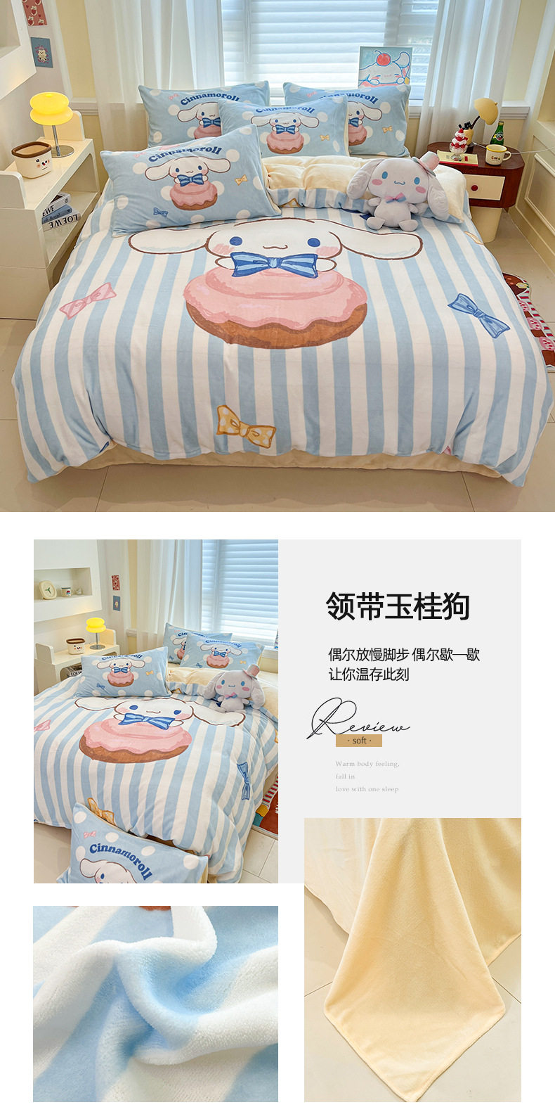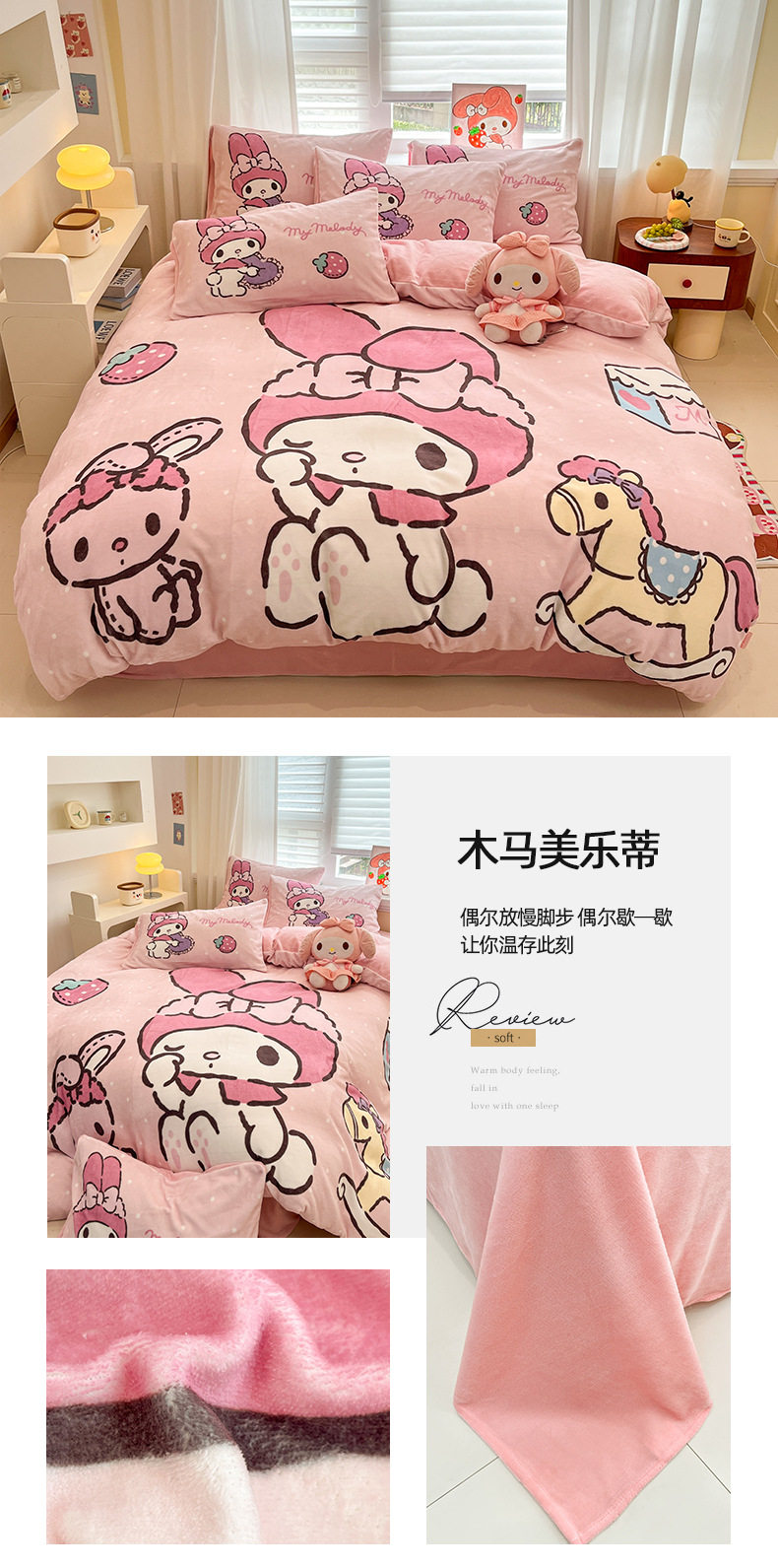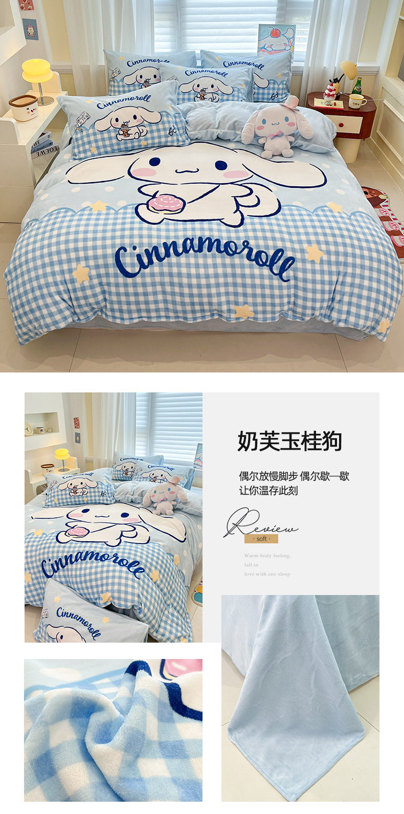 Sanrio Cartoon Winter Milk Velvet Bed Four-Piece Set Warm Fleece-Lined Bed Bed Sheets Quilt Cover Kidsren's Dormitory Three-Piece Set