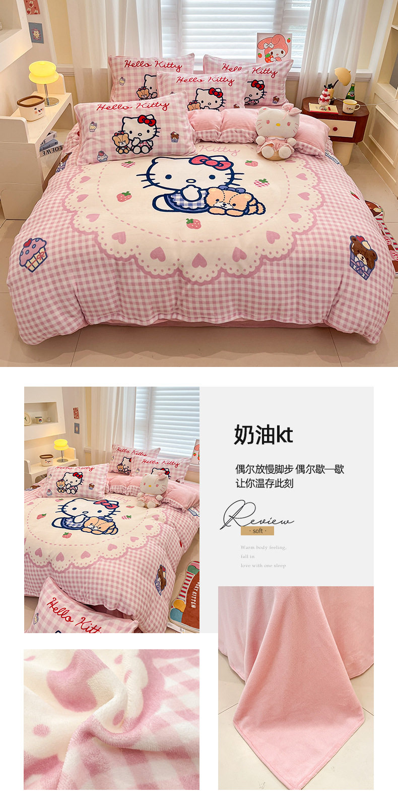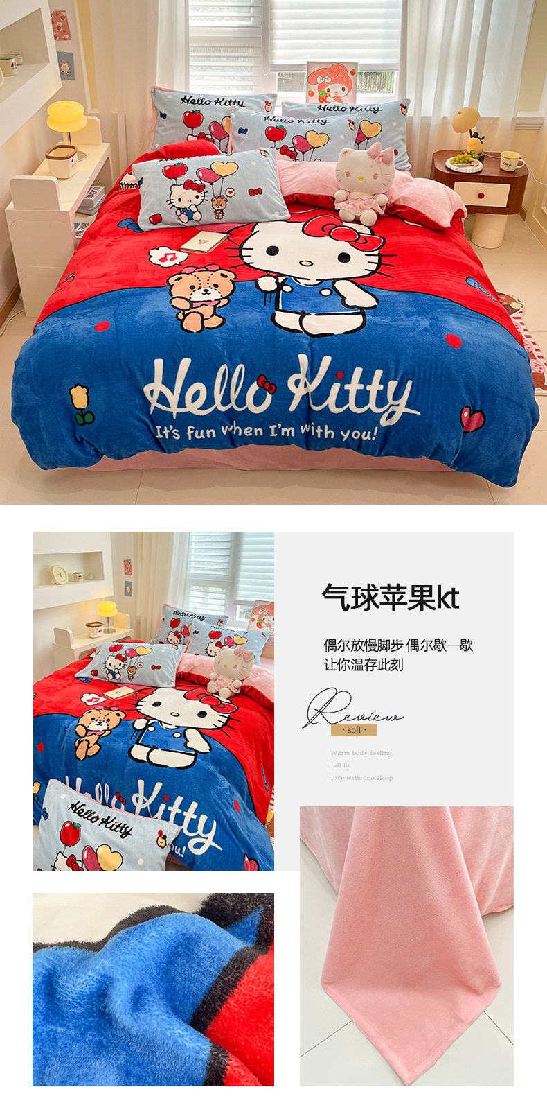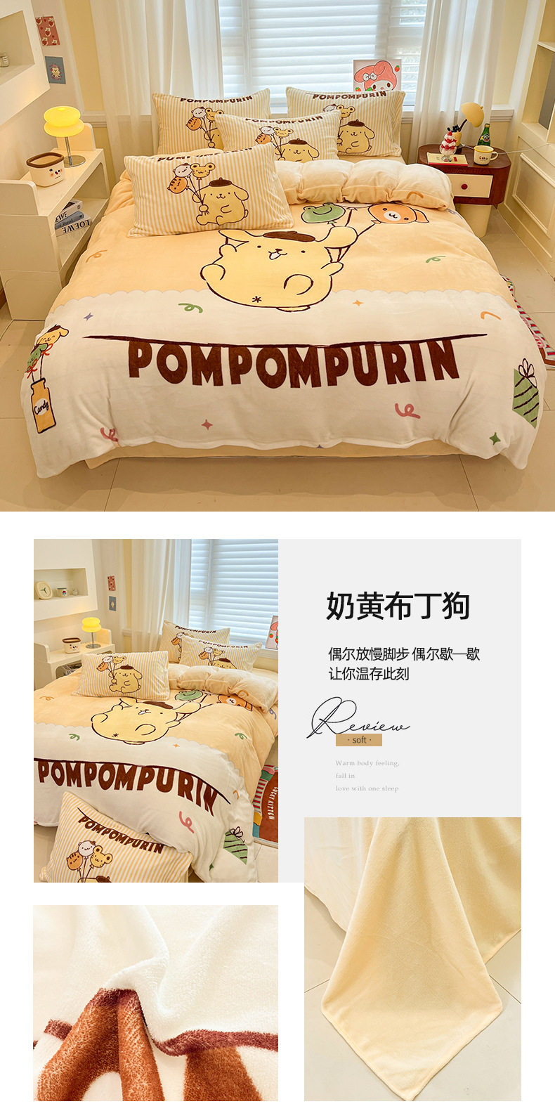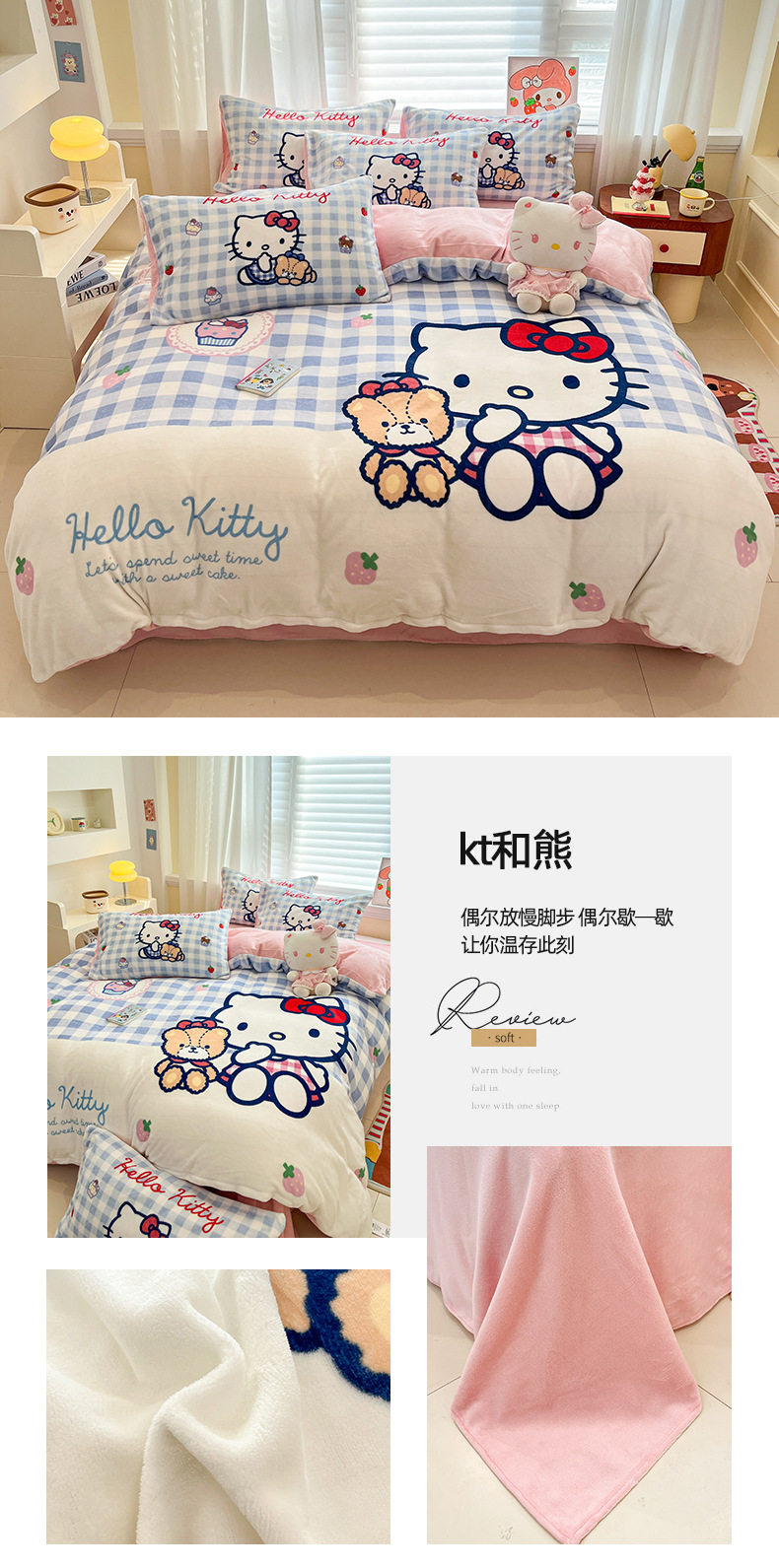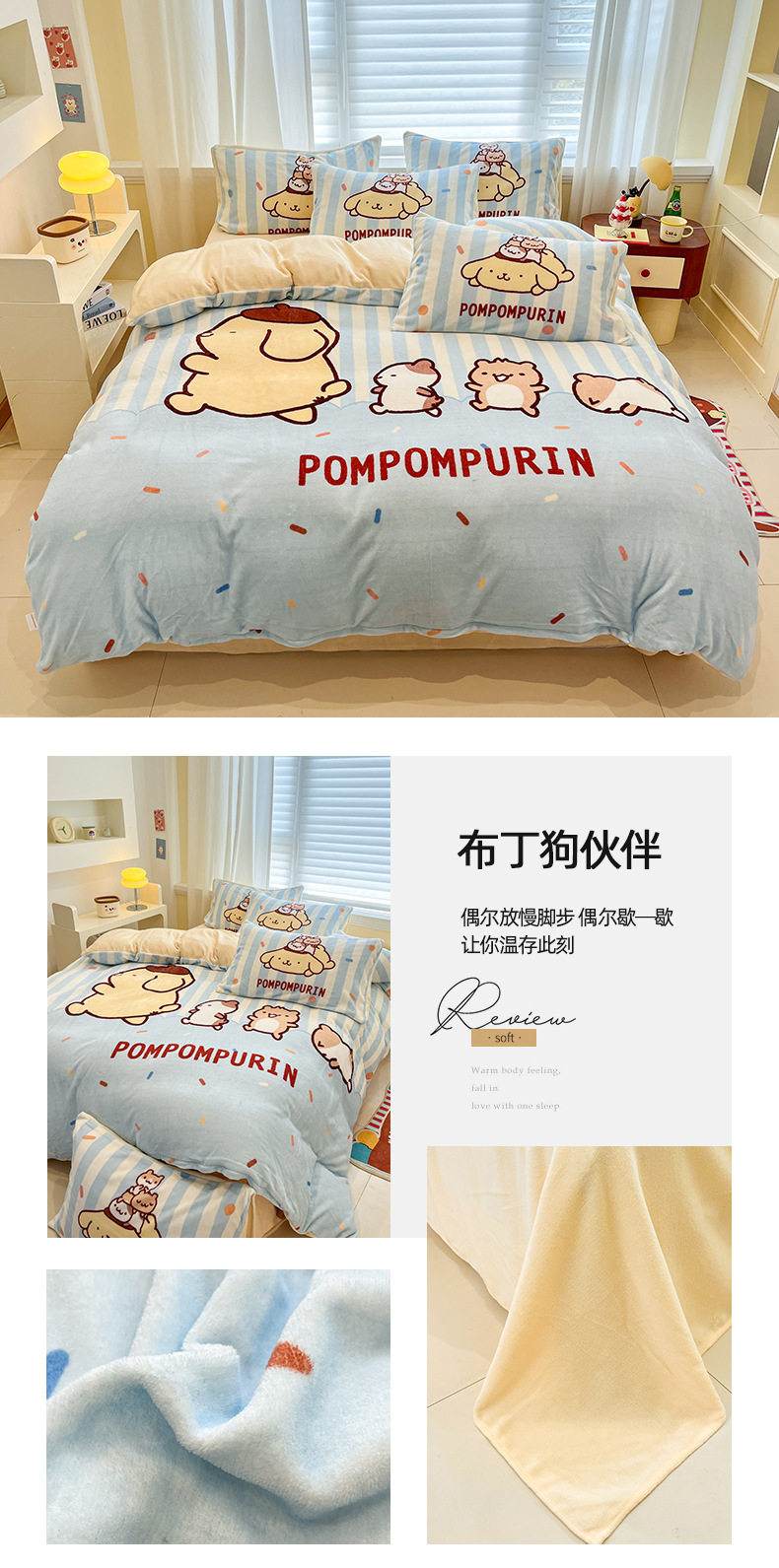 Sanrio Cartoon Winter Milk Velvet Bed Four-Piece Set Warm Fleece-Lined Bed Bed Sheets Quilt Cover Kidsren's Dormitory Three-Piece Set