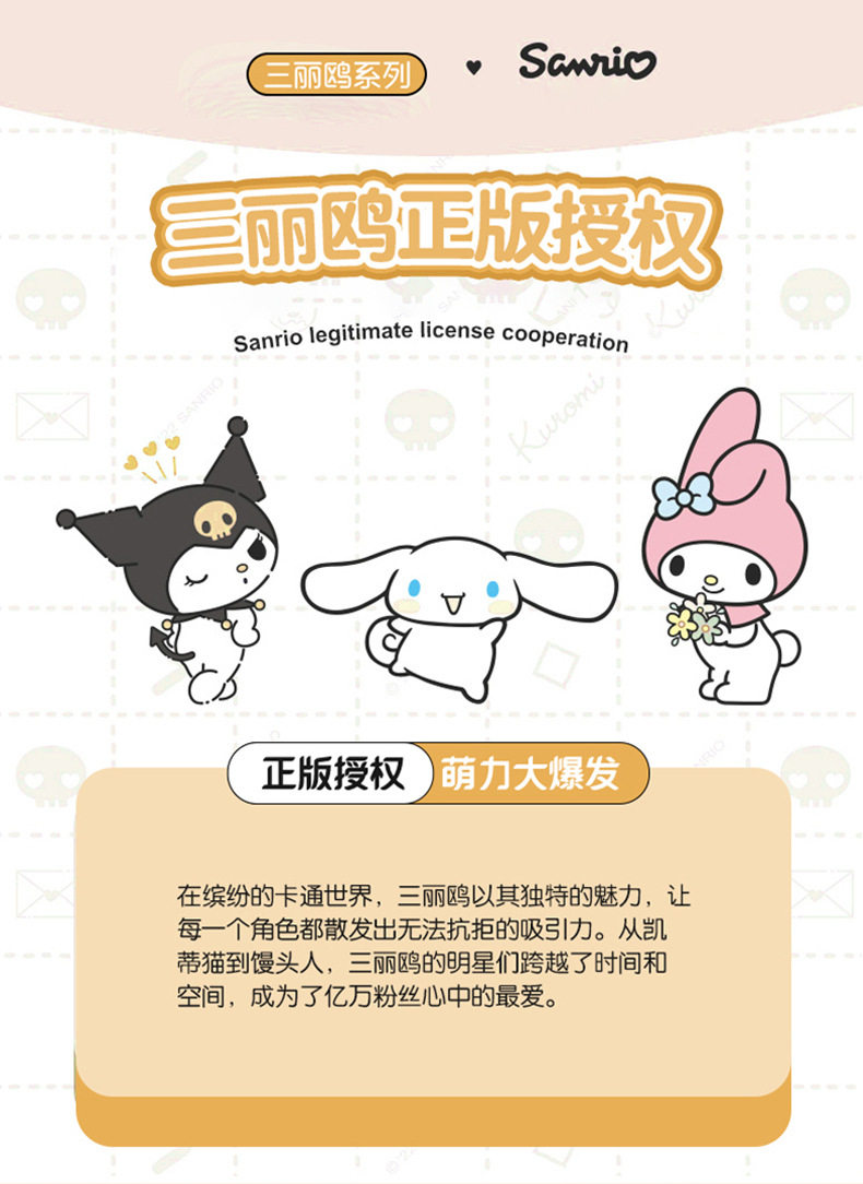 | Pattern | Velvet osaka kit-biscuit bear kt,Velvet osaka kit-colored jade gui dog,Velvet osaka kit-princess melody,Velvet osaka kit-trojan melody,Velvet osaka kit-balloon apple kt,Velvet osaka kit-banana pahar dog,Velvet osaka kit-camping melody,Large velvet version-baku kuromi,Velvet large edition-pudding dog buddy,Large velvet version - shopping for three small ones,Velvet large edition-tie jade gui dog,Large velvet version-naifu yugui dog,Large velvet version-custard pudding dog,Velvet large version-cream kt,Velvet large version-candy kt,Large velvet version-star melody,Velvet large version-babykitty,Velvet large version-kt and bear |