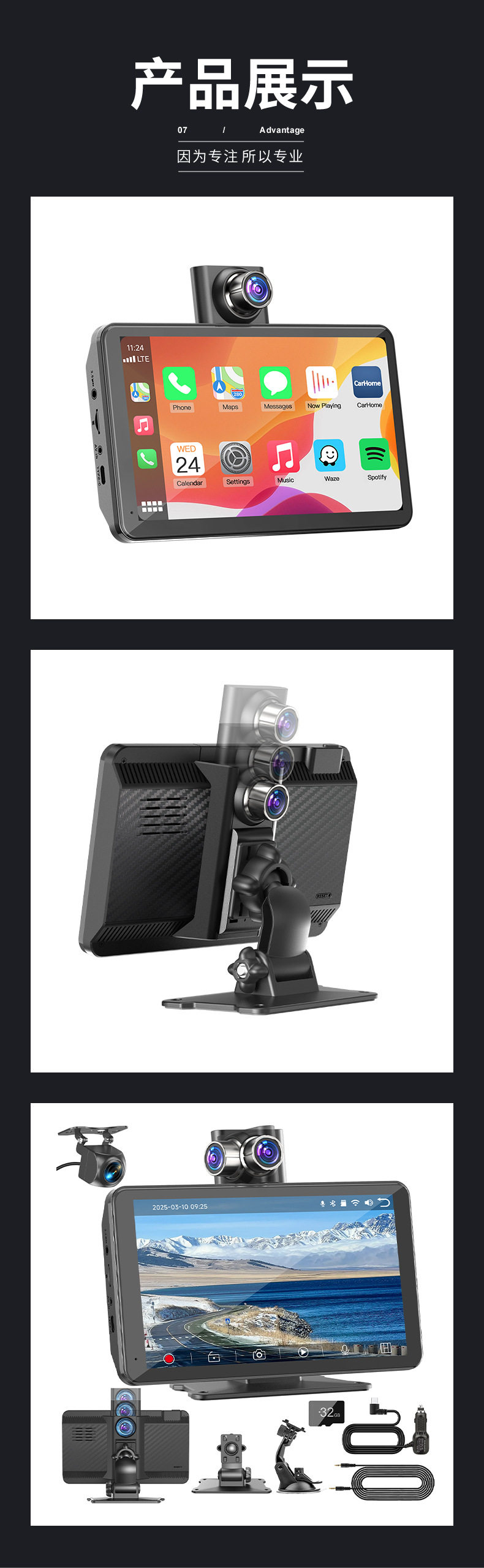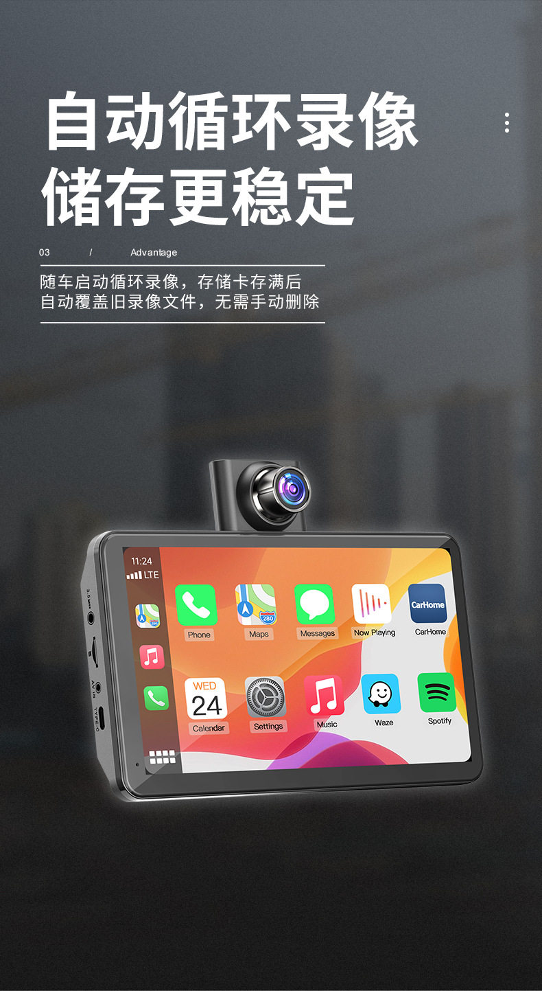 Cross-Border Carplay Recorder 1080P Retractable Car Lens Multi-Language System Night Vision Driving Recorder Dual Camera