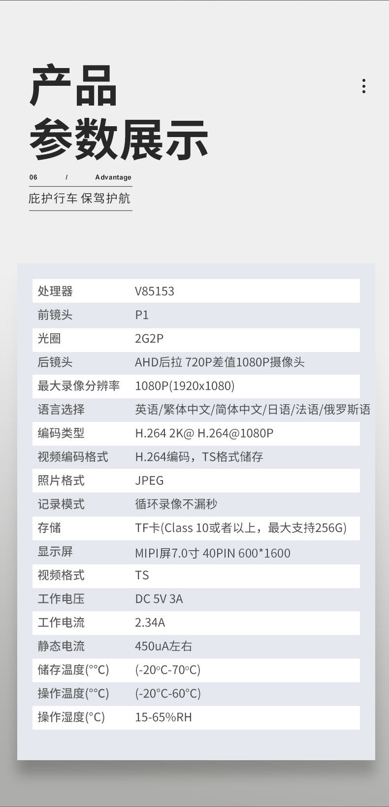 | Function | Reverse image,Motion detection,Loop recording,Before and after recording |
