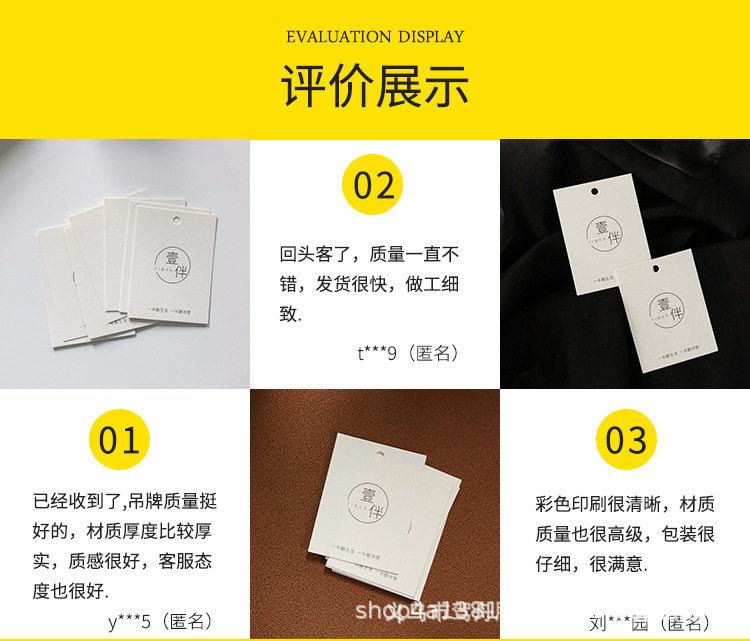Customized Clothing Tags, Tag Production, Men's and Women's Clothing Labels, White Cardboard Color-Printed Tags, Certificate of Conformity