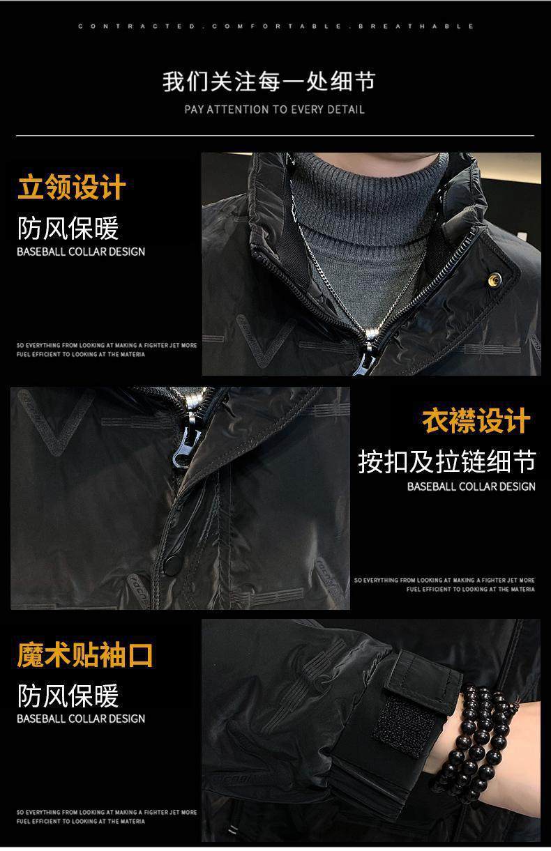 Men's down Jacket Trendy Simple Stand Collar Thick Warm Korean Style Slim Stylish Trendy Brand Men's down Coat