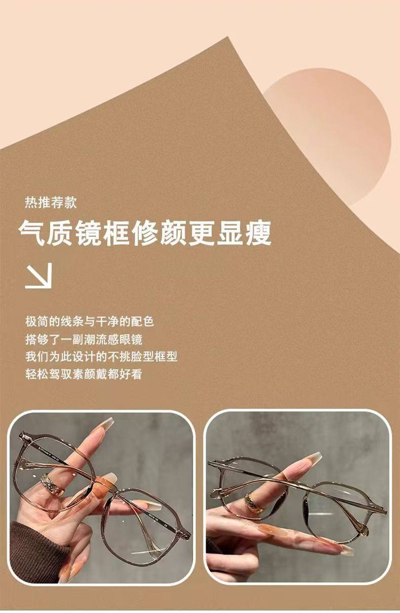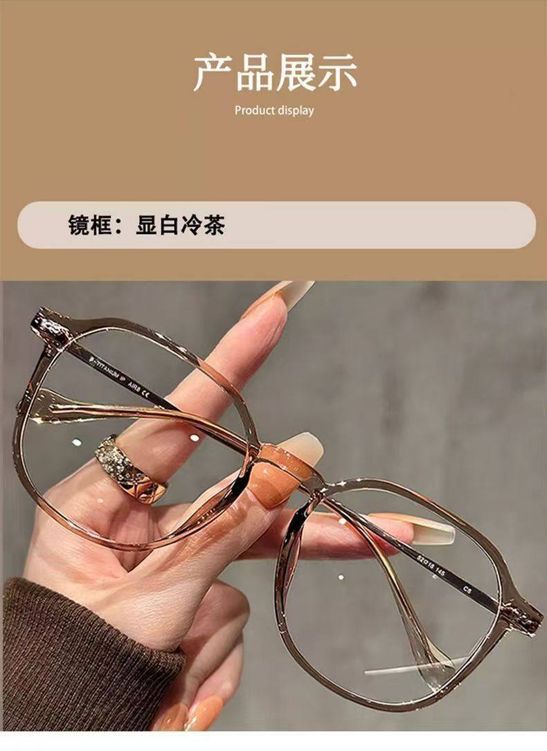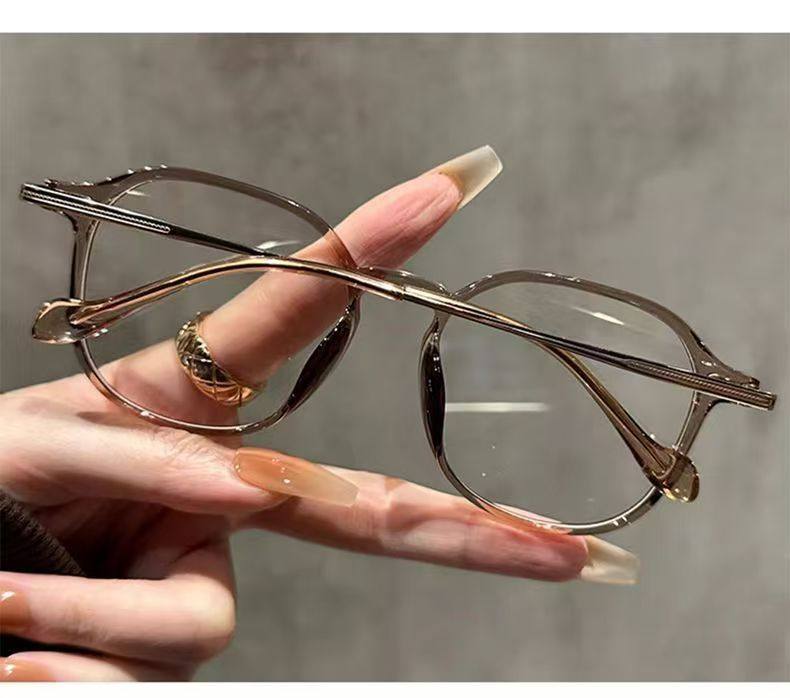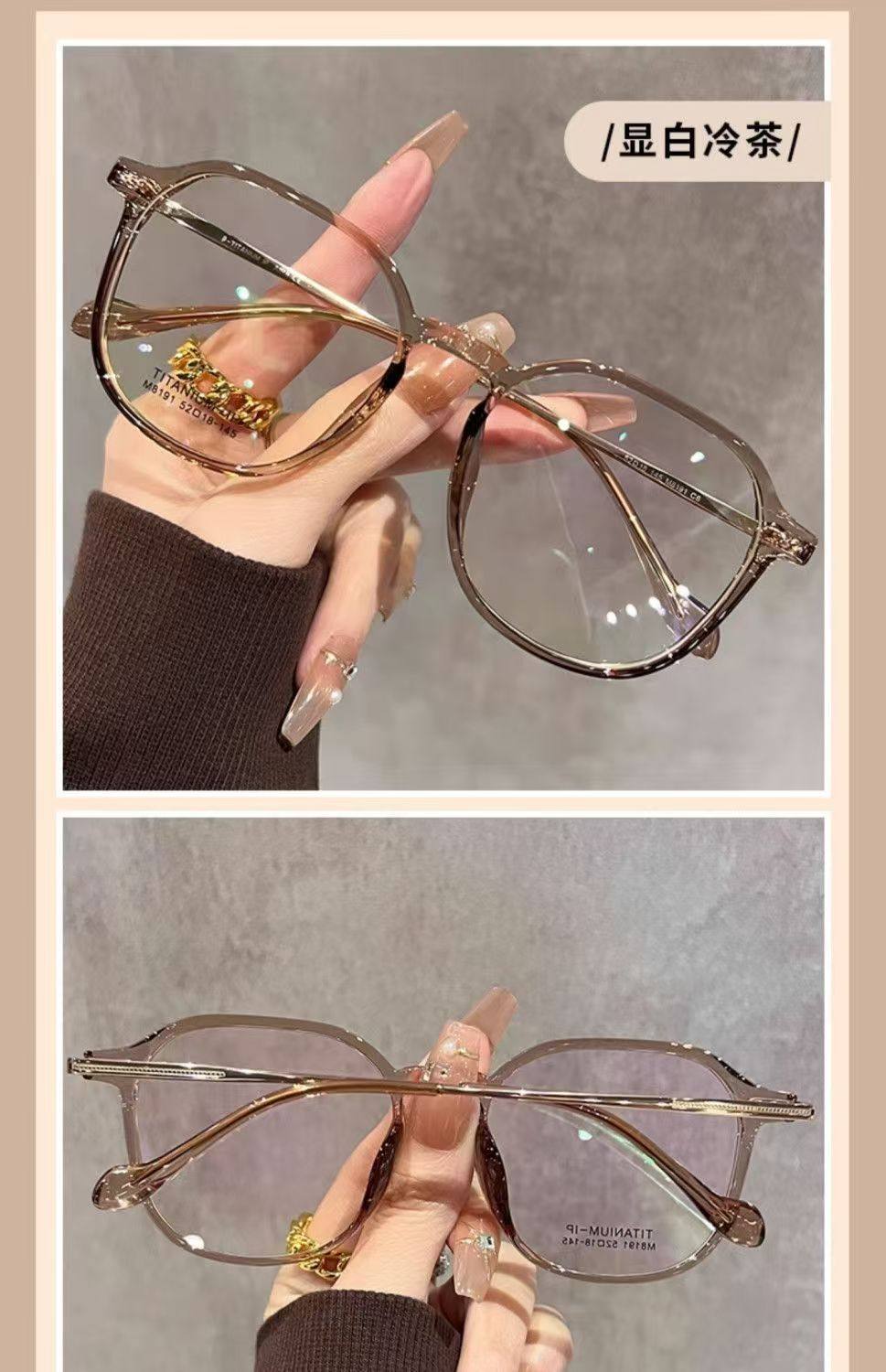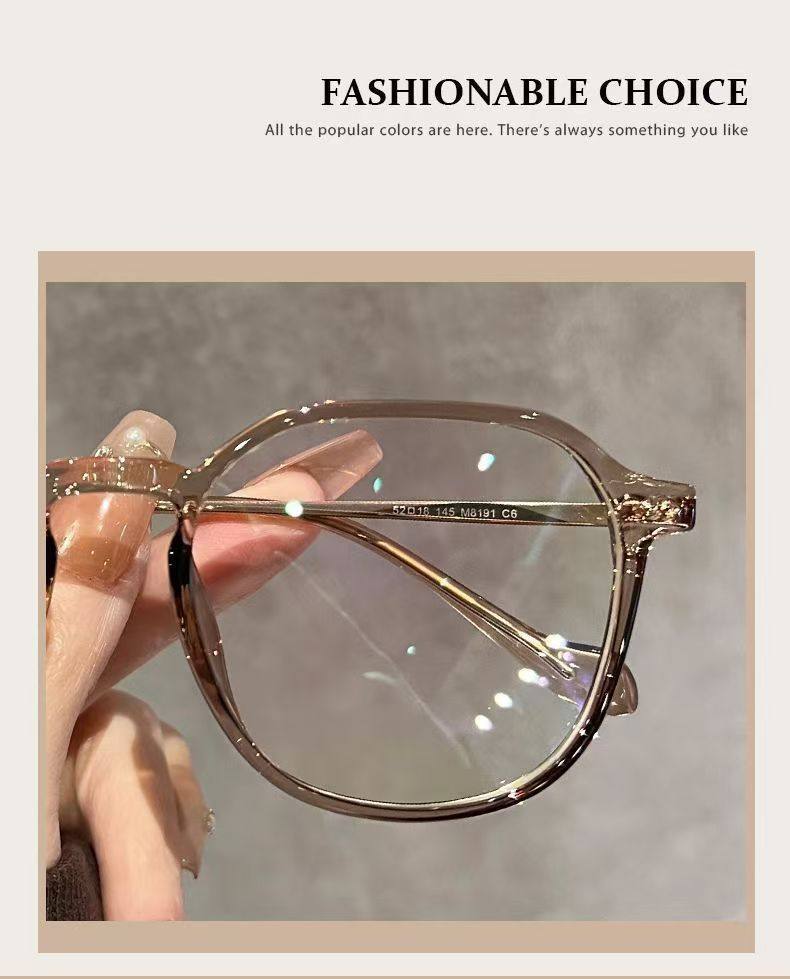 Ultra-Light Large Frame Cold Tea-Colored Prescription Glasses for Women, Available with Prescription Lenses, Natural Look, Slimming Polygonal Eyeglass Frame
