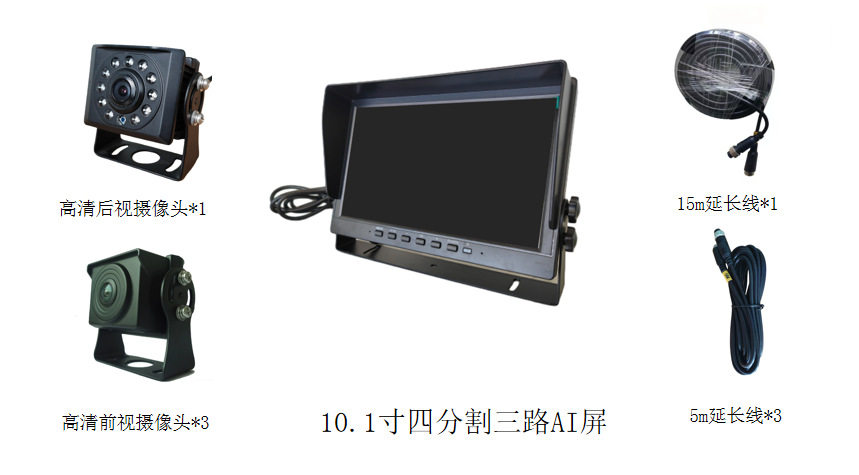 | Specifications | 10.1inch four-split three-way ai screen + 4-way ahd hd camera |