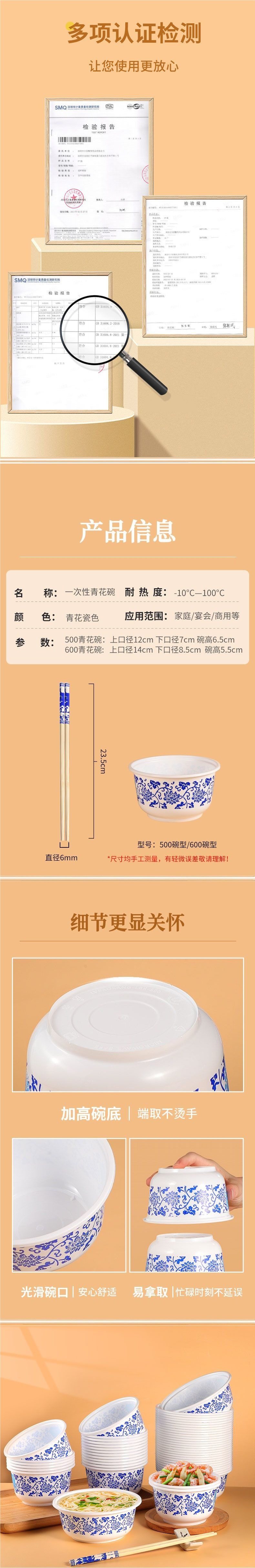 | Color | [portable for outings] 50 pieces per bowl,[portable for going out] 50 bowls + 50 pairs of chopsticks,[family party] 100 bowls + 100 pairs of chopsticks,[business reception] 200 bowls + 200 pairs of chopsticks,[industry stocking up] 600 bowls + 600 pairs of chopsticks,【family party】100 pieces per bowl,[business reception] 200 pieces per bowl,[industry stocking] single order of 600 pieces |
