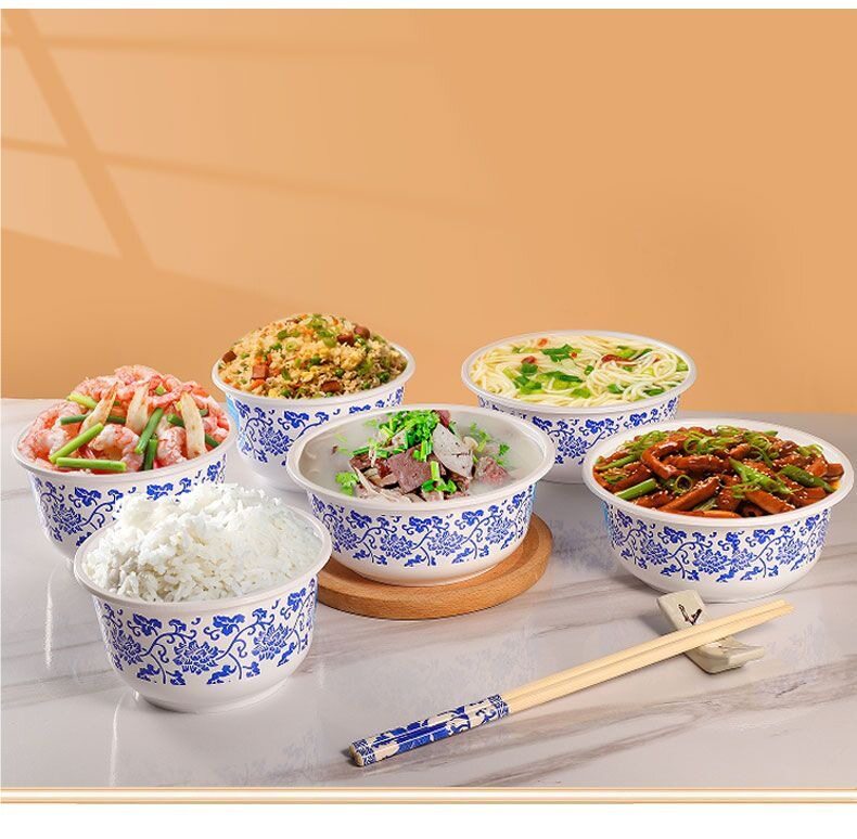 Disposable Blue and White Porcelain Bowl Food Grade Thickeneded Tableware Combination Set Household New Year Hot Pot Round Soup Rice Bowl