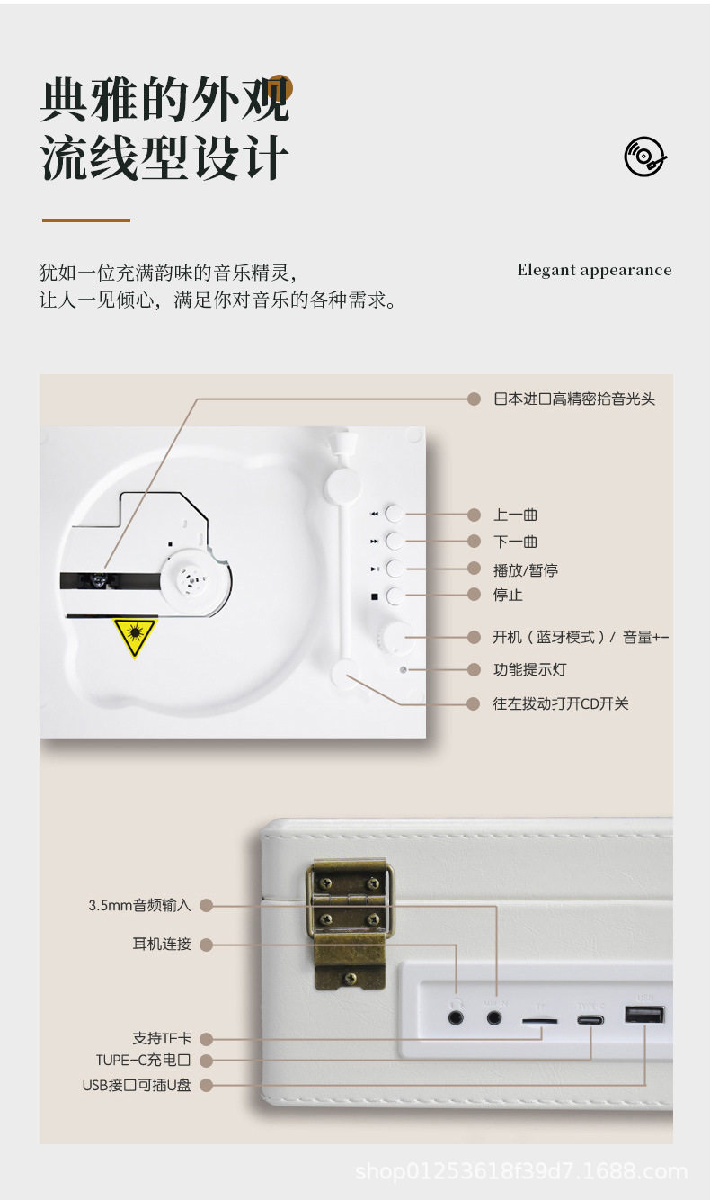 Cd Player Retro Bluetooth Audio Integrated Portable Album Record Player Music Cd Player Audiophile Grade