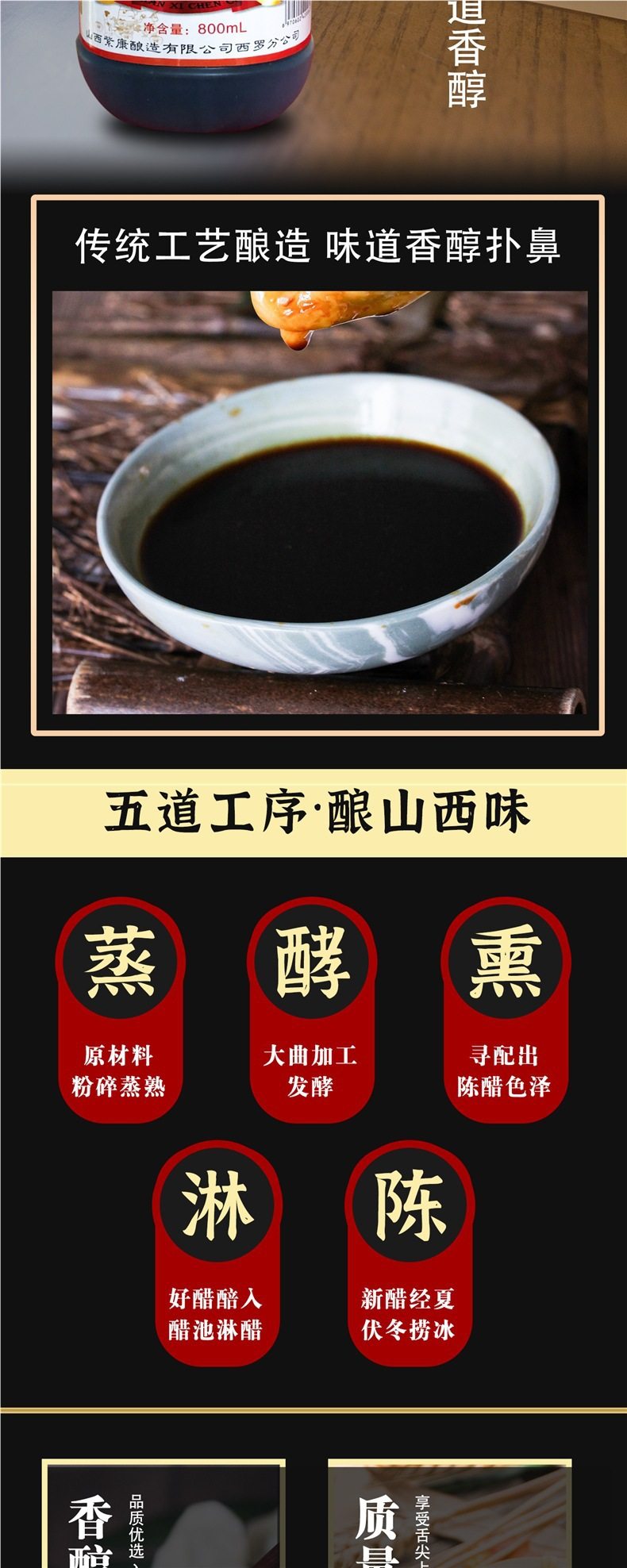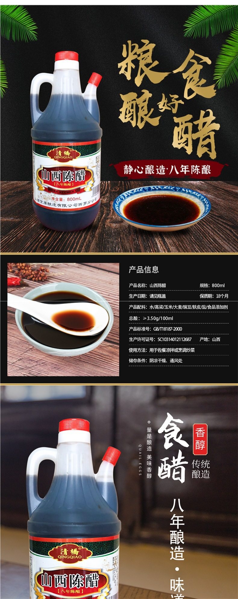 Shanxi Aged Vinegar 800ml Shanxi Vinegar for Cold Dumplings, Small Bottle for Home Use, Specialty Edible Grain Vinegar Packaging