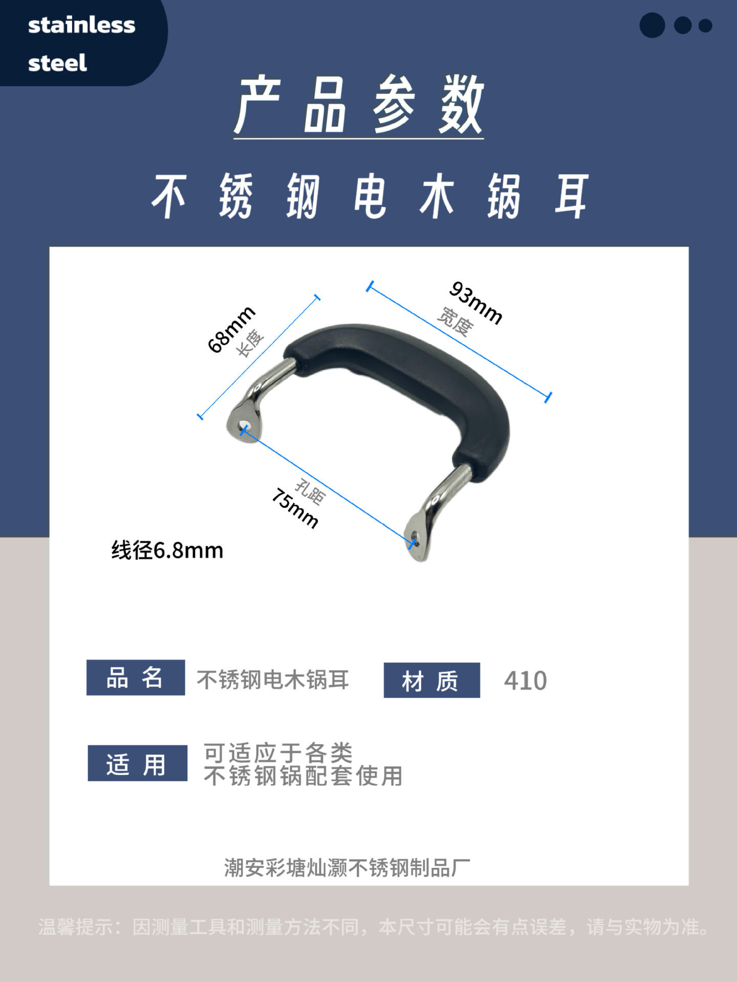 Stainless Steel Universal Soup Pot Handle Anti-Scald Bakelite Handle Pot Handle Steamer Handle Side Handle Pot Handle Accessories