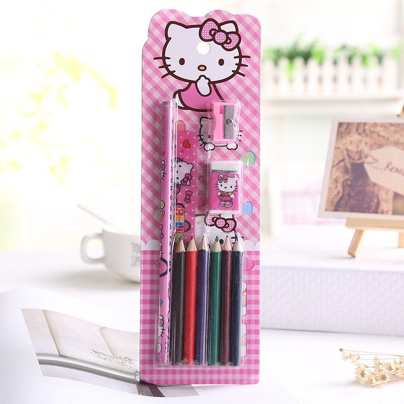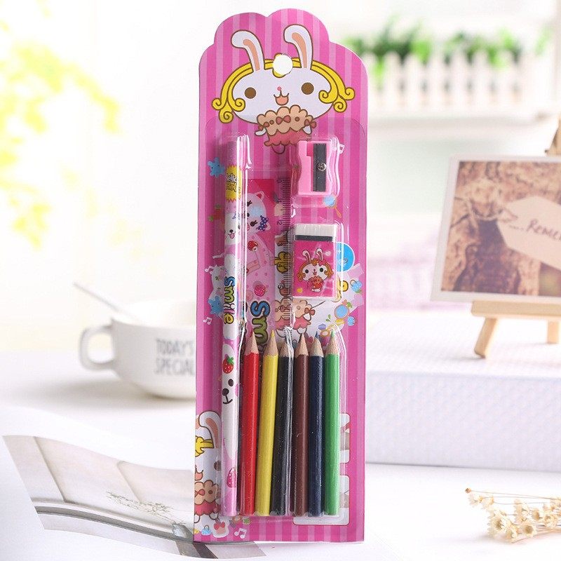 10-Piece Suction Card Stationery Learning Set Student Stationery Gift Colored Pencil Sharpener Drawing Colored Pencils