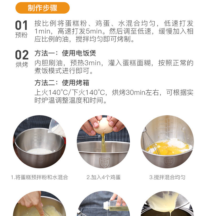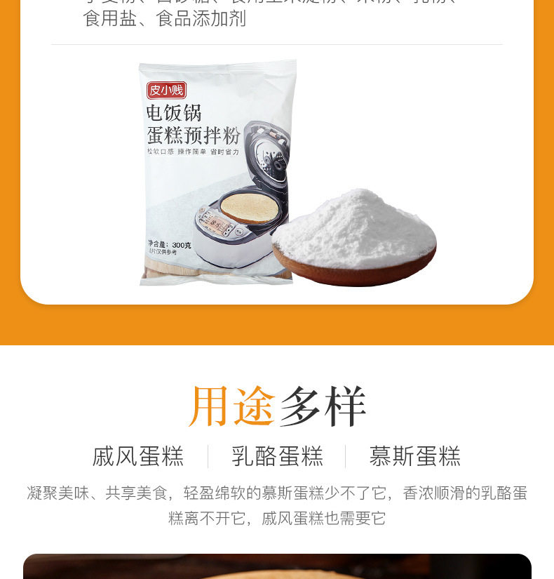Packaging specifications Egg beater 8inch,Rice cooker cake mix 300g*2 bags,Rice cooker cake mix 300g*3 bags,Rice cooker cake mix 300g,Rice cooker cake mix 300g*5 bags,Rice cooker cake mix 300g*8 bags,Rice cooker cake mix 300g [comes with measuring cup + oil brush + demoulding knife],Rice cooker cake mix 300g*3 bags [comes with measuring cup + oil brush + demoulding knife],Rice cooker cake mix 300g*5 bags [comes with measuring cup + oil brush + demoulding knife],Rice cooker cake mix 300g*8 bags [comes with measuring cup + oil brush + demoulding knife],Cake mix 300g*3 bags [sugar-free version],Cocoa flavored round biscuits 220g,Sakura flavored round biscuits 220g,Mixed three-dimensional cherry blossom type 180g,Caramel flavored square cookies 220g,Semi-automatic egg beater,Electric egg whisk,100g sliced ​​almonds,500g sliced ​​almonds,100g dried cranberries,100g pumpkin seeds,100 grams of raisins,100g light cream powder,Nestle light cream 250ml,Matcha powder 100g,100g cocoa powder,500g honey beans,Sugar natto 500g,500g colorful beans,100g coconut flakes,100g black sesame seeds,Golden meat powder floss 250g,50 cake cups [random style],Fruity powder 20g*5 packs [mixed flavors],Fruity powder 20g*8 packs [mixed flavors],Matcha flavor 100g,Strawberry flavor 100g,Mango flavor 100g,100 grams of dragon fruit,Cocoa flavor 100g,Purple sweet potato flavor 100g,100 piping bags,Measuring cup 300ml [random color],Cake demoulding knife [random color],Silicone spatula [random color],6 decorating tips,Small oil brush [random color],Medium tpe gloves 100 pieces,Corn oil 250ml,Lemon juice 210ml