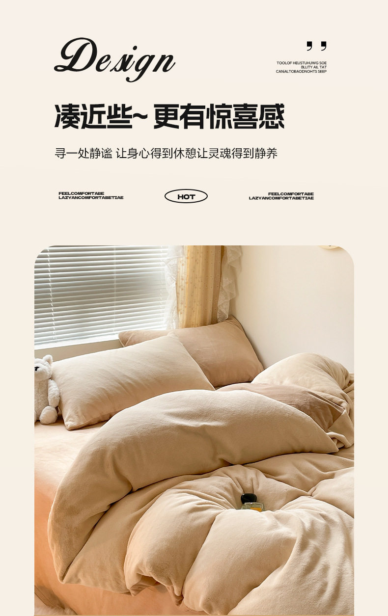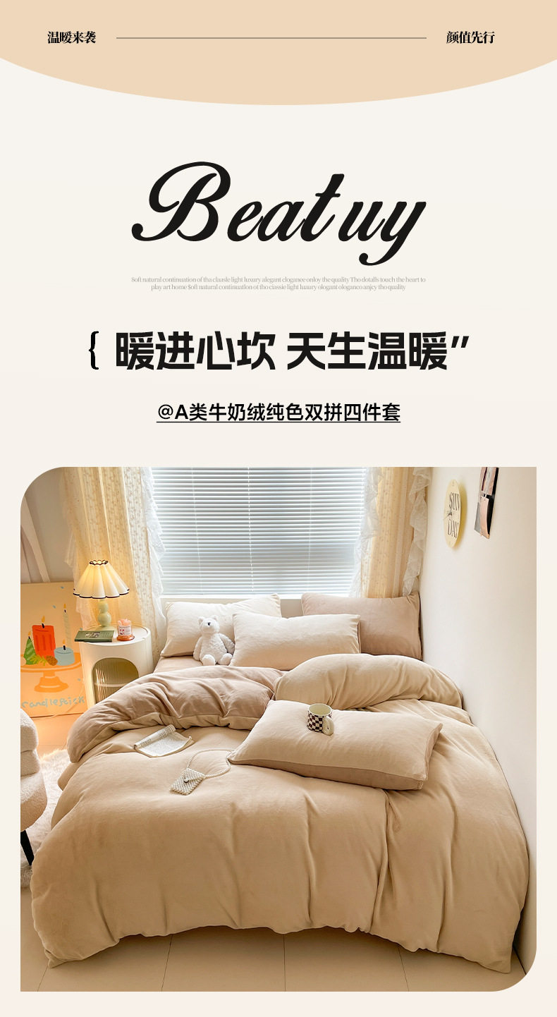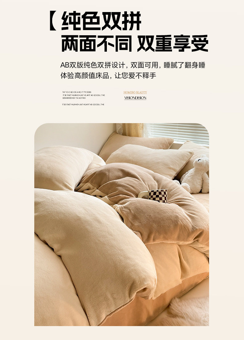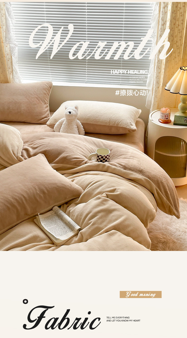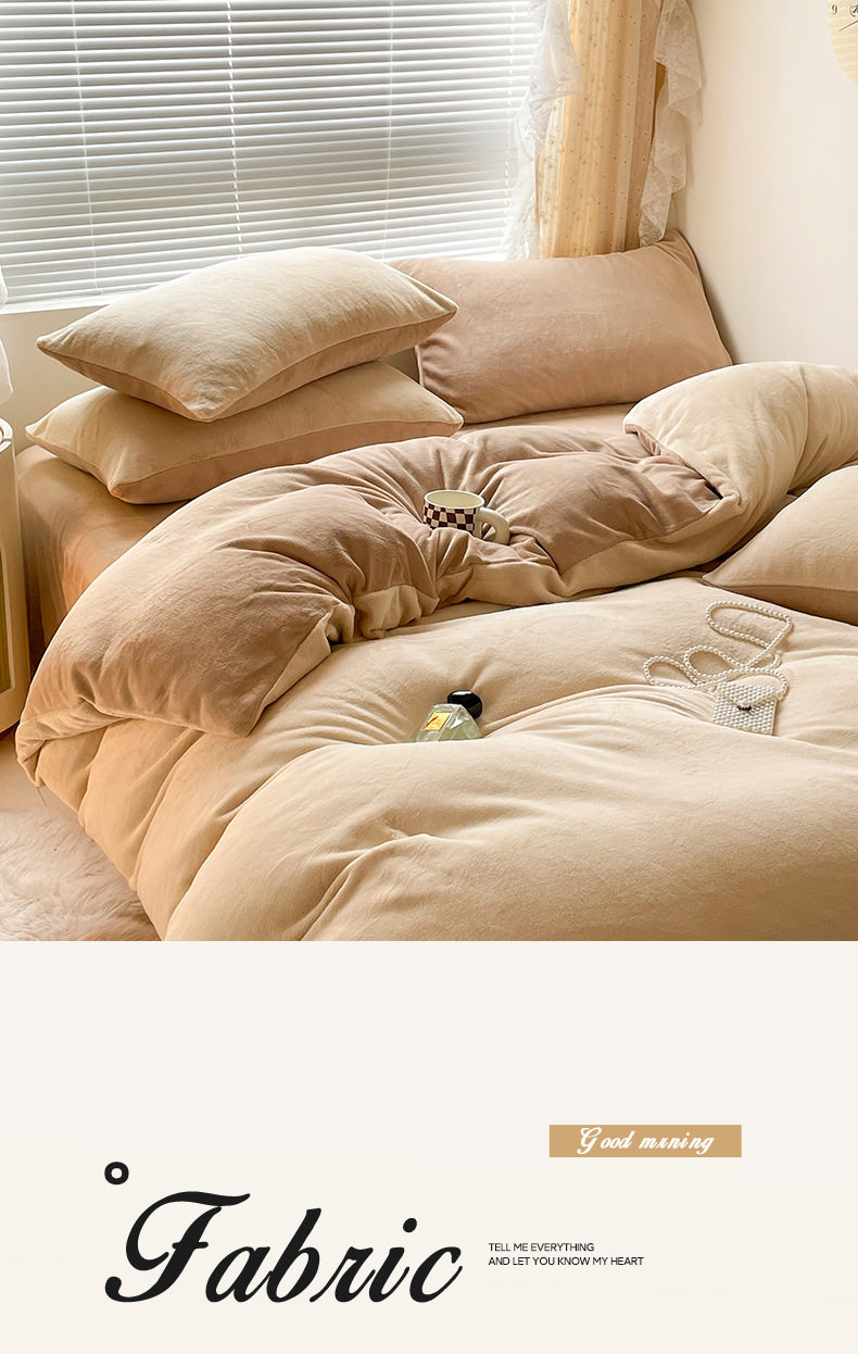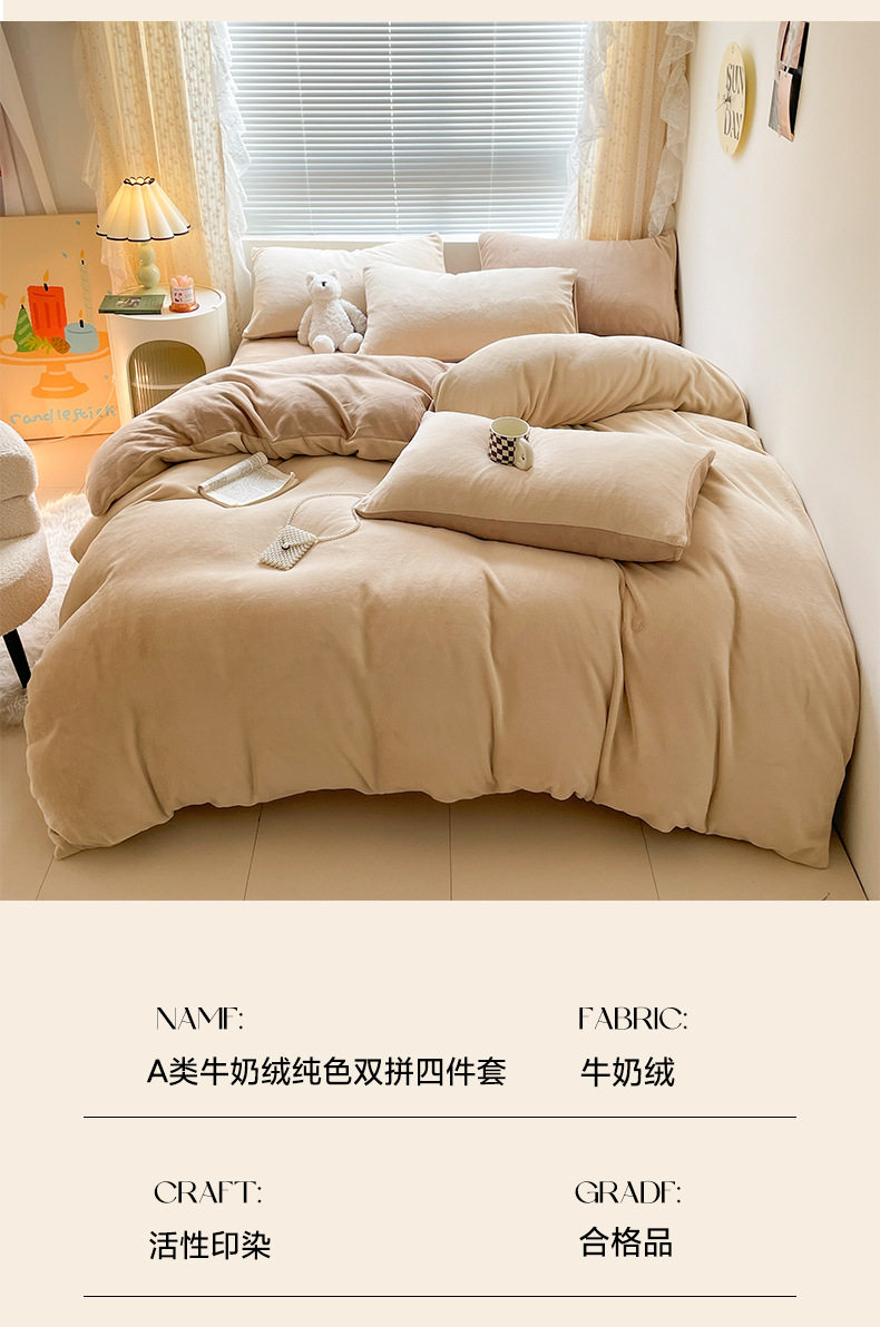 Class a Maternal and Infant Grade Winter Solid Color Thickened Milk Velvet Four-Piece Set Winter Coral Plush Bedding Three-Piece Set