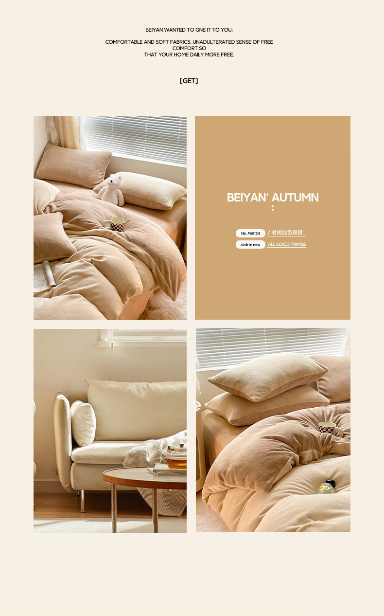 | Flower type | Solid color double spelled milk velvet set with sauce, rice, apricot + tea and coffee,Solid color double spelled milk velvet set with olive green + dark gray,Solid color double spelled milk velvet set with sauce, off-white + beige gray,Solid color double spelled milk velvet set with sauce, off-white + light blue,Solid color double spelled milk velvet set with sauce, off-white + peach powder,Solid color double spelled milk velvet set with sauce and rice gray,Solid color double spelled milk velvet set with sauce, rice and apricot + milk coffee,Solid color double spelled milk velvet set with sauce custard + rice gray,Solid color double spelled milk velvet set with sauce custard + light purple,Solid color double spelled milk velvet set with sauce custard + peach powder,Solid color double spelled milk velvet set with sauce milk coffee + dark gray,Solid color double spelled milk velvet set with sauce light blue,Solid color double spelled milk velvet set with sauce light blue + cream yellow,Solid color double spelled milk velvet set with sauce light blue + peach pink,Solid color double spelled milk velvet set with sauce dark gray,Solid color double spelled milk velvet set with peach powder + rice gray,Solid color double spelled milk velvet set with peach powder + light purple,Solid color double spelled milk velvet set with sauce bud green,Solid color double spelled milk velvet set with sauce bud green + custard yellow |