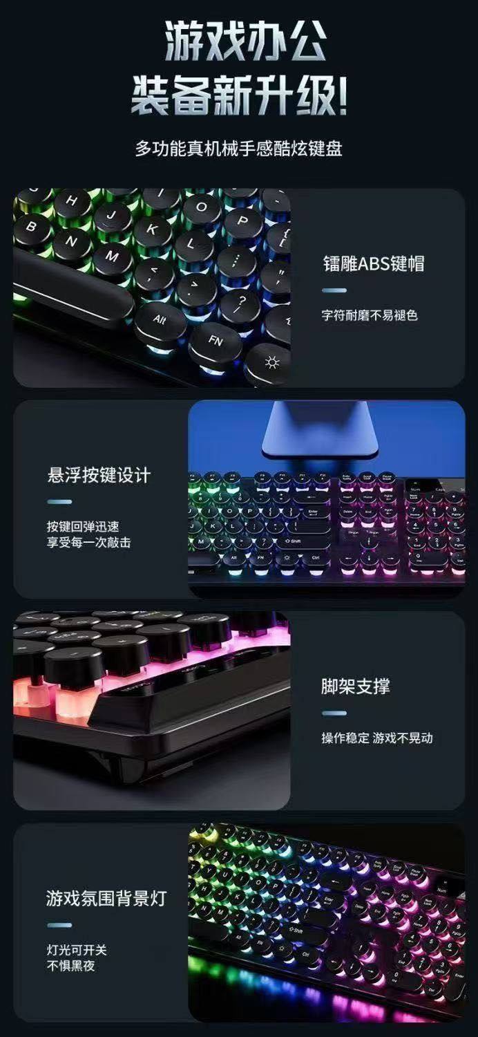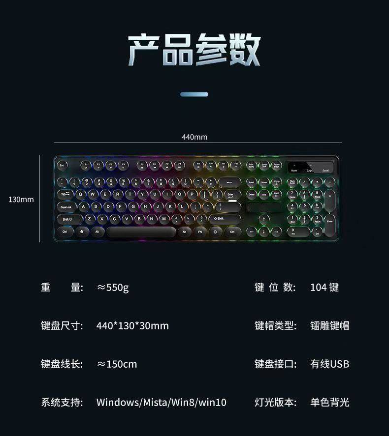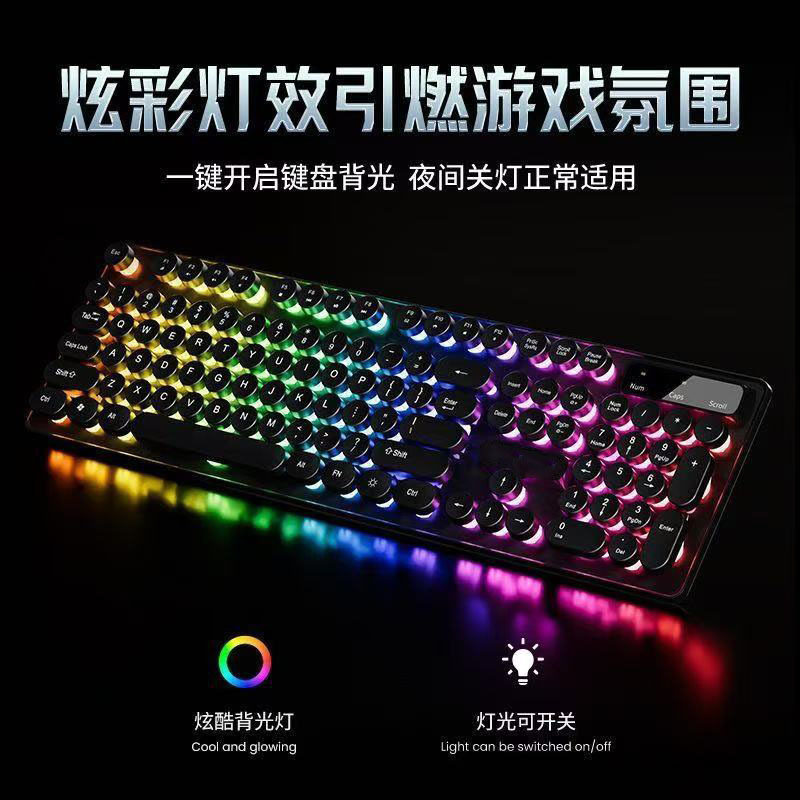 | Color | [single keyboard] black light,Single keyboard] black matte-low version,[single keyboard] white color light-retro garden key,[single keyboard] black color light-retro garden key,[single keyboard] white blu-ray-retro garden key,[single keyboard] black blu-ray-retro garden key,[keyboard and mouse set] white color light + mouse-retro garden key,[keyboard and mouse set] black color light + mouse-retro garden key,[keyboard and mouse set] white blu-ray + mouse-retro garden key,[keyboard and mouse set] black blu-ray + mouse-retro garden key,[three-piece package] white colored light + mouse + headphones - retro garden key,[three-piece pack] black color light + mouse + headphones - retro garden key,[three-piece package] white blu-ray + mouse + headphones - retro garden key,[three-piece package] black blu-ray + mouse + headphones - retro garden key |