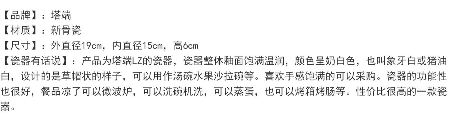 | Color | The quality is very good and is practical for both restaurant and home use! !,The following↓↓↓can be used in ovens, microwave ovens, dishwashers, and disinfection cabinets↓,19cmx6cm soup bowl [capacity 356ml],3 soup bowls [19cmx6cm soup bowl],22.3cmx6.5cm soup bowl [capacity 545ml],24.2cmx7.3cm soup bowl [capacity 728cm],Three sizes [1 for each style] |