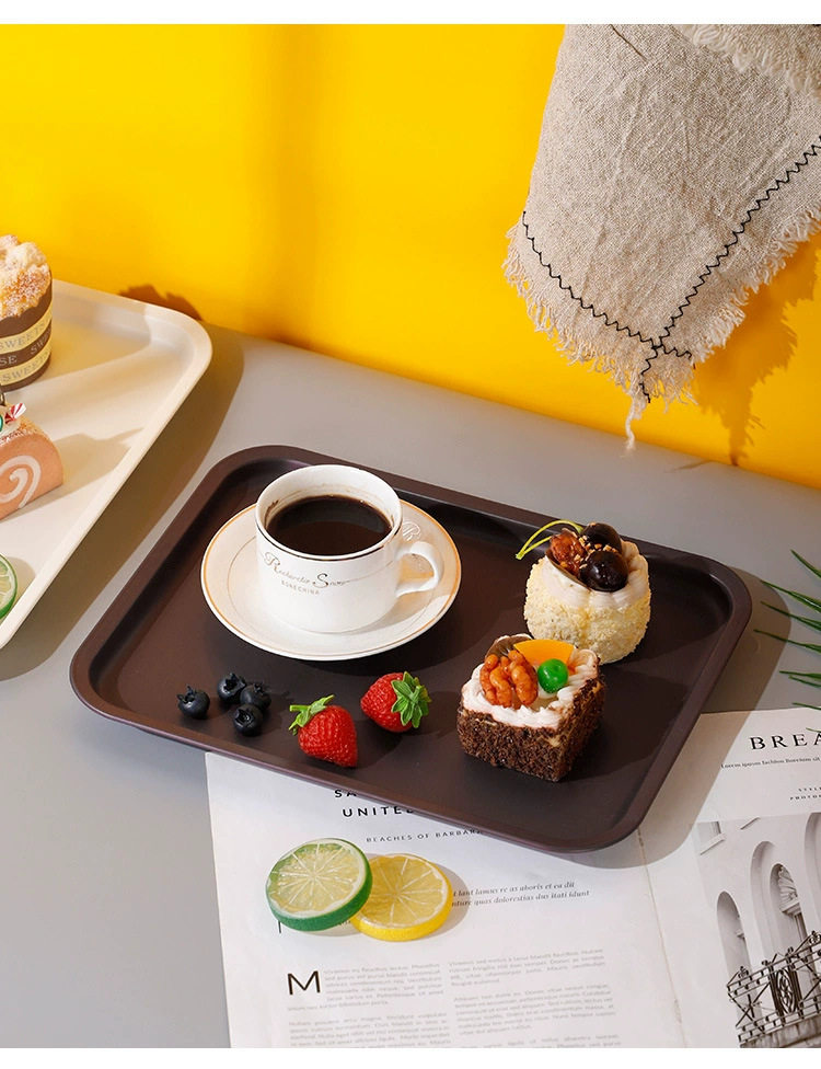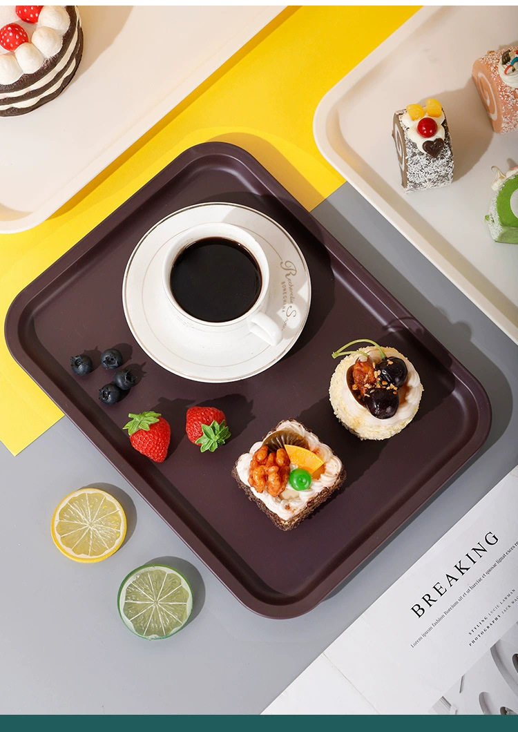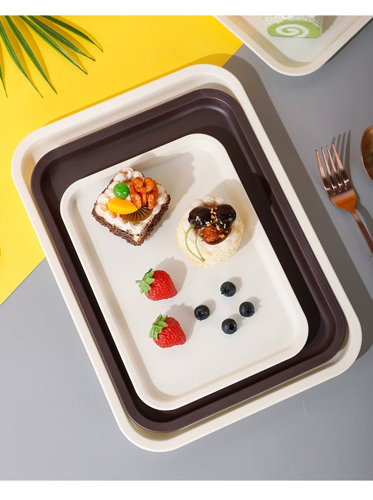 Hotel Restaurant Serving Tray Bakery Rectangular Non-Slip Fruit Pastry Flat Plastic Plate Wholesale Manufacturer