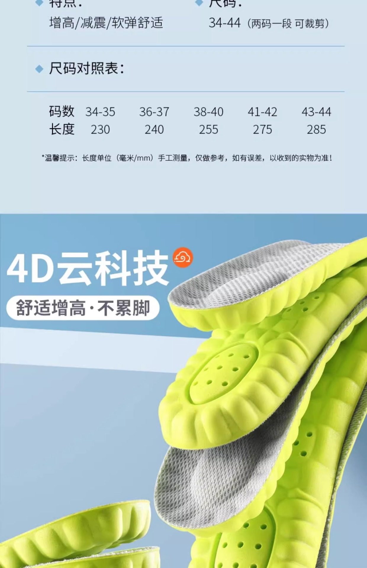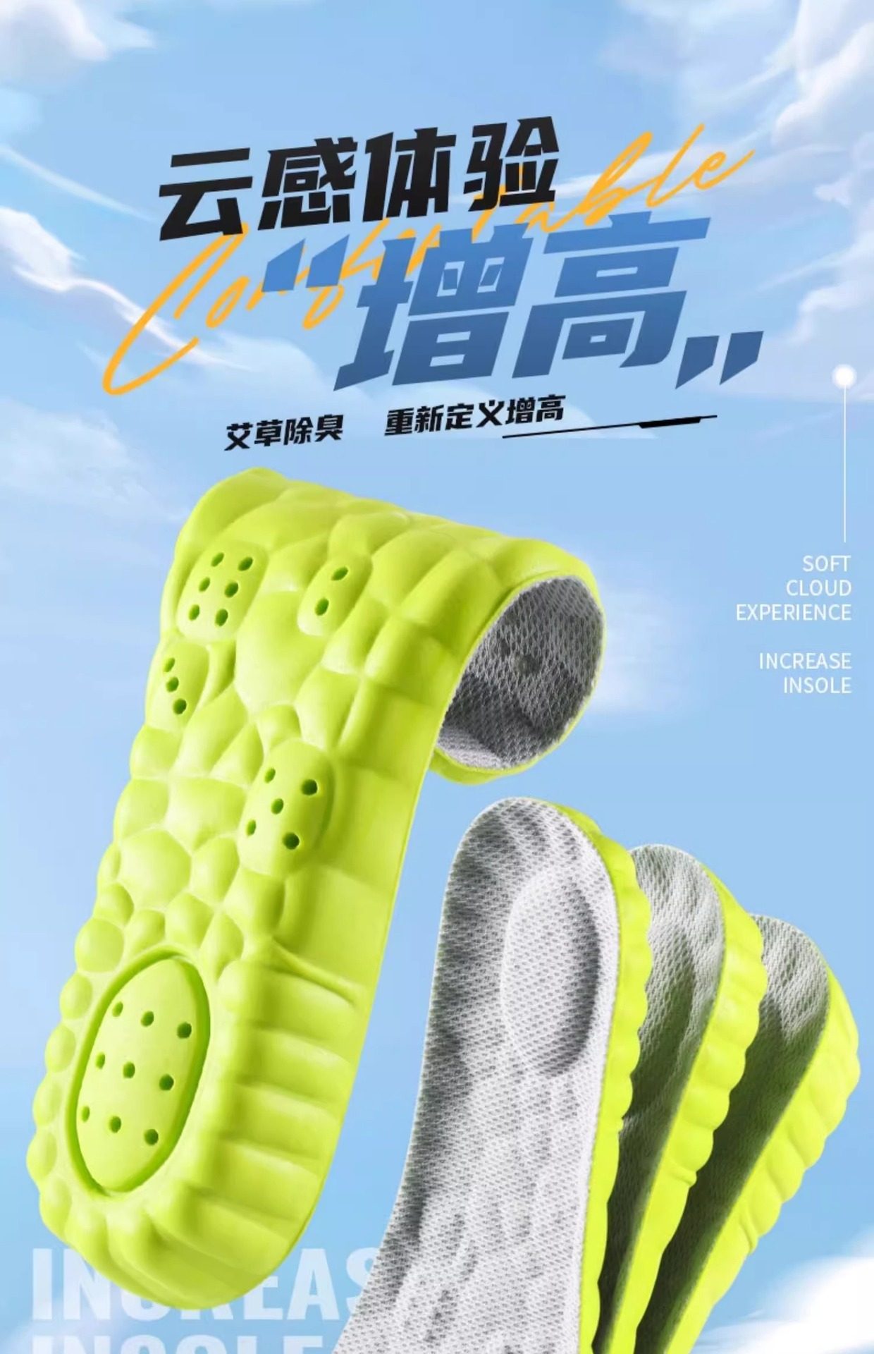 Men's Massage Insoles with a Stepping-On-Poop Feeling, Non-Slip, Height-Increasing, Women's Soft-Soled Arch Support, Shock-Absorbing, Sweat-Absorbing, Anti-Odor Boot Insoles