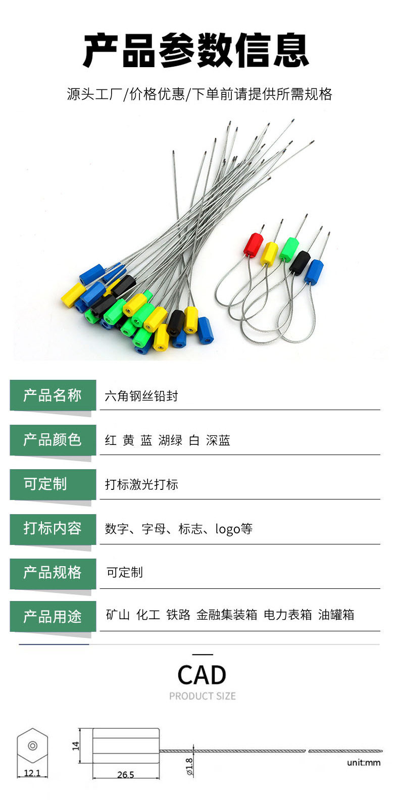 Steel Wire Seal Strip Tie for Container Logistics, Oil Tank Truck, Water and Electricity Installation, Tightening Type Hexagonal Steel Wire Seal