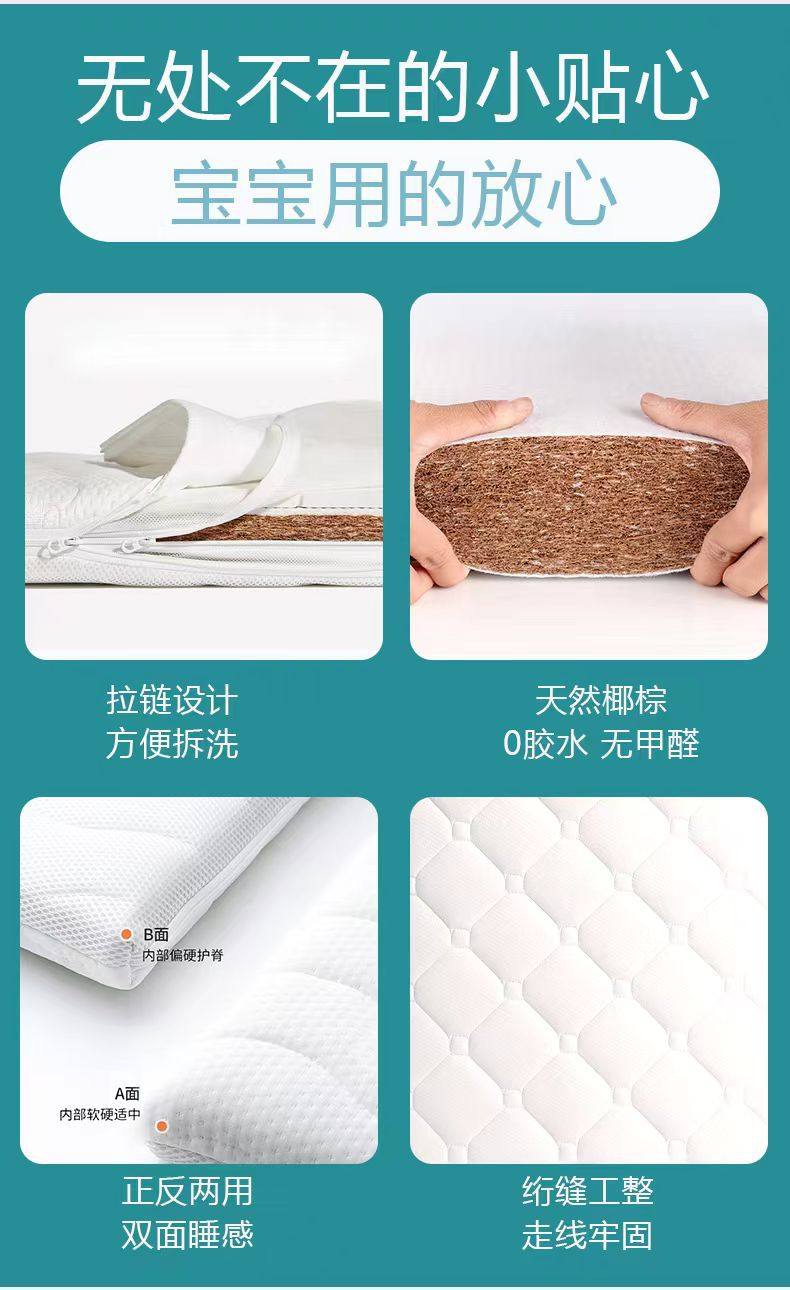 Spine Protection Baby Mattress Natural Coconut Palm Latex Mattress Children's Spliced Mattress Baby Toddler Mattress