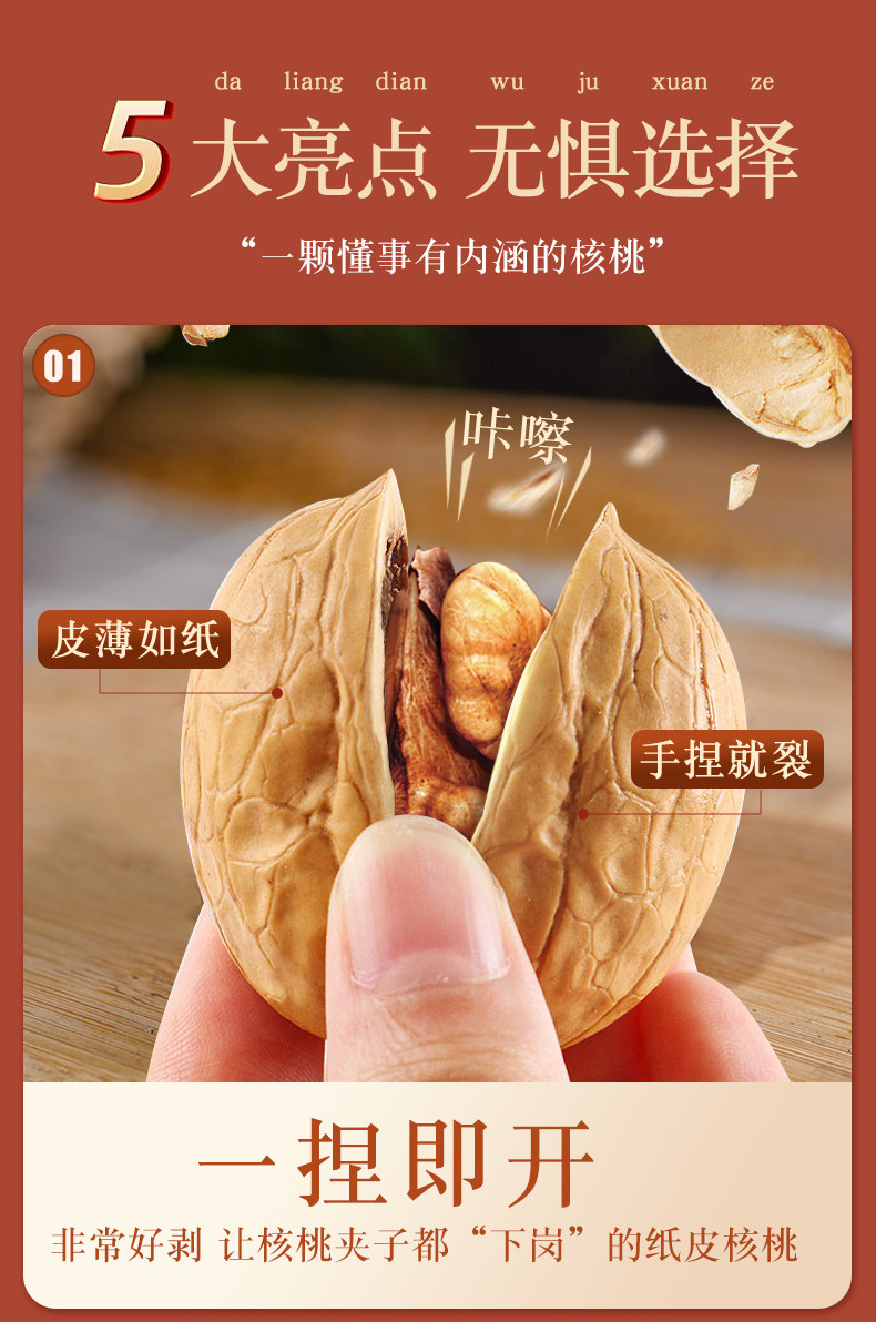 Xinjiang Paper-Skinned Walnuts for Pregnant Women, Authentic Thin-Skinned Original Flavor Without Additives, Official Flagship Store 5 Years New