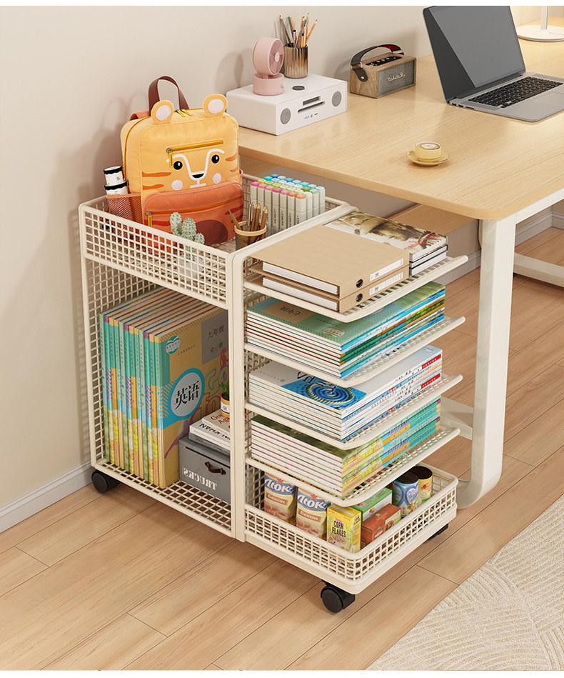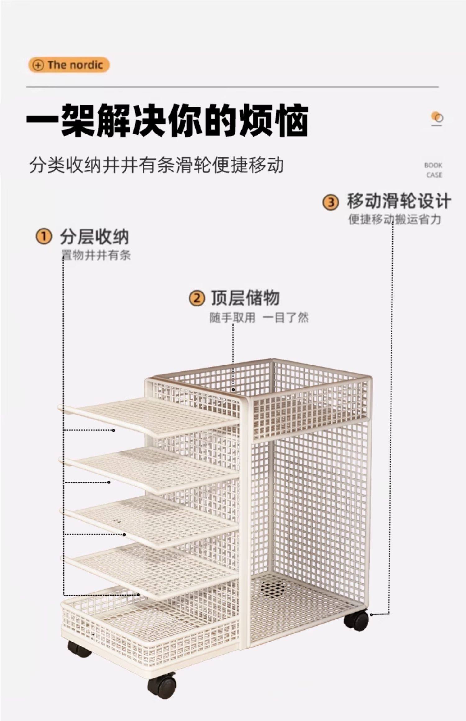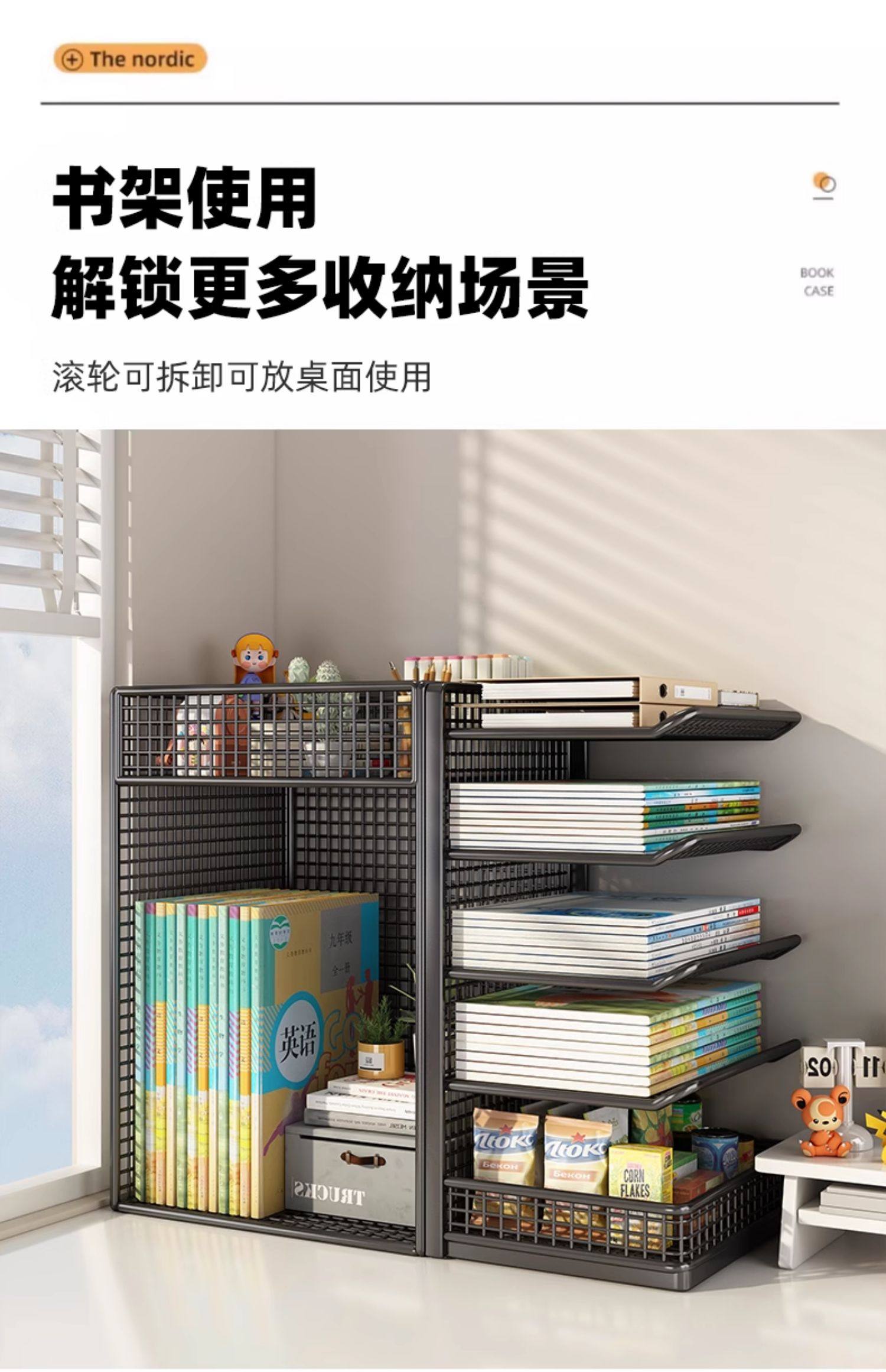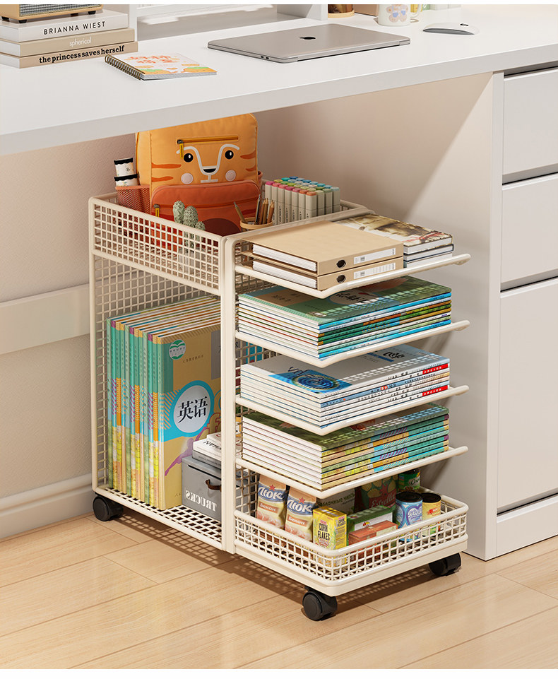 Subject Classification Storage Rack Desktop Bookshelf Desk Book Storage Wheeled Removable Book Stand Layered Rack Silk Flower
