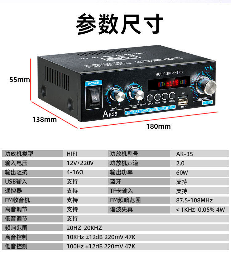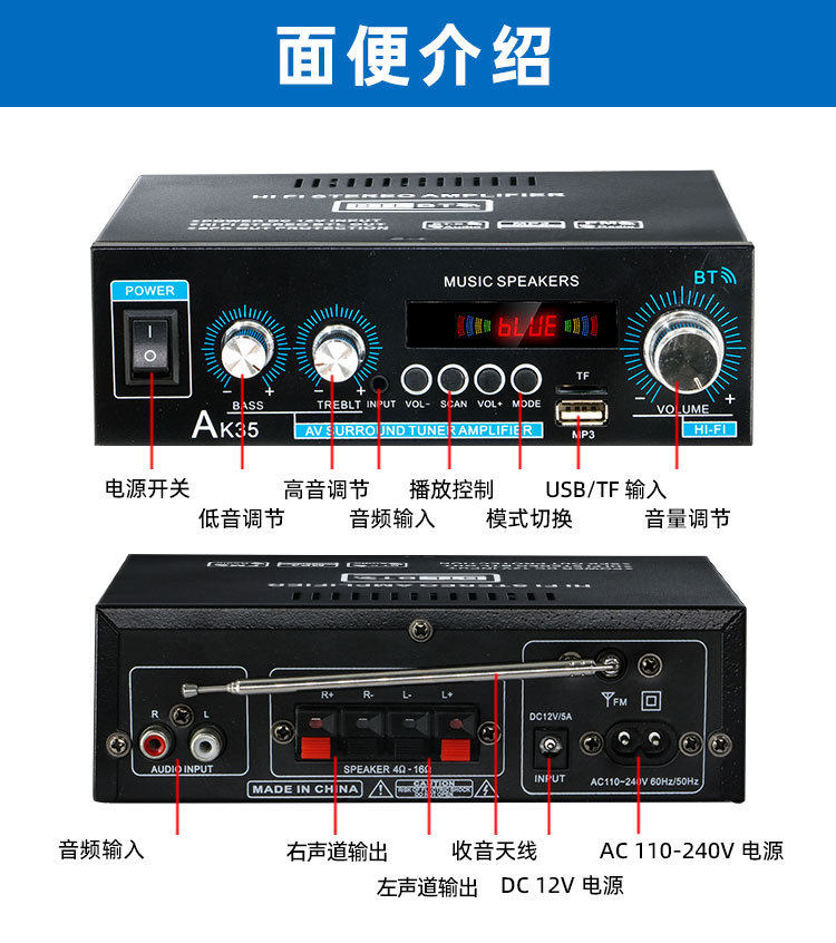 Manufacturers Wholesale Ak35 Digital Amplifier Bluetooth U Disk Amplifier Two Channel Amplifier