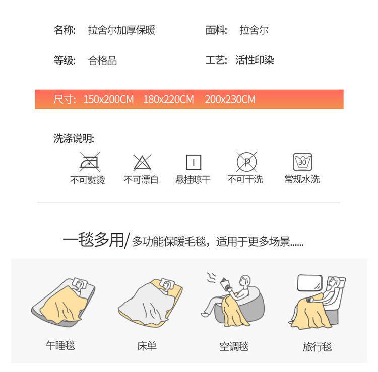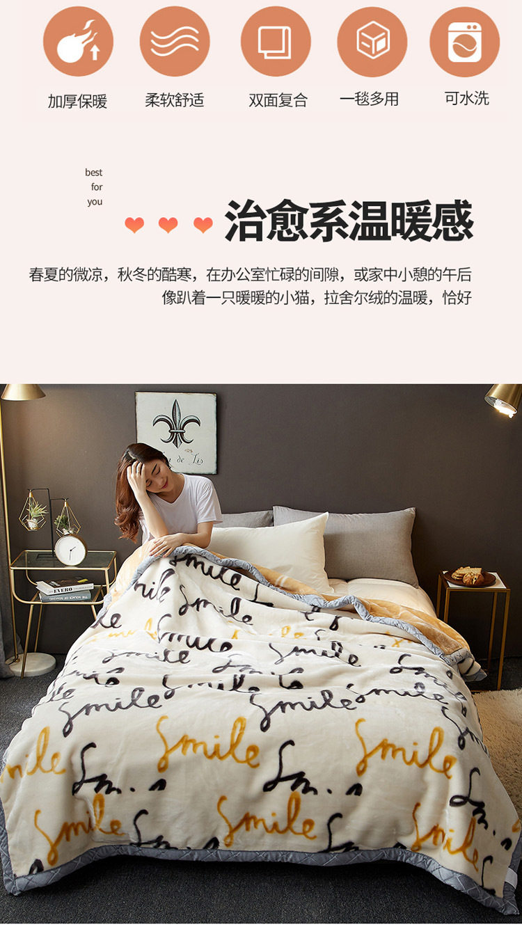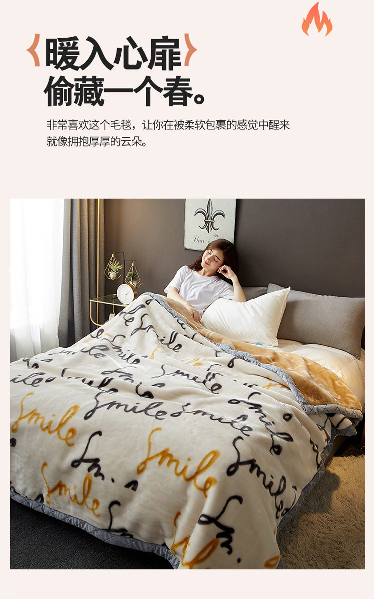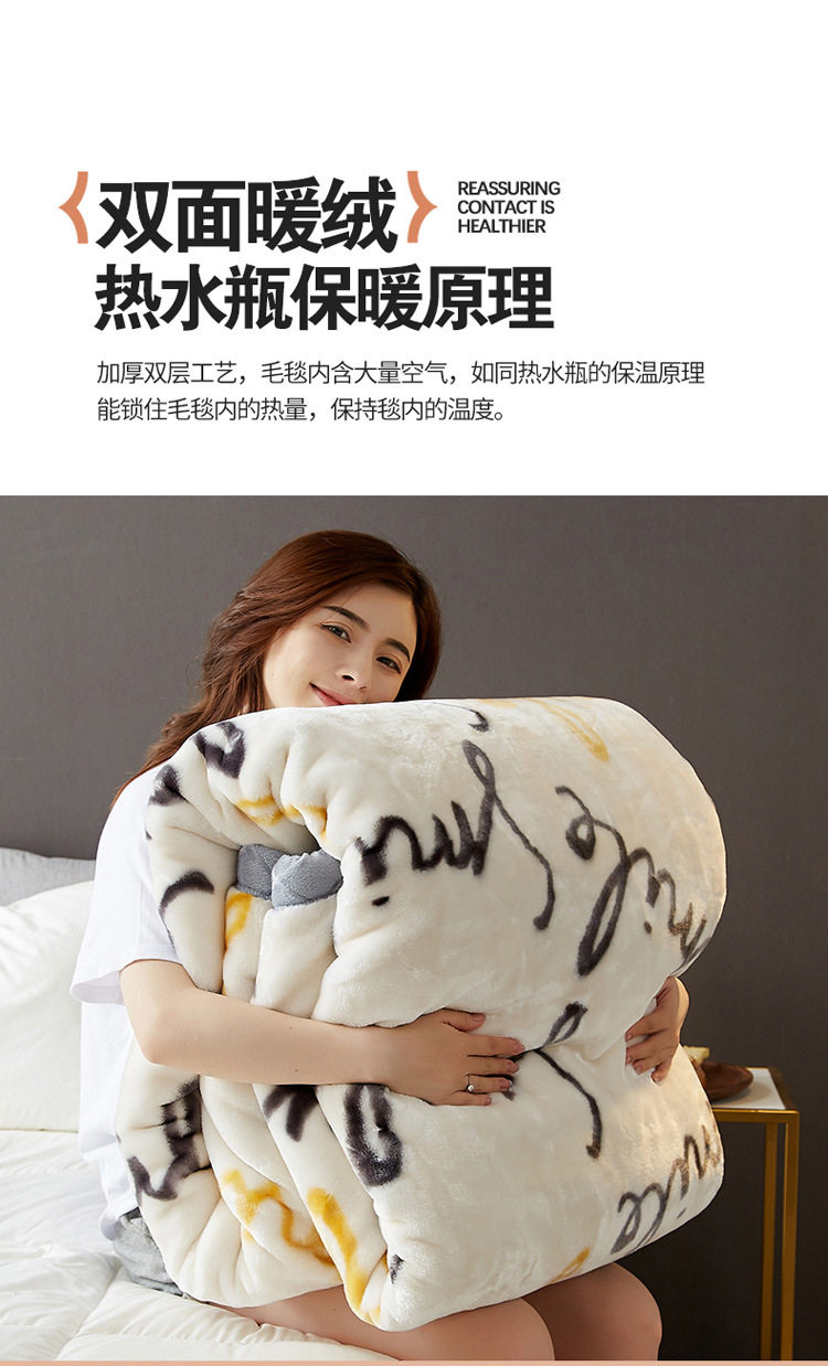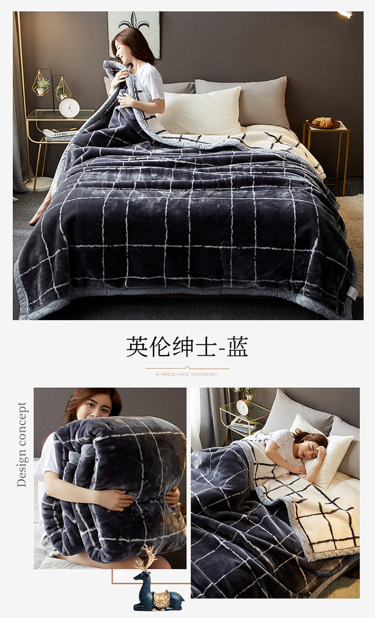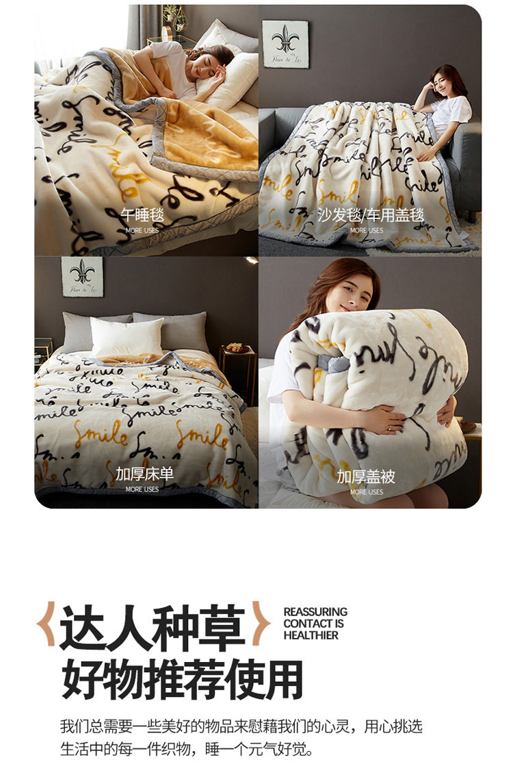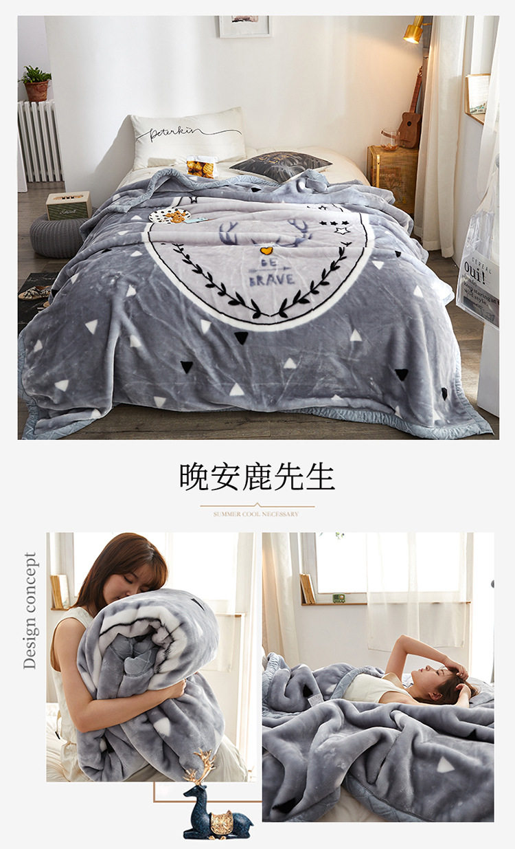 | Size specifications | 150x200cm, weight about 2kg [double-layer thickened, warm and skin-friendly],150x200cm, weight about 2.5kg [double-layer thickened, warm and skin-friendly],180x220cm, weight about 3kg [double-layer thickened, warm and skin-friendly],200x230cm, weight about 3.5kg [double-layer thickened, warm and skin-friendly] |