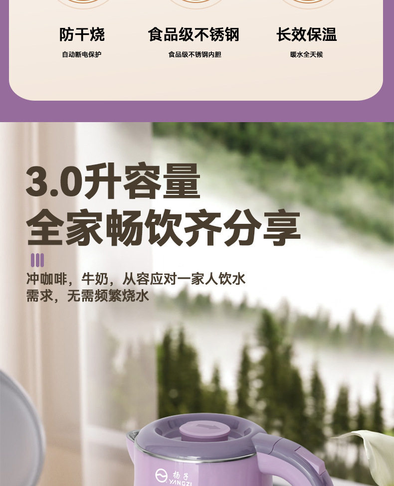 Yangzi Electric Kettle with Integrated Insulation and Constant Temperature, Made of 304 Stainless Steel, Fully Automatic, Fast Heating, and Intelligent Temperature Control