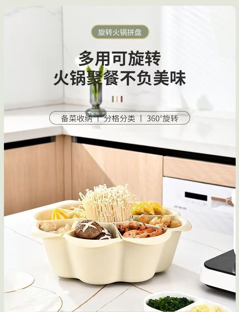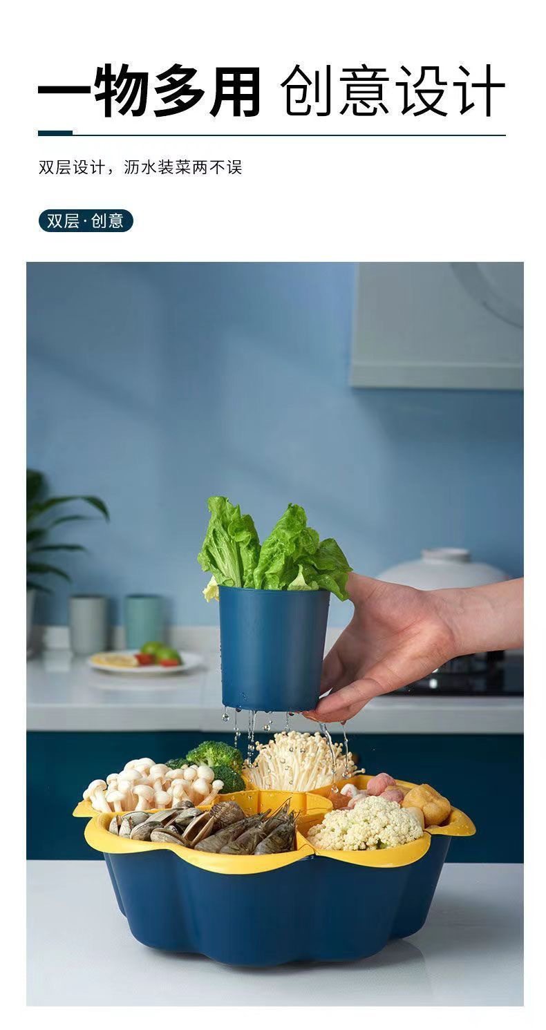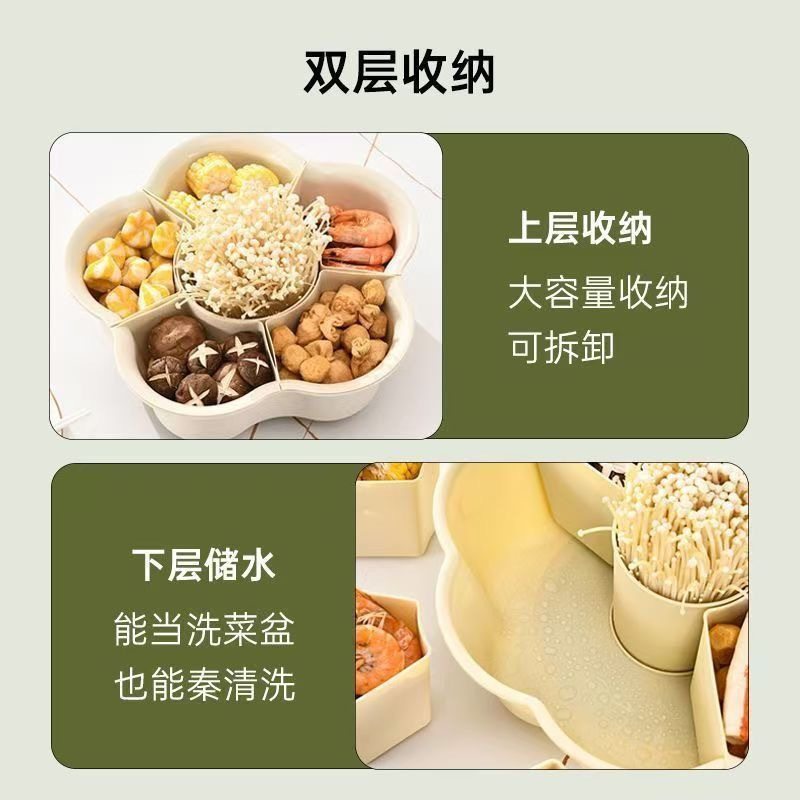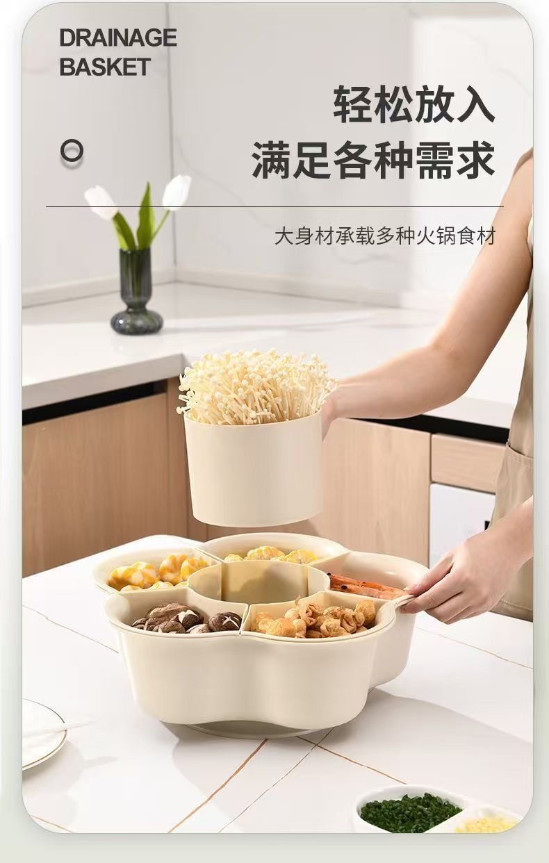 Hot Pot Platter with a Rotatable Draining Basket, Plate for Placing Vegetables, Multifunctional Compartmentalized Double-Layer Side Dish