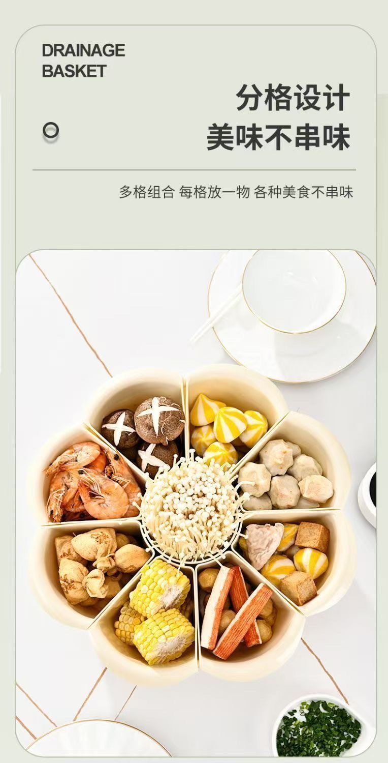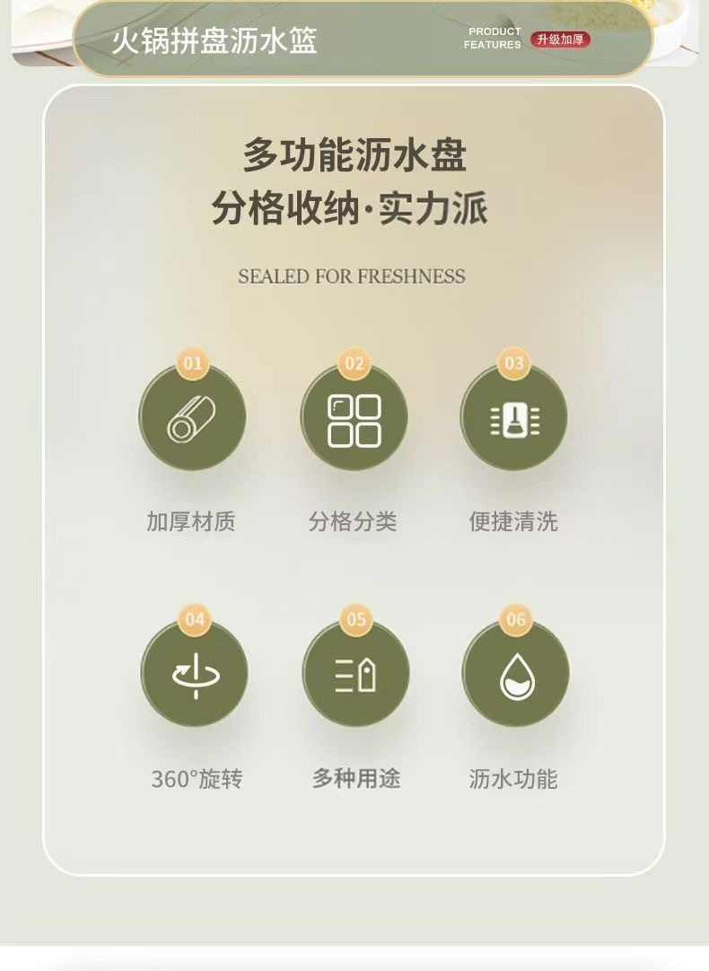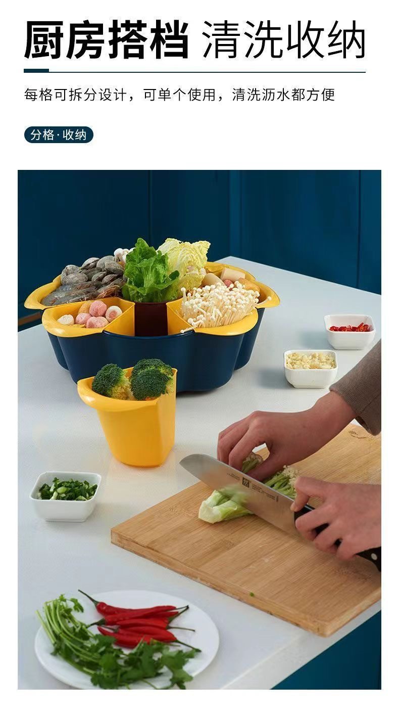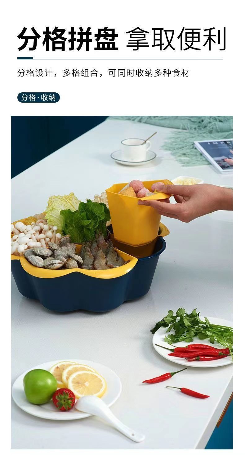 Hot Pot Platter with a Rotatable Draining Basket, Plate for Placing Vegetables, Multifunctional Compartmentalized Double-Layer Side Dish