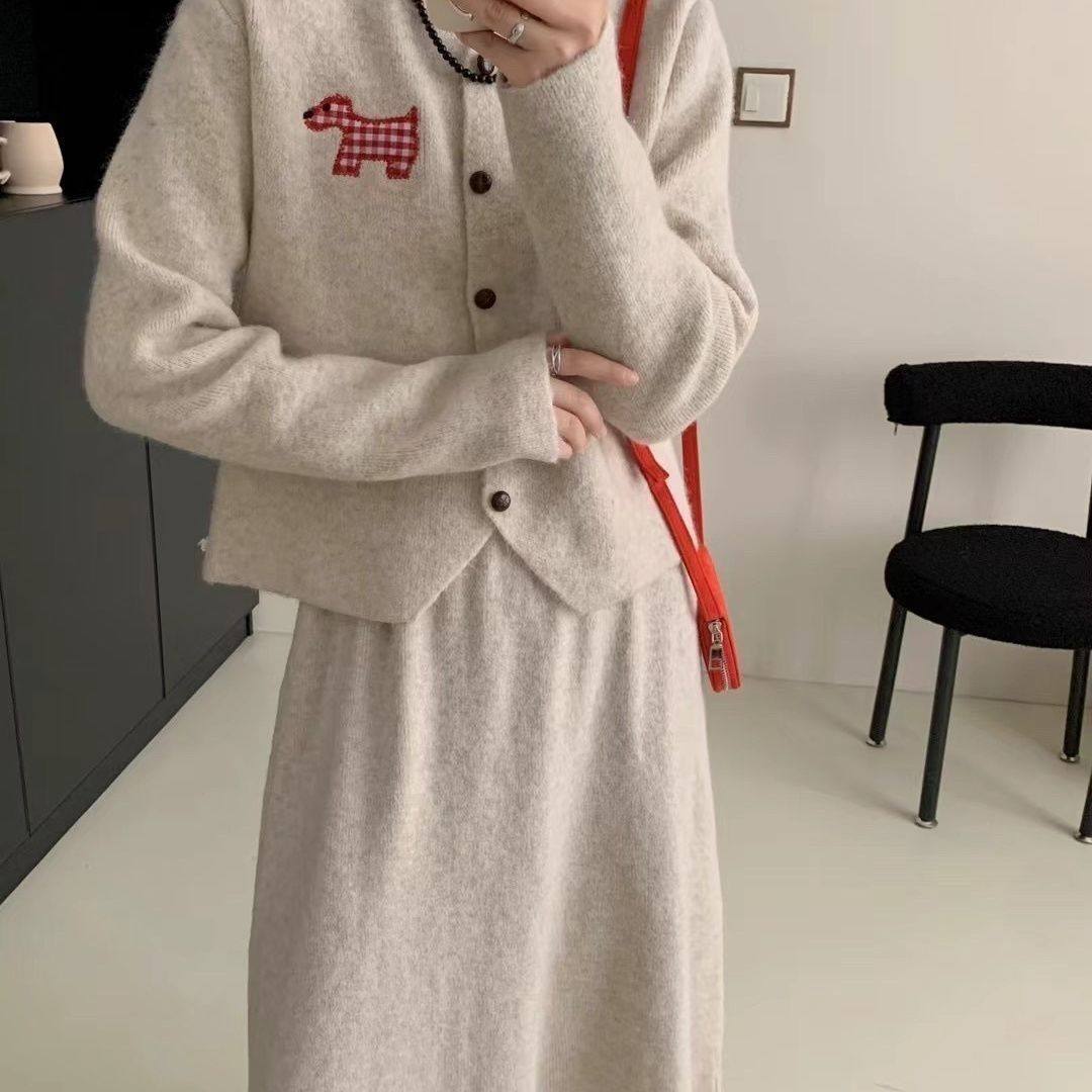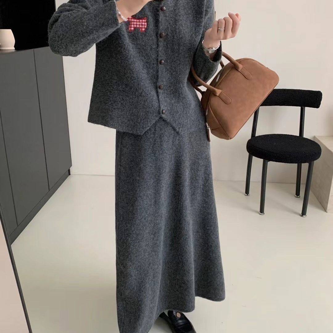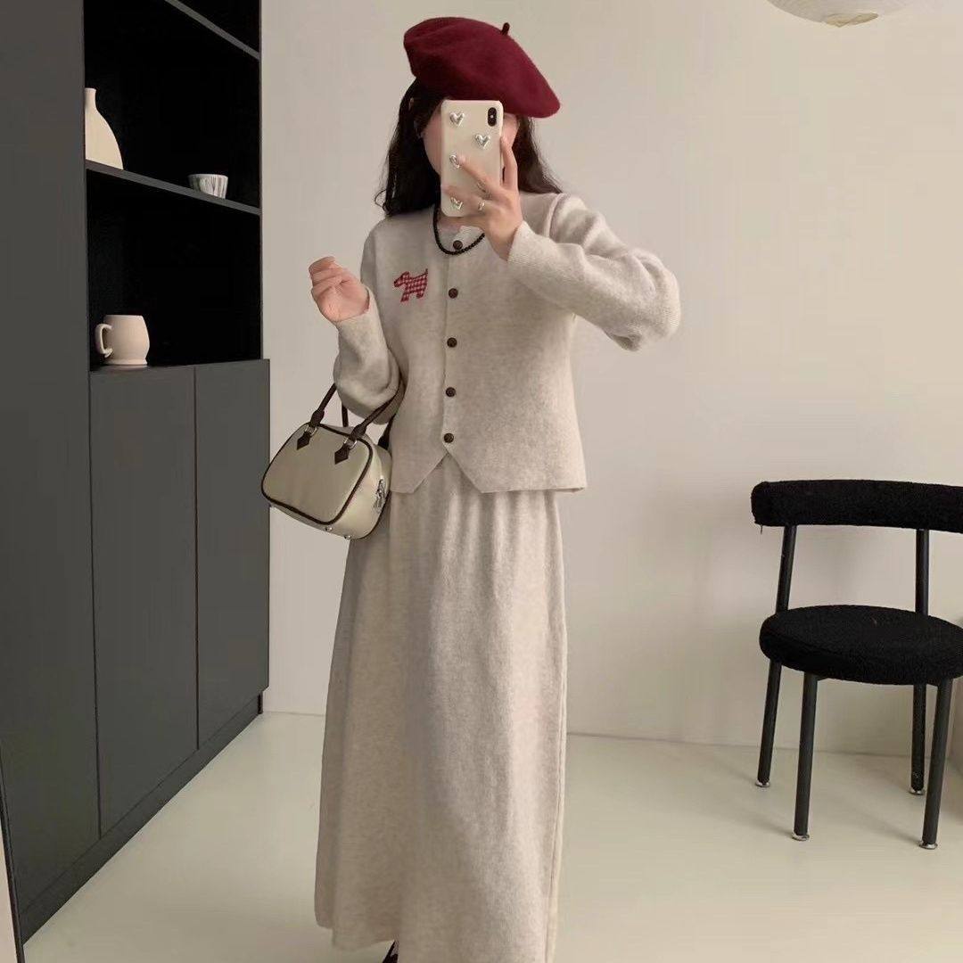 Dress Suit Women's Autumn and Winter New High-End Elegant Commuter Slim Knitted Cardigan Half-Length Skirt Two-Piece Set