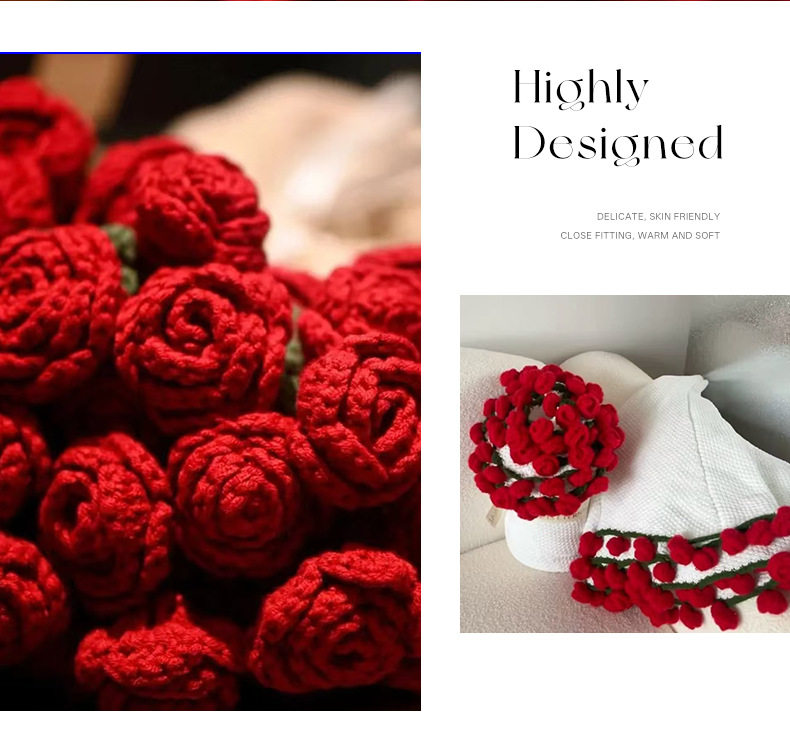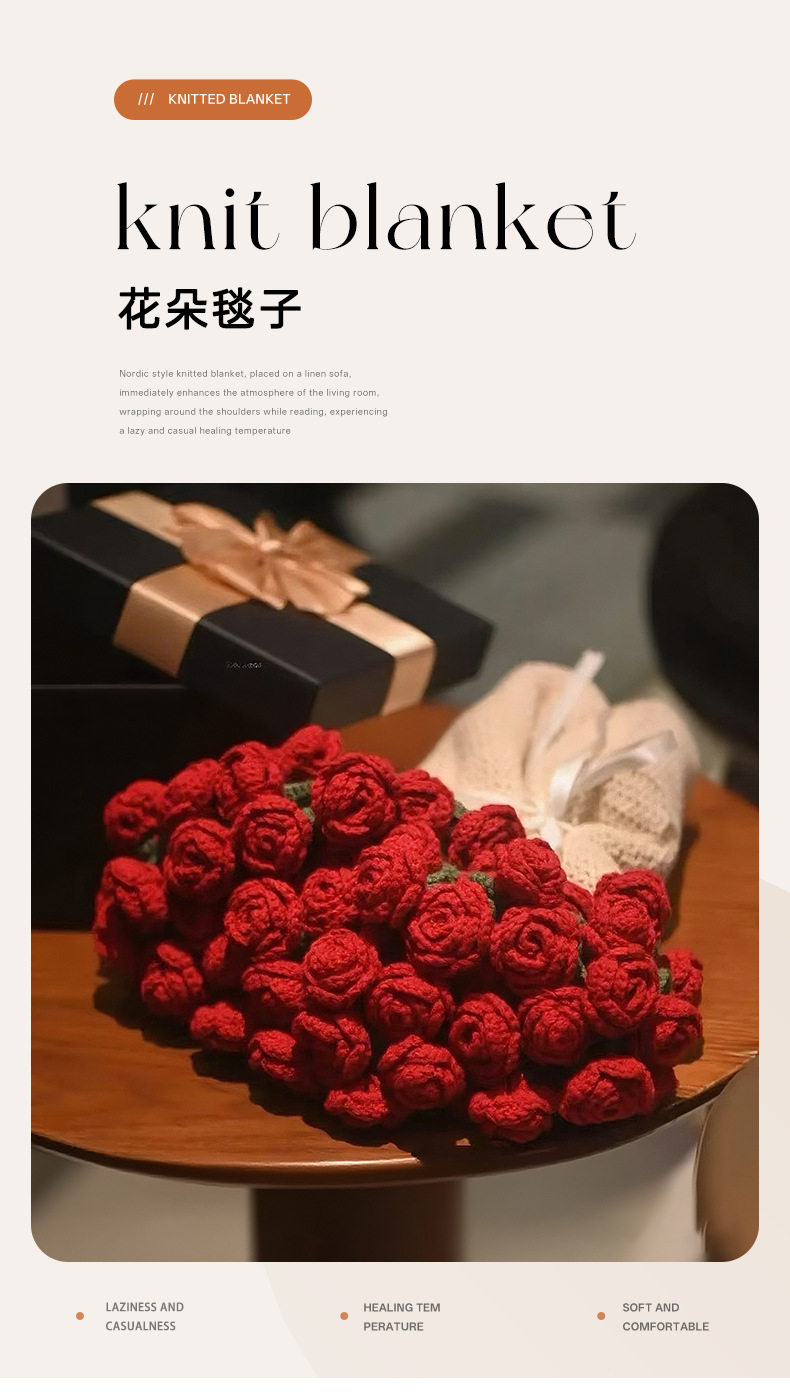 Ins Style Rose Knitted Thread Blanket, Hand-Knitted Bouquet Blanket, Gift for Best Friend, Wool Bedside Blanket Wholesale