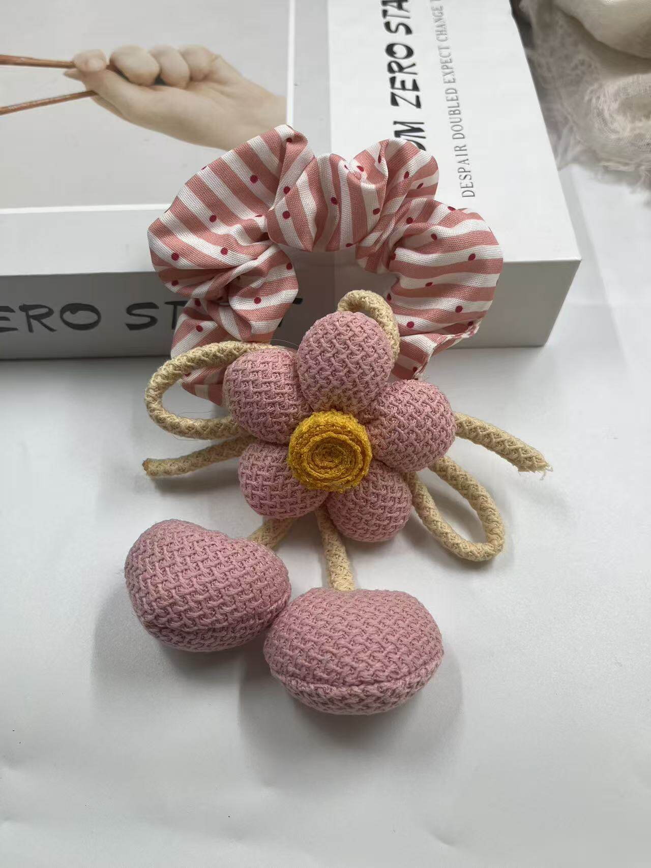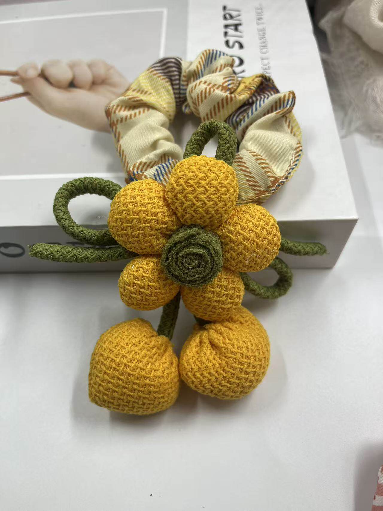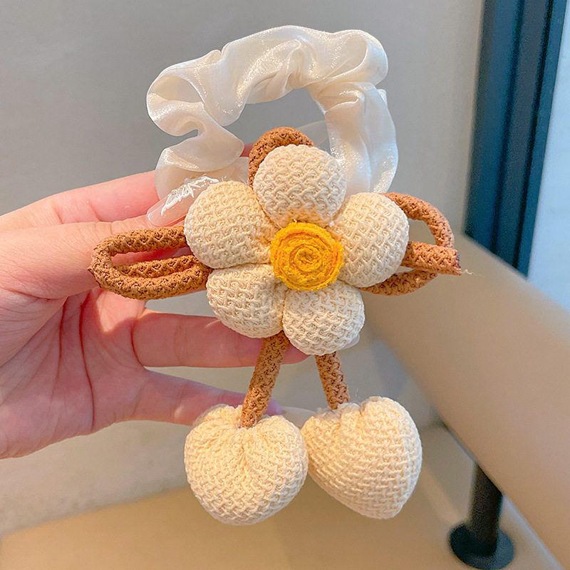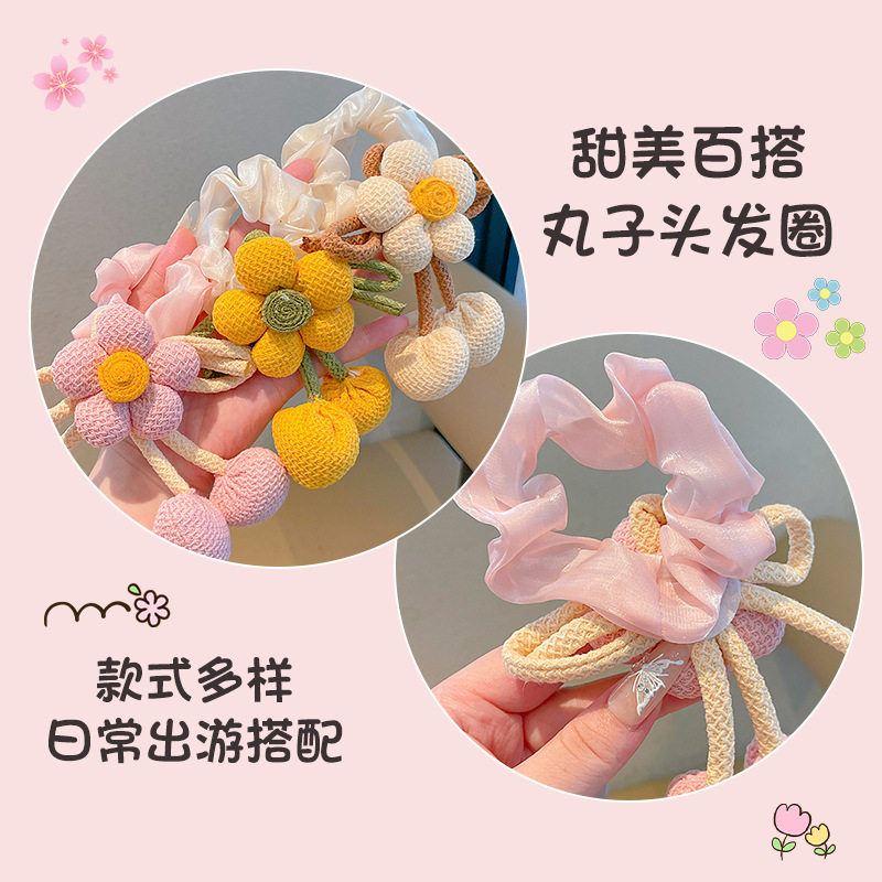 Children's Knitted Large Flower Hair Rope for Girls with Ball Head, High Appearance and High Elastic Ponytail Hair Rope