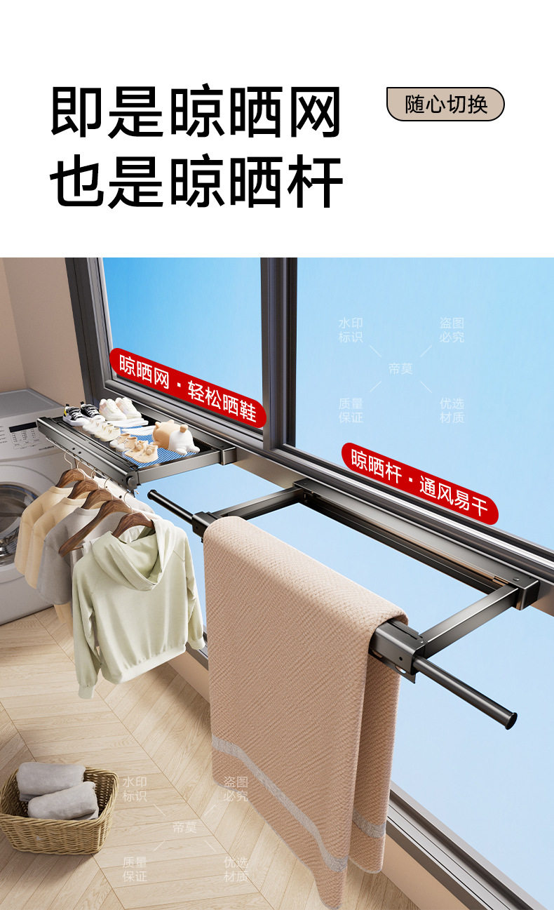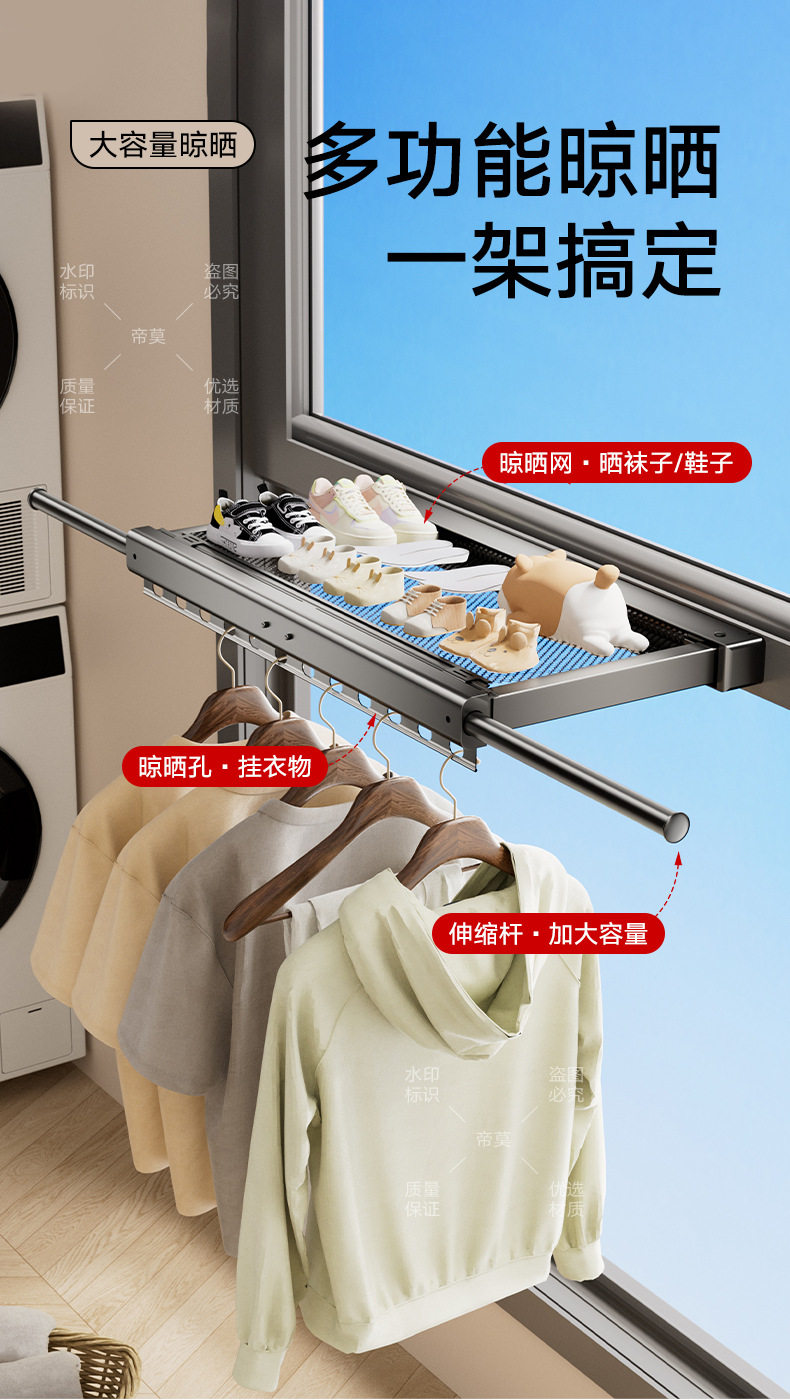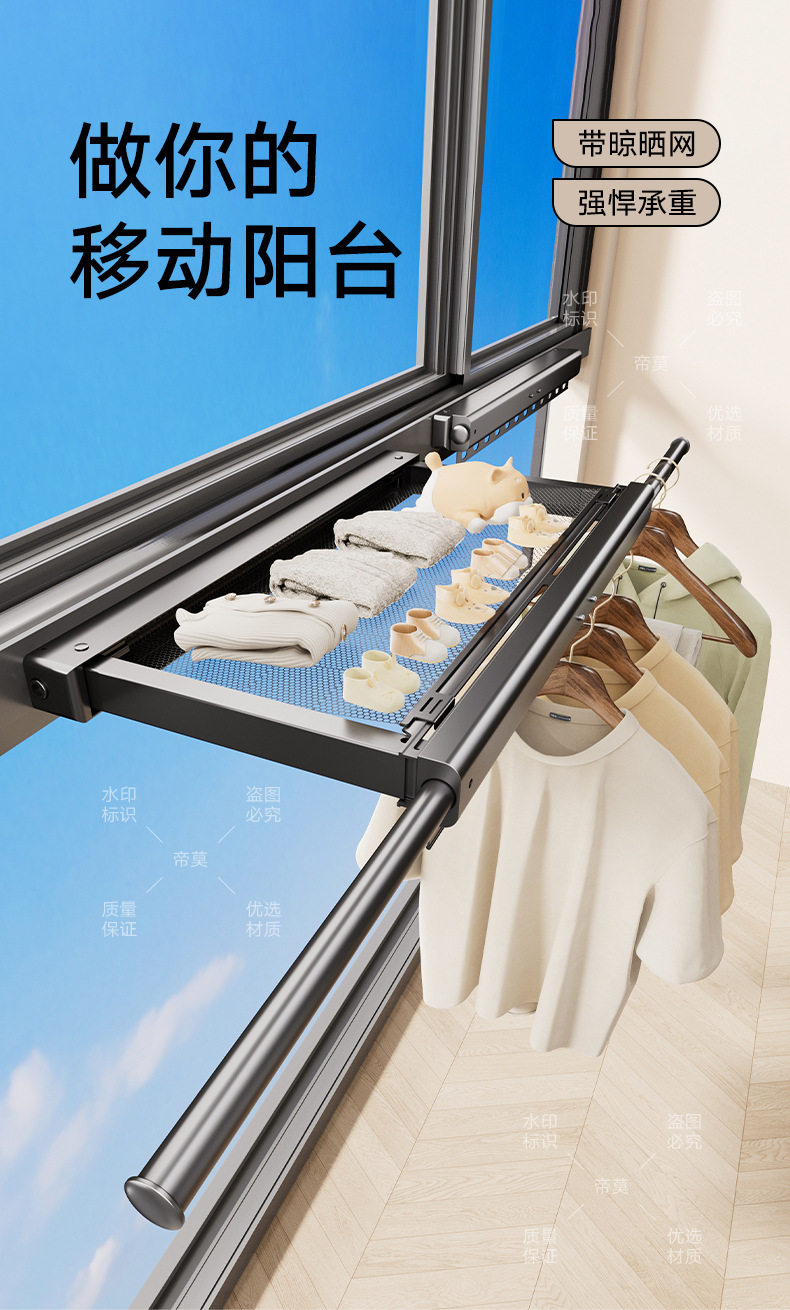 Balcony Pull-Out Folding Mesh Window Clothes Drying Rack Telescopic Invisible Storage Rack Socks Window Sill Drying Artifact Shoe Rack