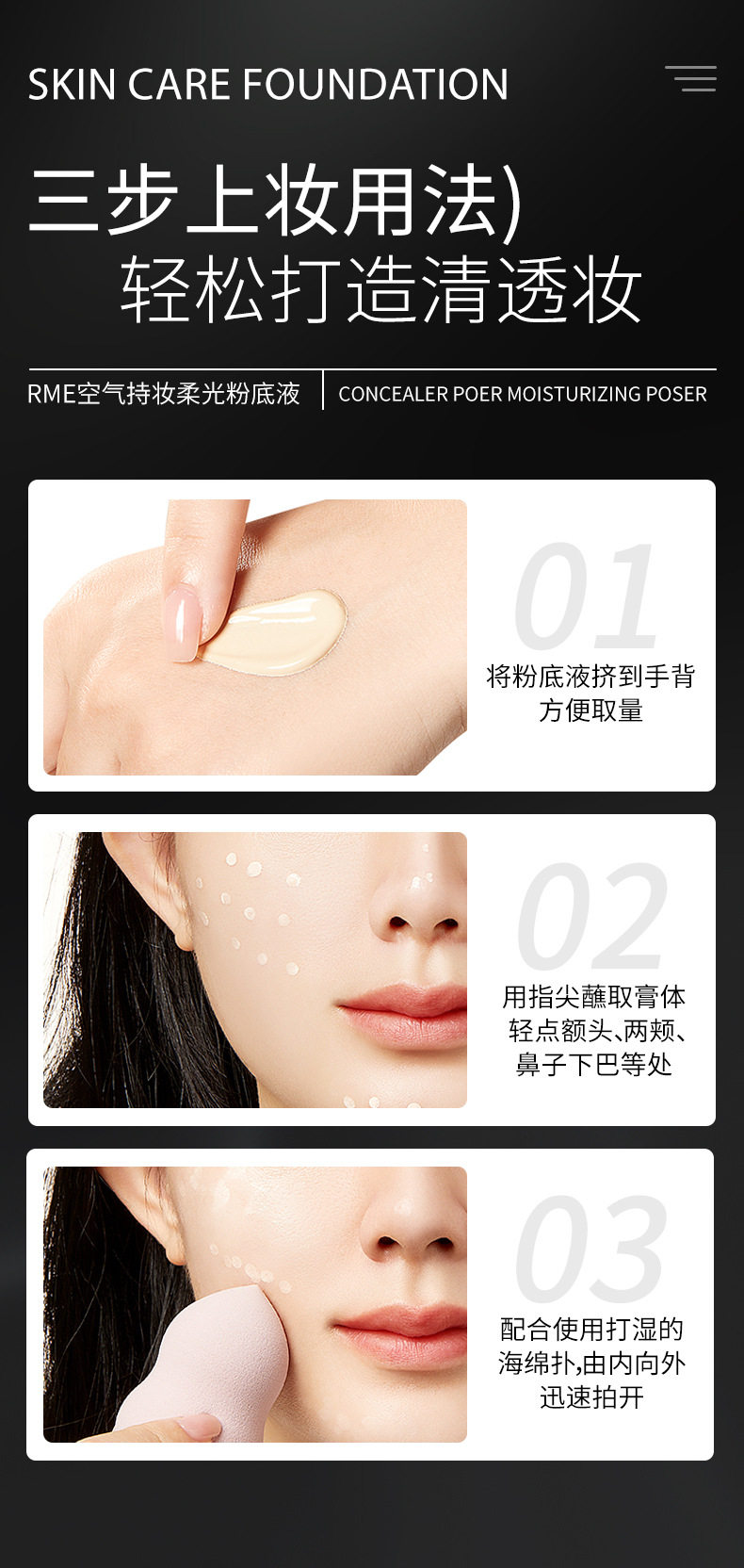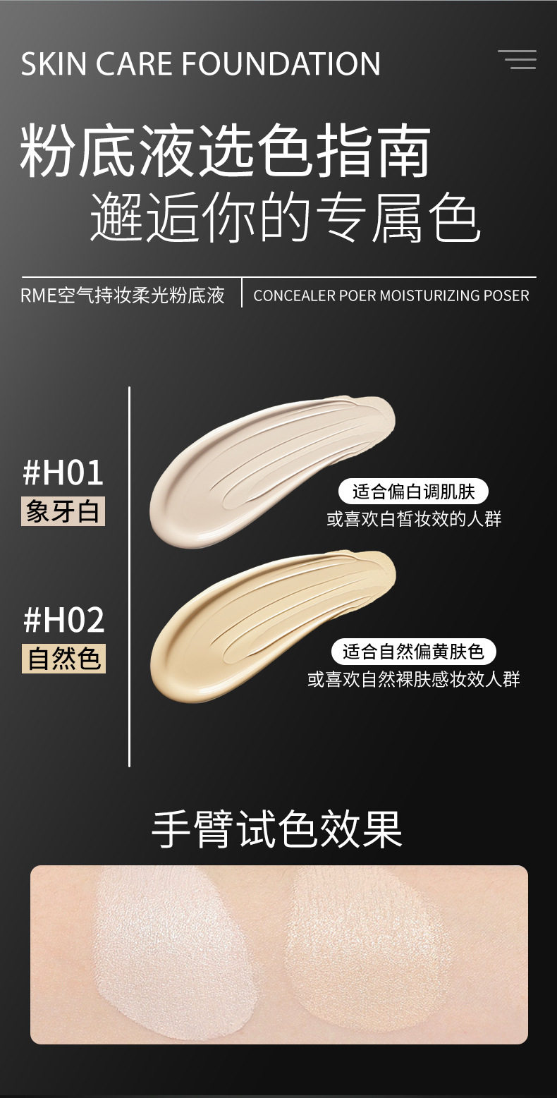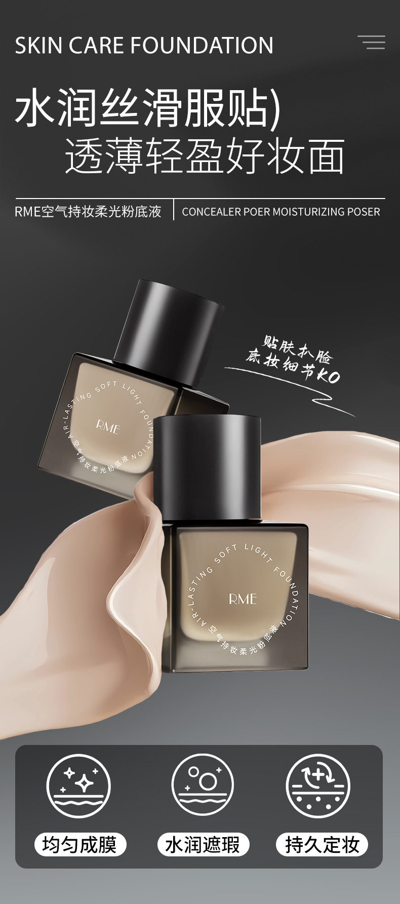 Rme Air Long-Lasting Soft Light Liquid Foundation Long-Lasting, Non-Removing, Light and Non-Sticky, Non-Sticky, Skin-Nourishing Air Liquid Foundation