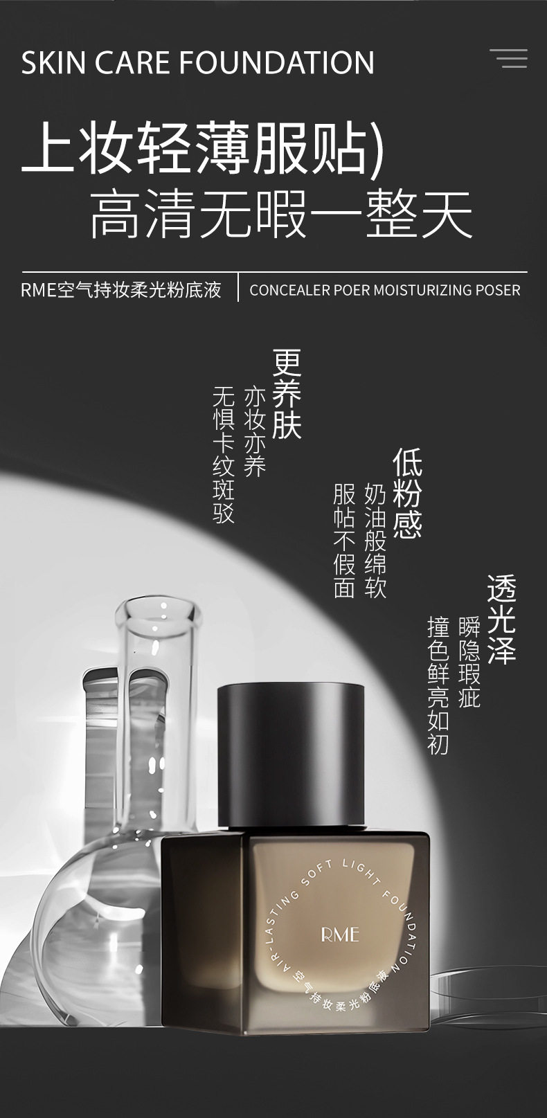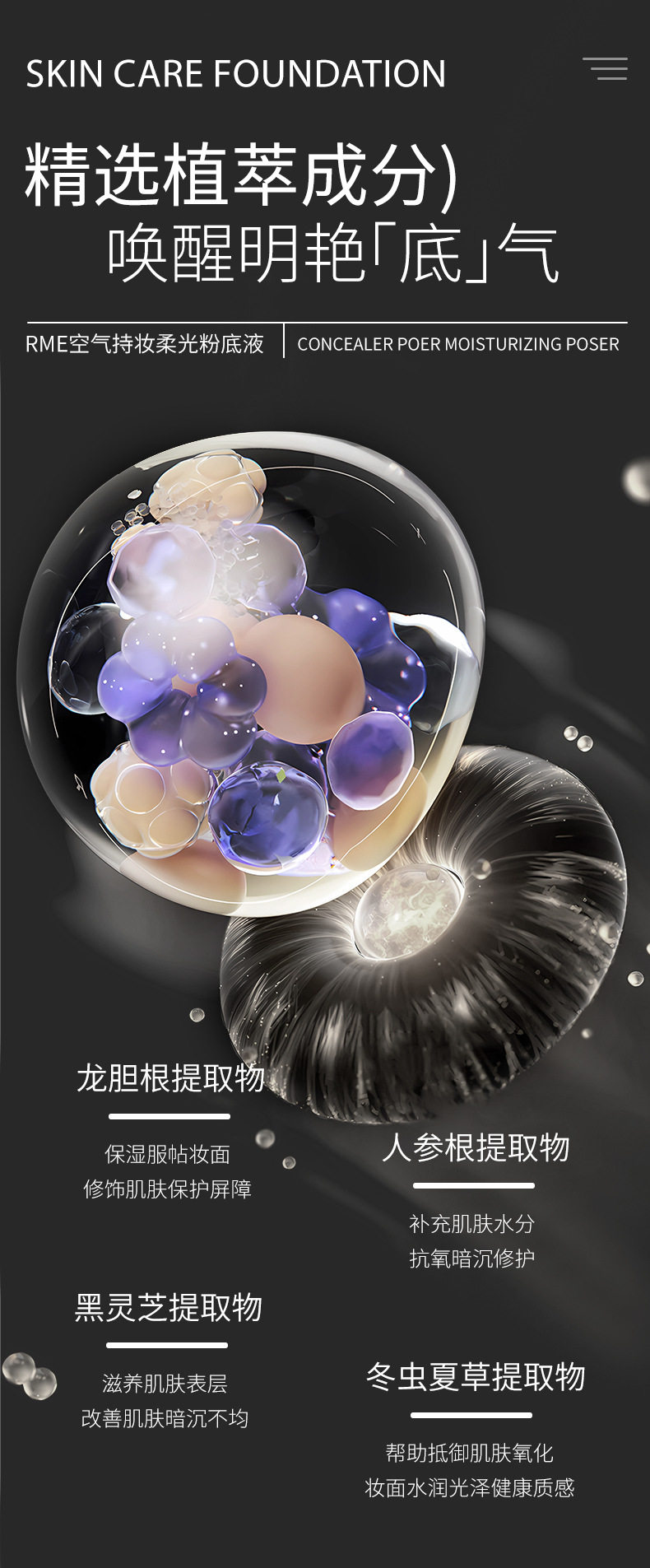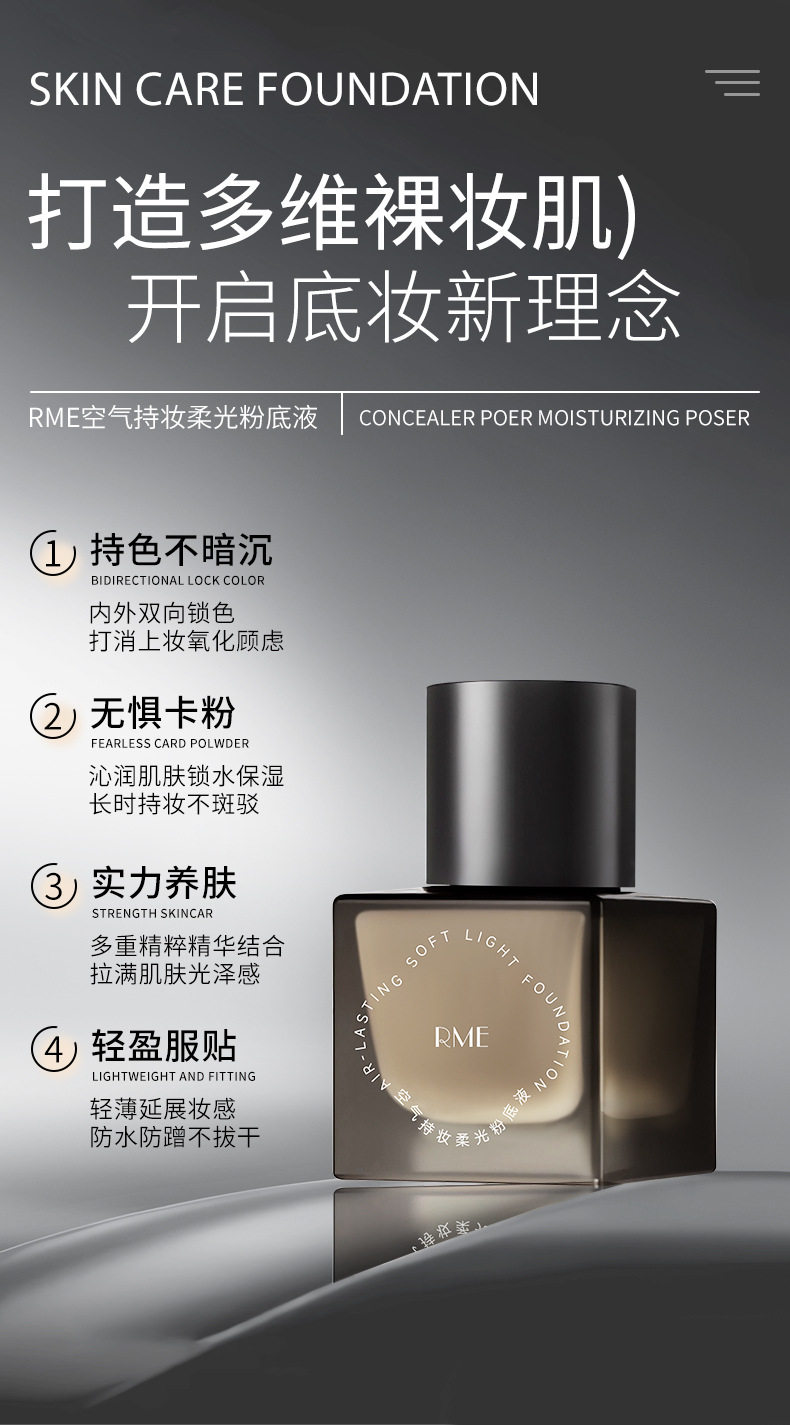 Rme Air Long-Lasting Soft Light Liquid Foundation Long-Lasting, Non-Removing, Light and Non-Sticky, Non-Sticky, Skin-Nourishing Air Liquid Foundation