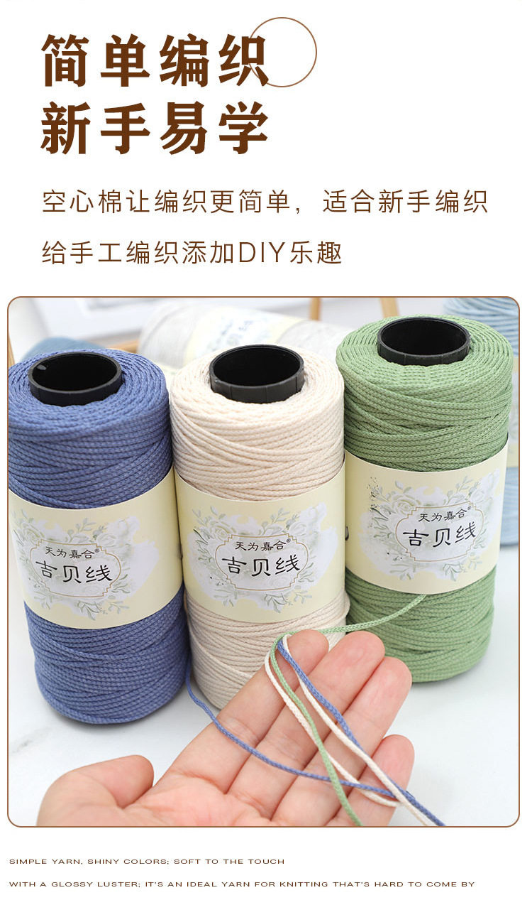 1.5mm Round Strand Hollow Cotton Wool Medium Thick Cotton and Linen Thread Handmade DIY Knitting Hook Bag Hook Hat Cushion Thread