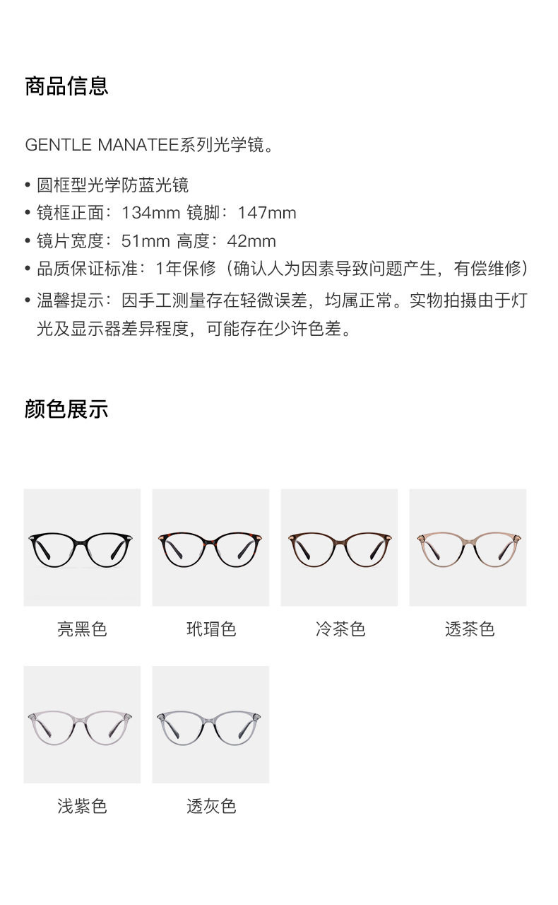 | Frame color | Glossy black,Tortoiseshell,Transparent gray,Transparent brown,Cold brown,Wine red |
