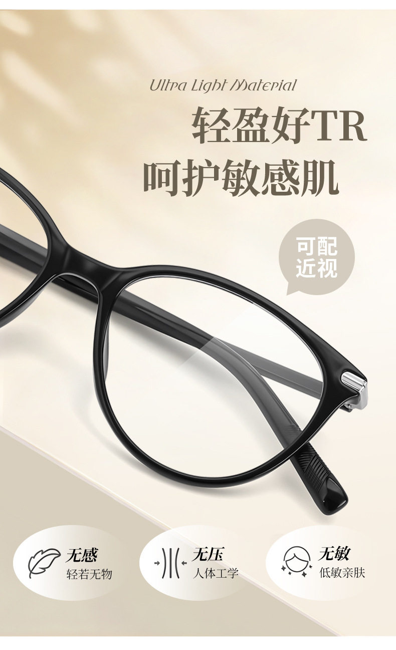 New Tr90 Large Frame Glasses Ultra-Light Makeup Artifact Optical Glasses Glasses Frame Can Be Equipped with Prescription Flat Glasses 50