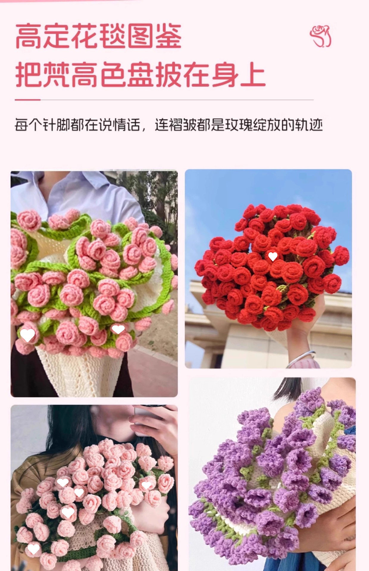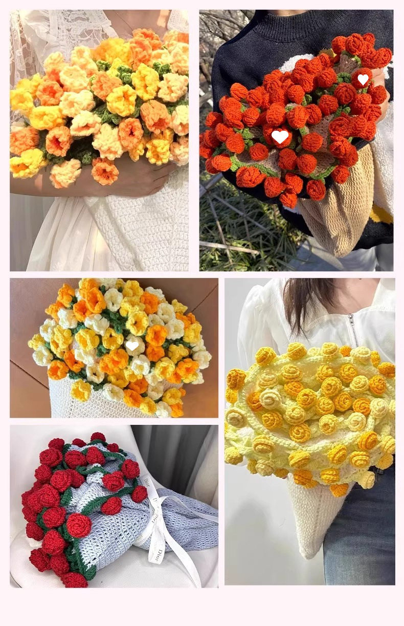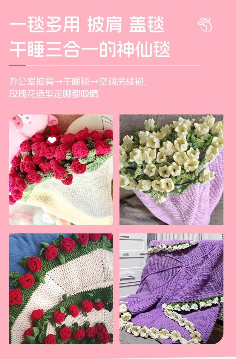 Hand Knitted DIY Rose Bouquet Blanket Material Package Wool Ball Crocheted Flower Blanket Flower Crochet Lily of the Valley Flower